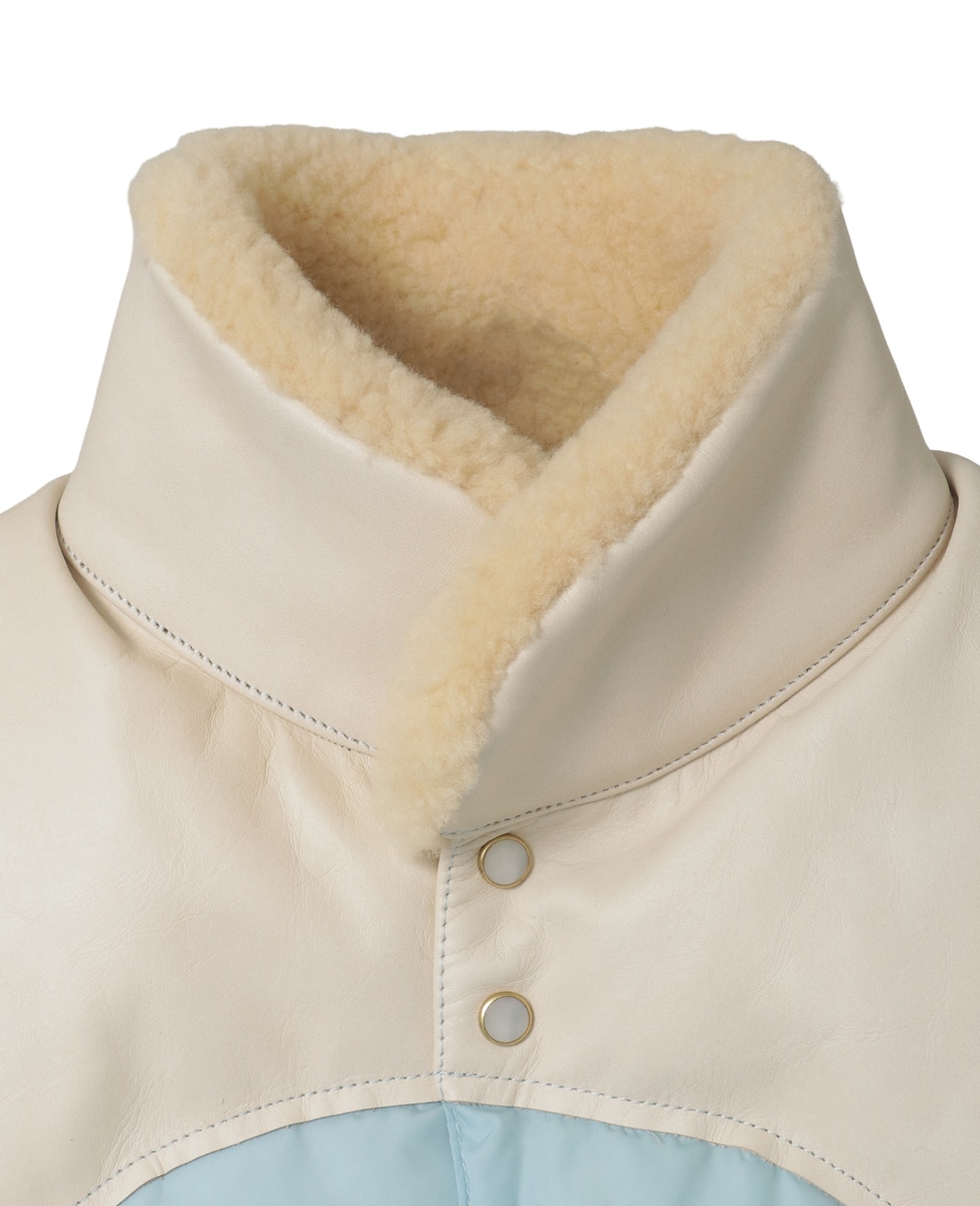 一枚裁ちのヨークレザーと襟の天然ムートンが特徴的な