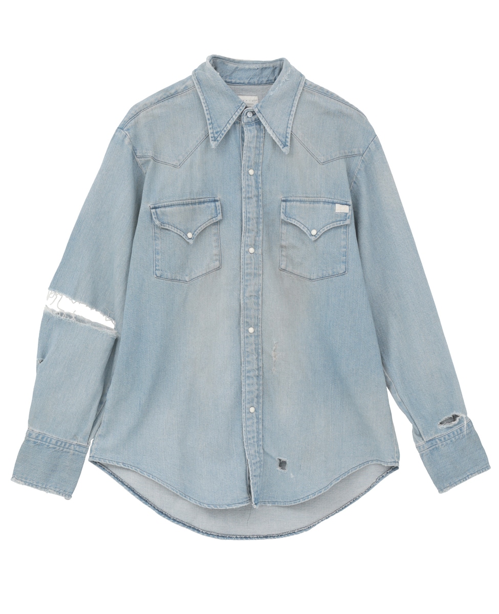 【KURO/クロ】ダメージ加工ウエスタンデニムシャツ