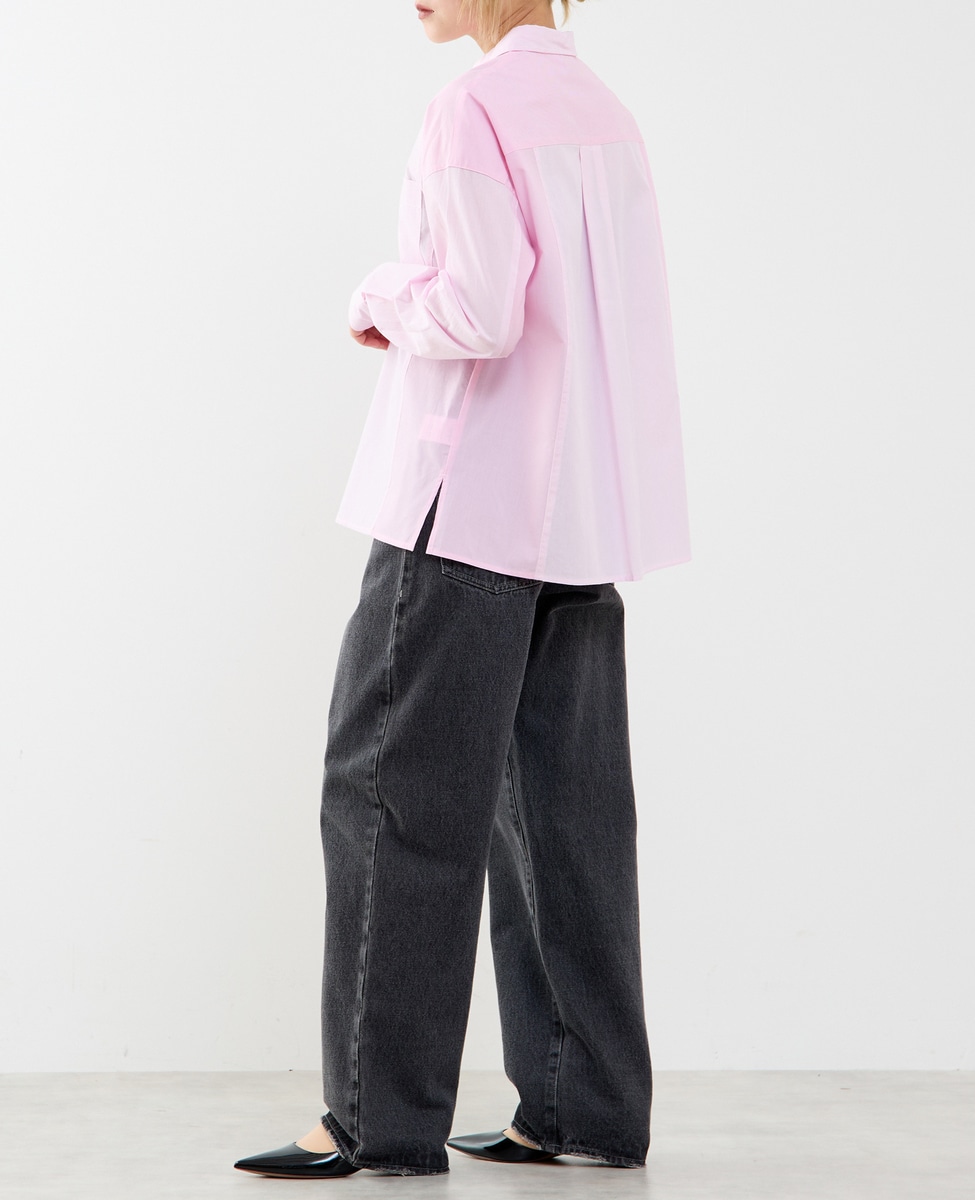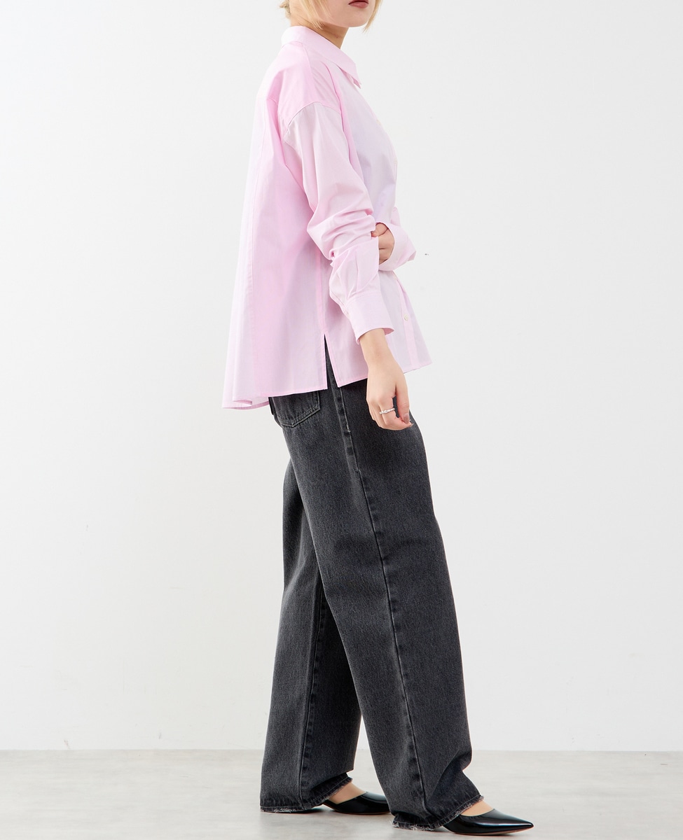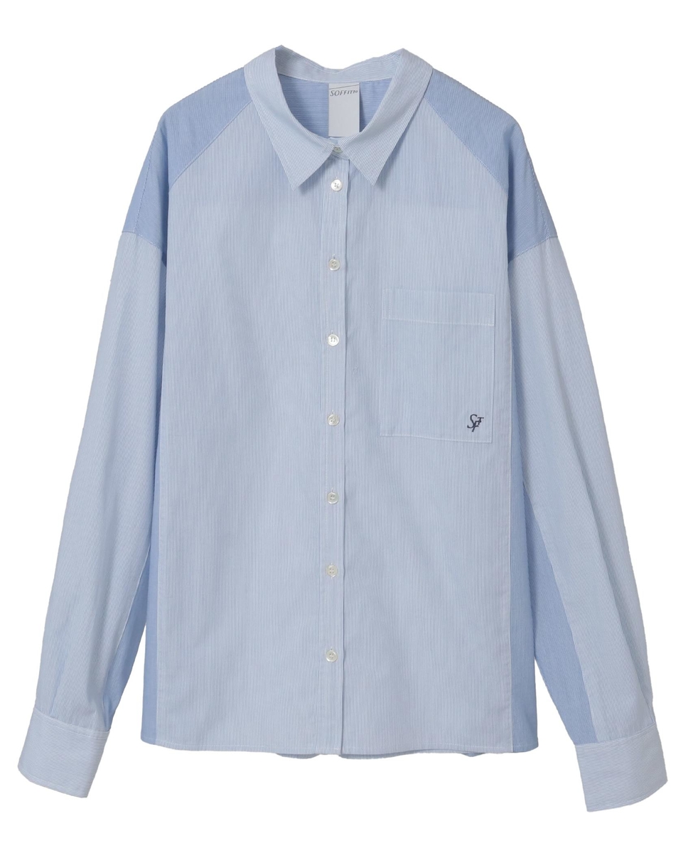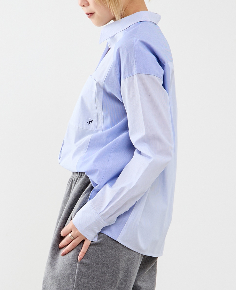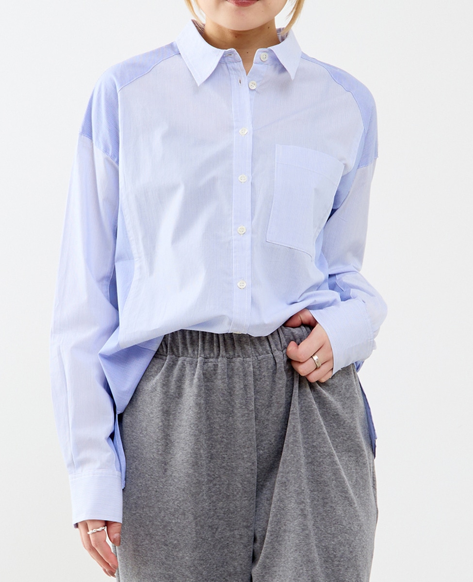 コットン先染めストライプMIXシャツ