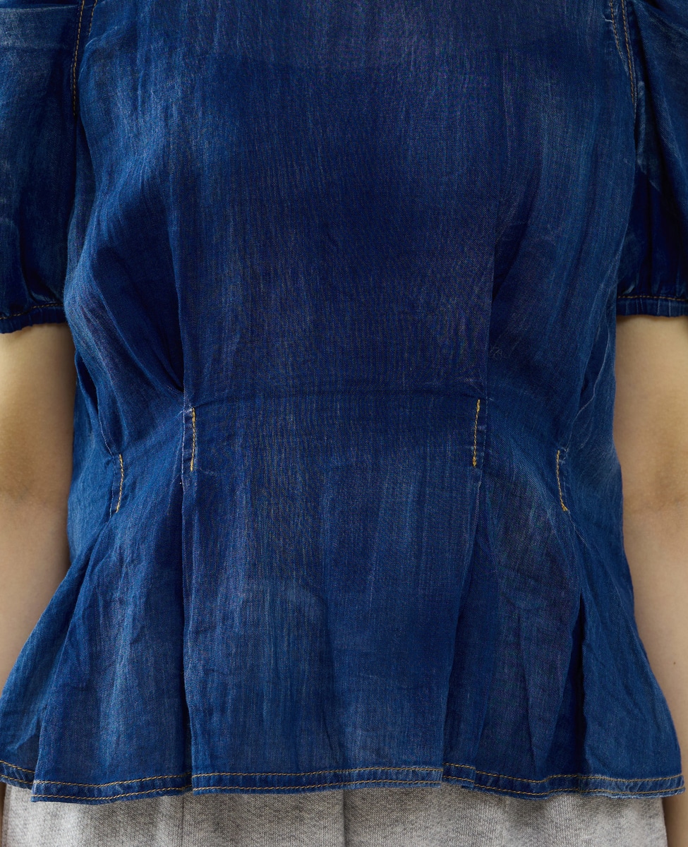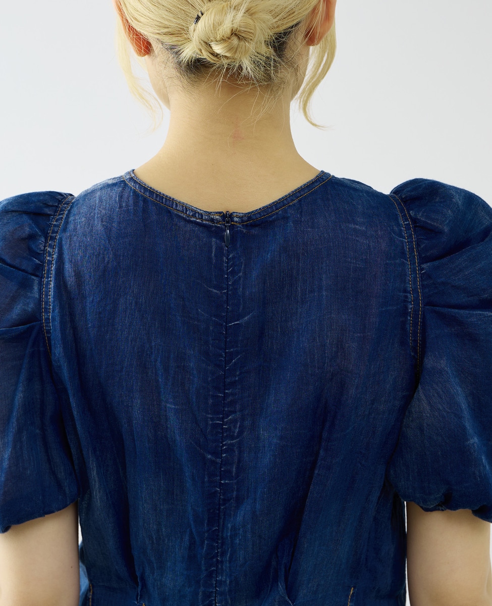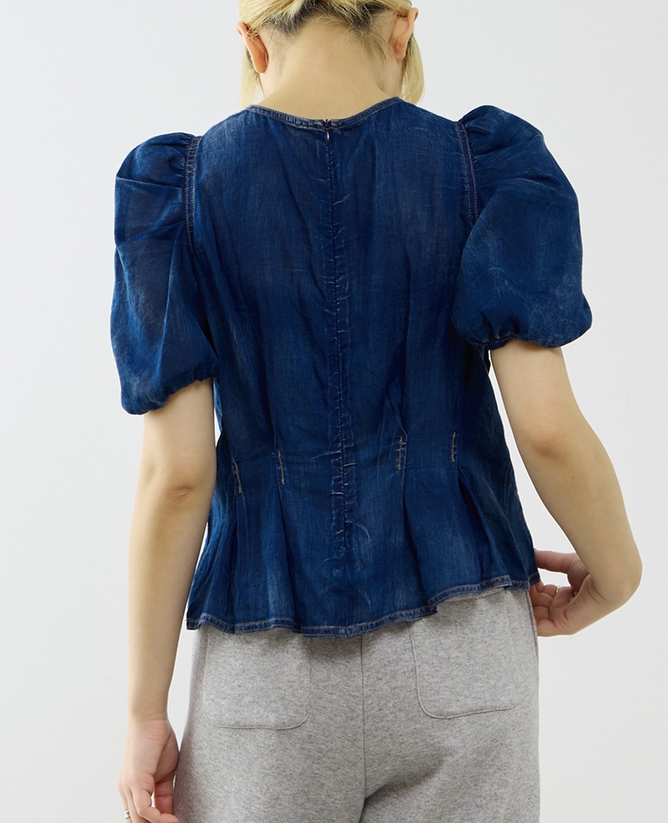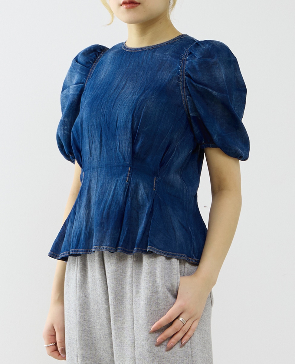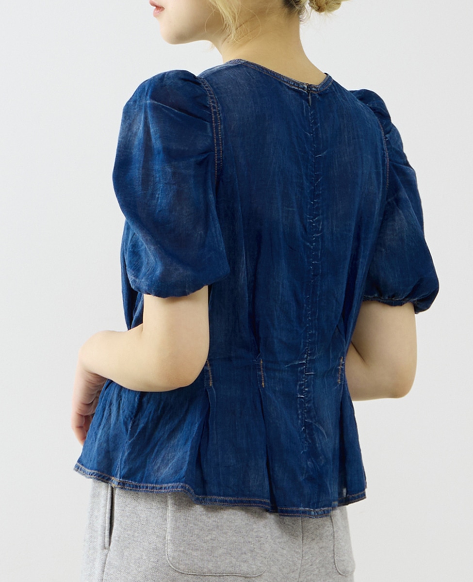 【A_/エース】シアーデニムパフブラウス