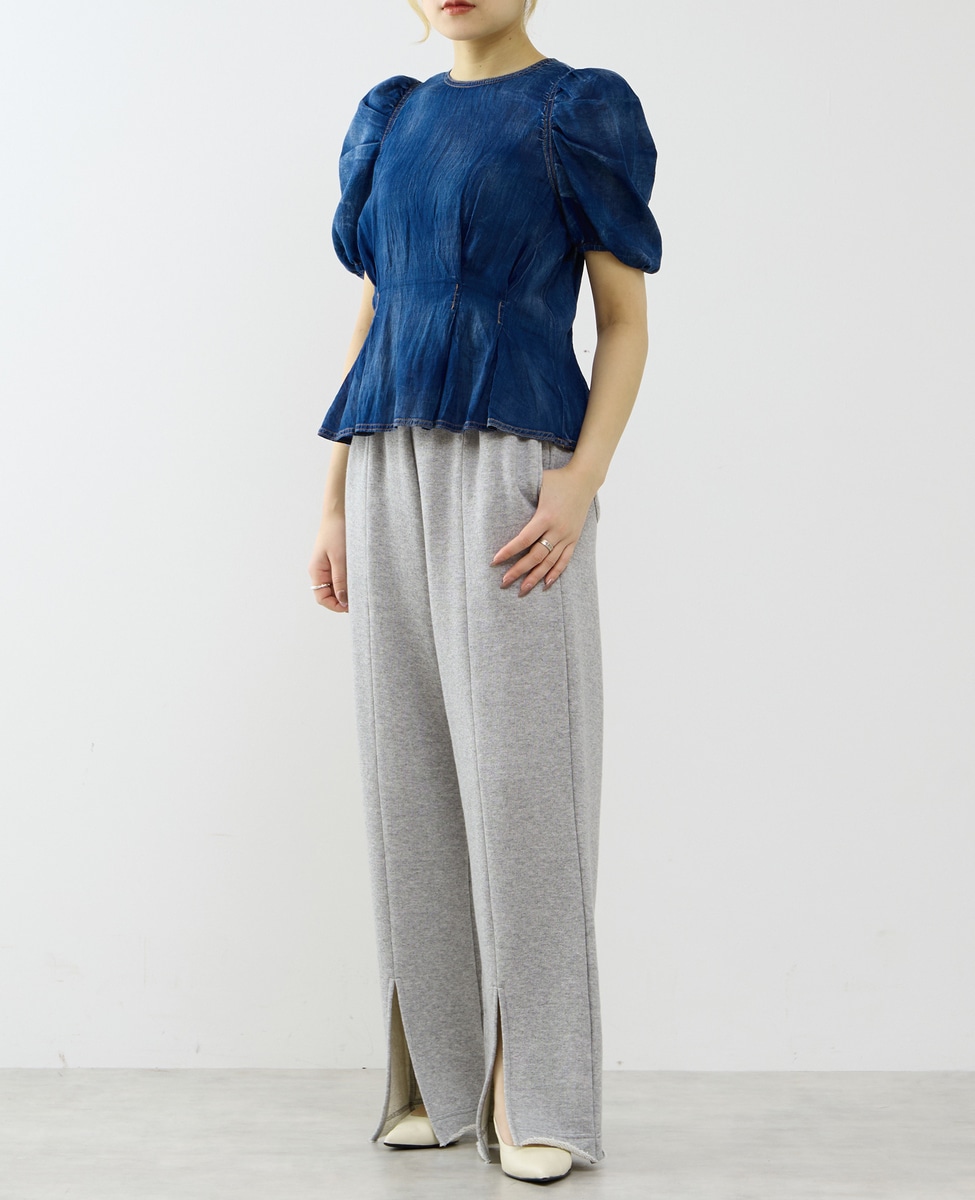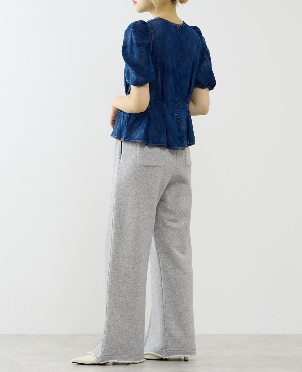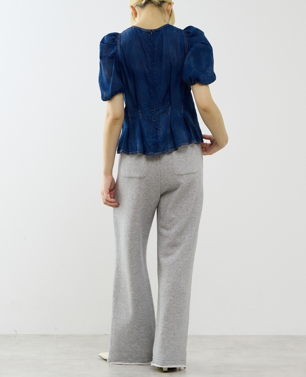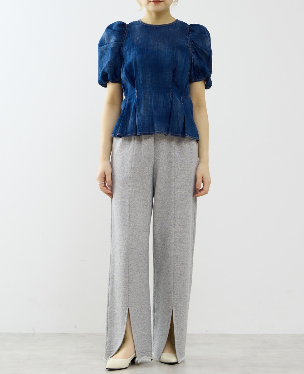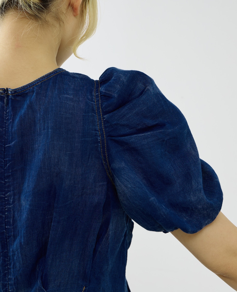 【A_/エース】シアーデニムパフブラウス