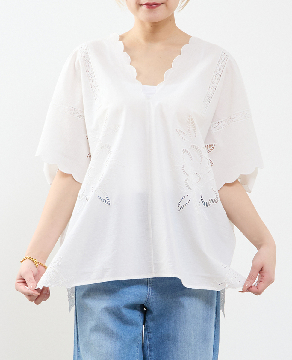 • 【A_ /エース】インドコットンットワーク刺繍カフタンチュニック 詳細画像 オフホワイト 10