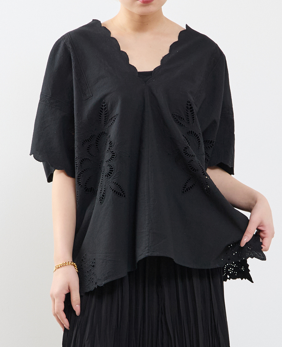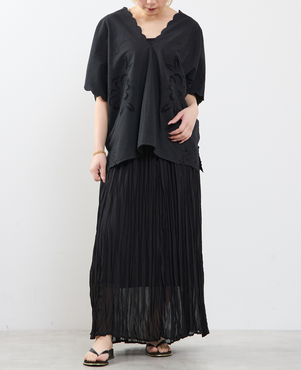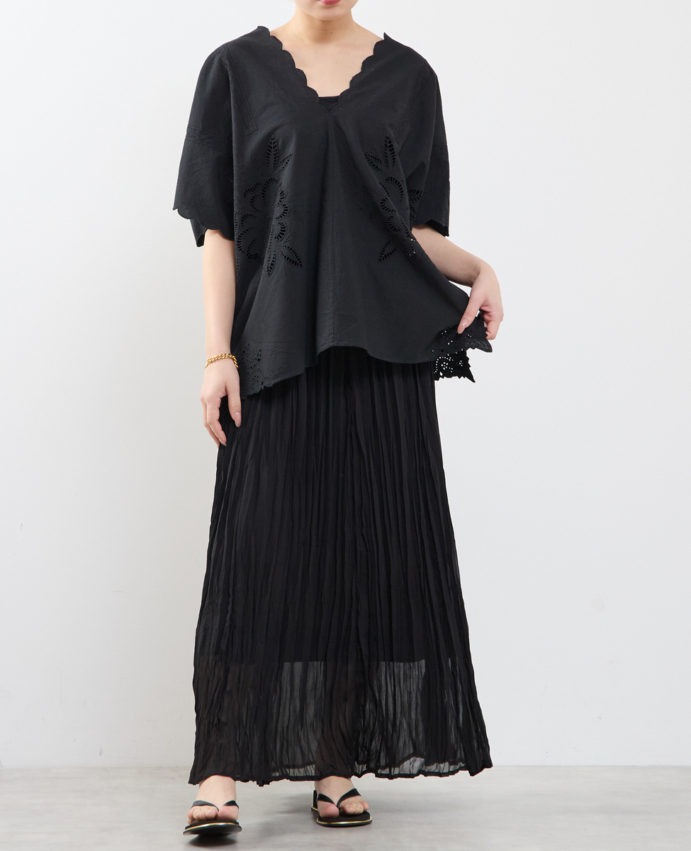 • 【A_ /エース】インドコットンットワーク刺繍カフタンチュニック 詳細画像 ブラック 1