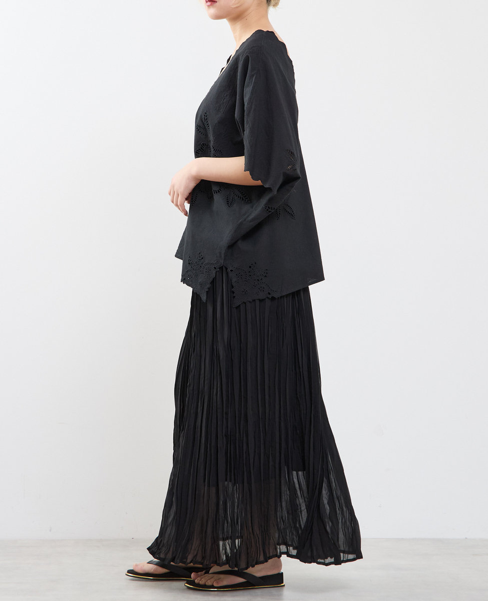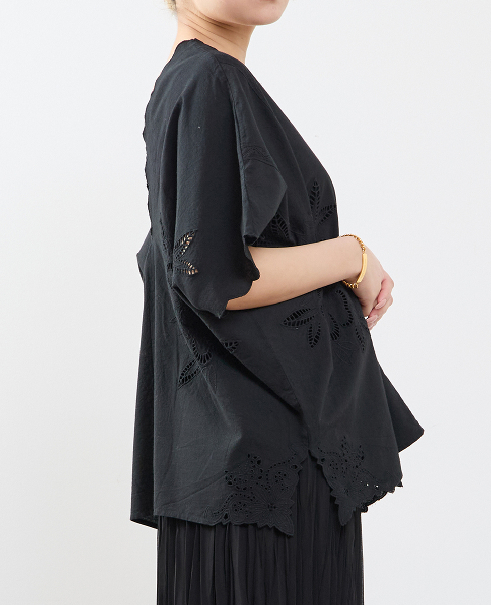 • 【A_ /エース】インドコットンットワーク刺繍カフタンチュニック 詳細画像 ブラック 11