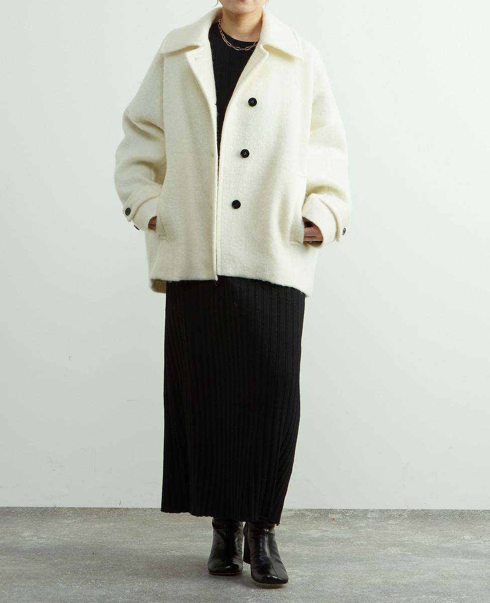 モヘア混のエアリー素材を使用し、見た目以上に軽くて快適。