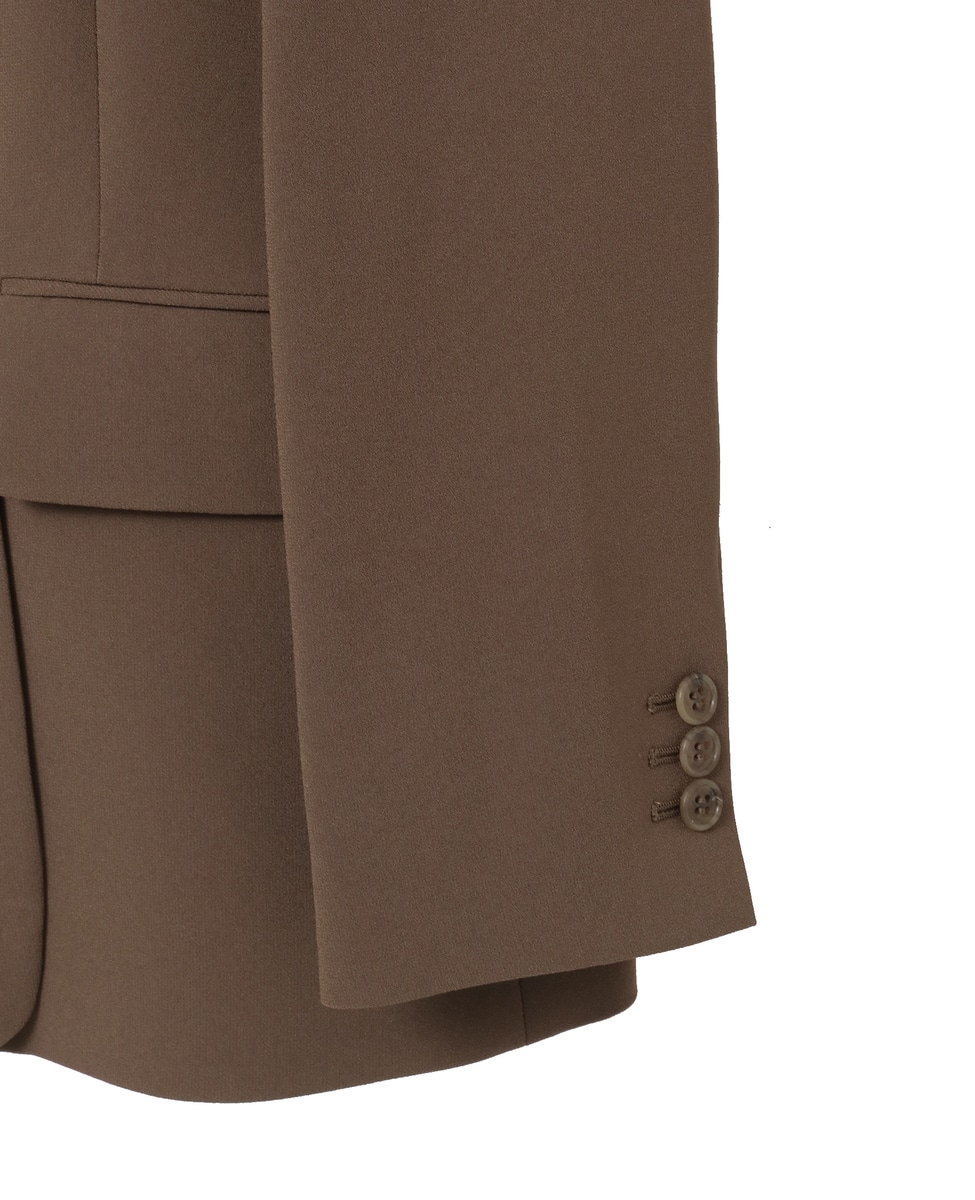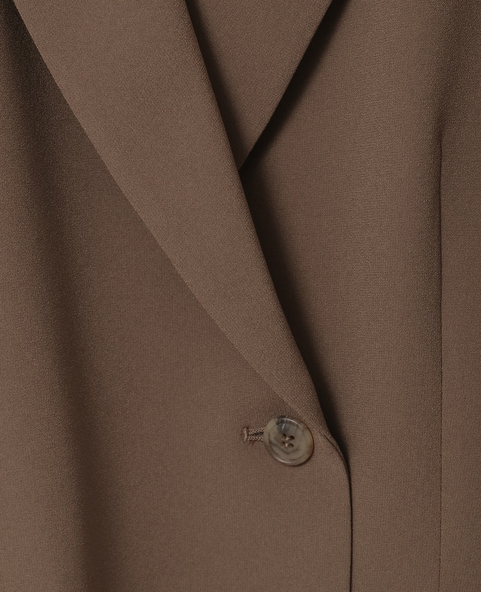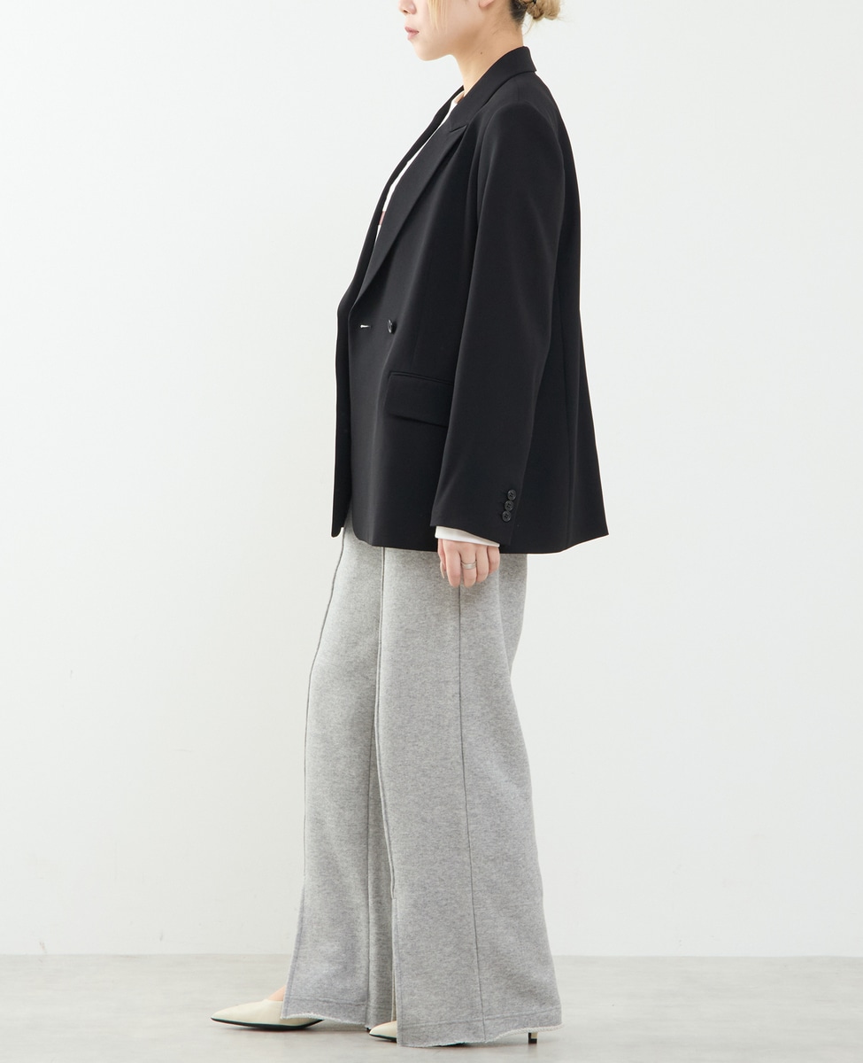 落ち感の美しい素材で仕立てたピークドラペルジャケット。