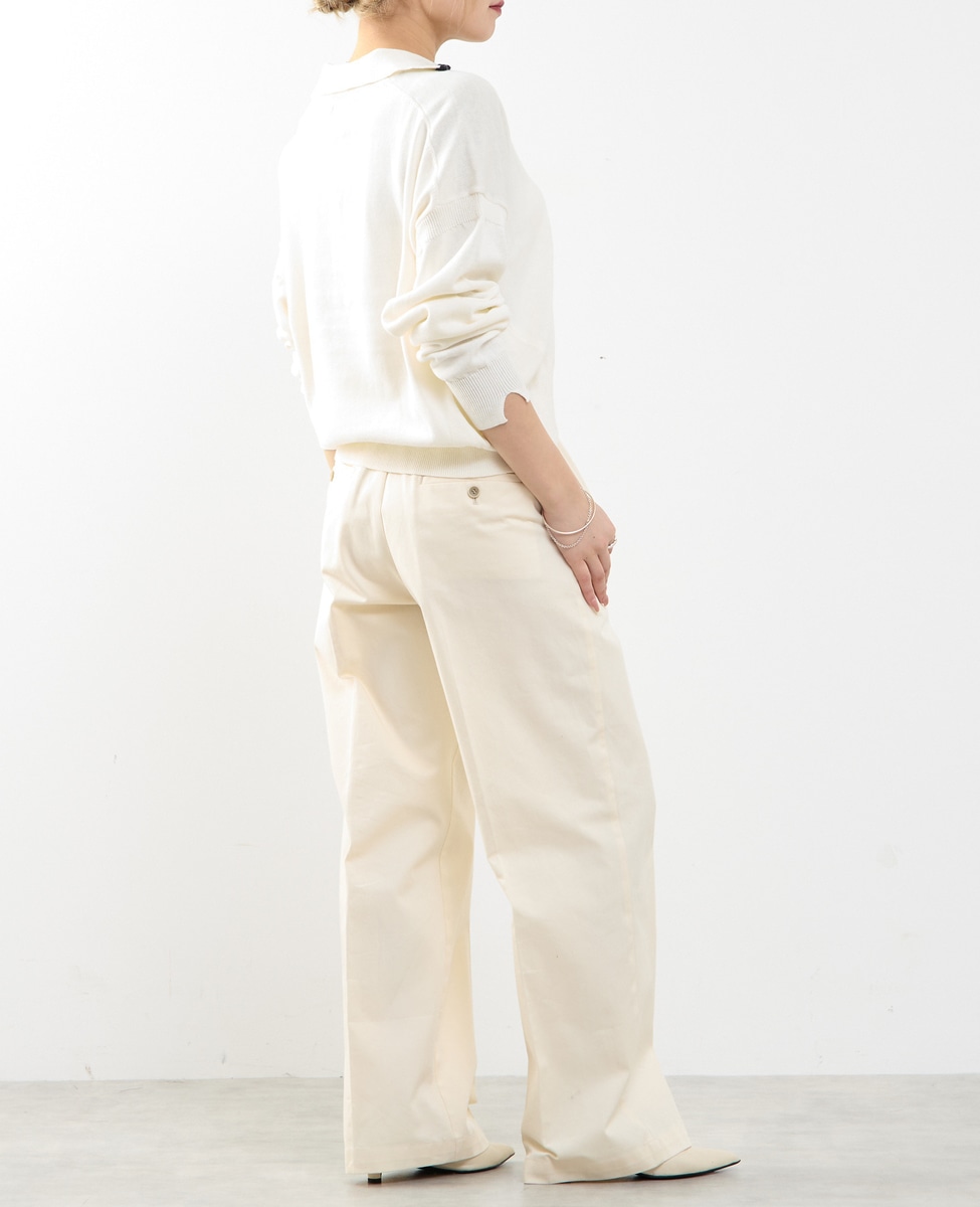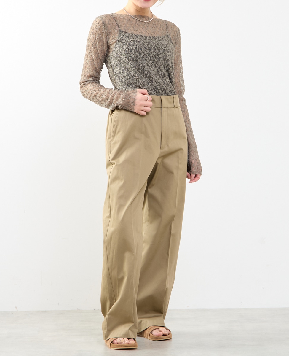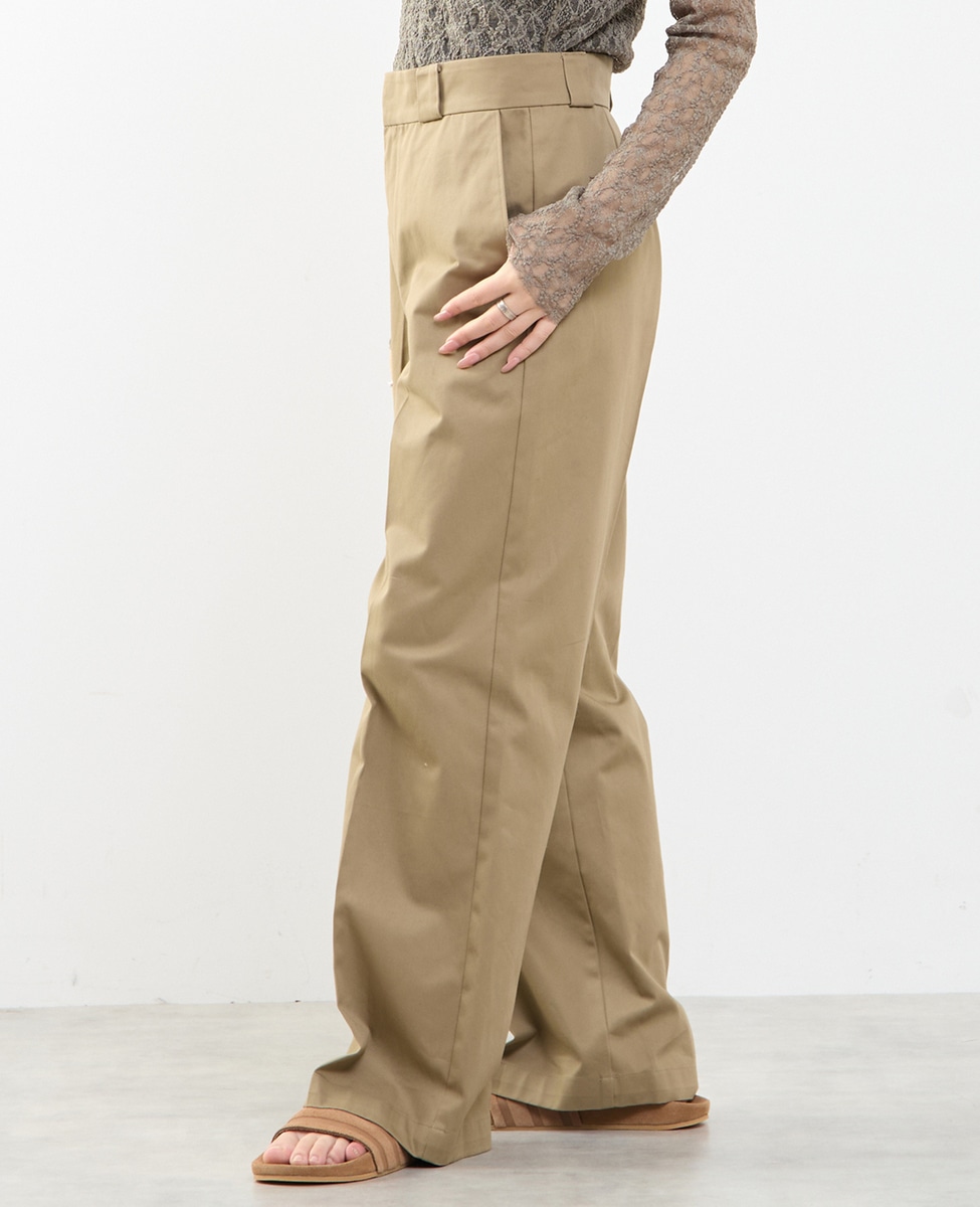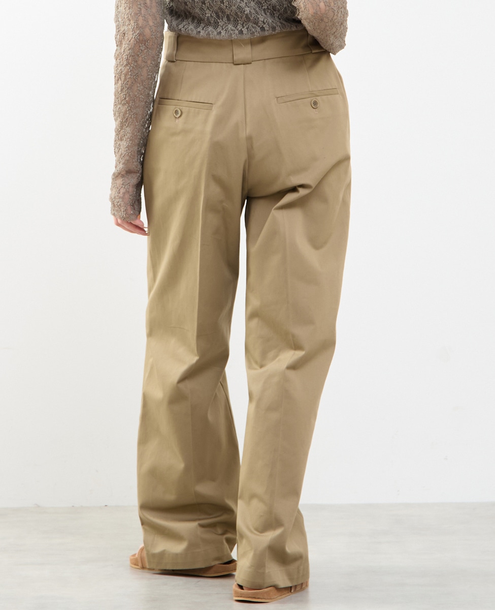 ノータックのストレートシルエットで、脚のラインをきれいに見せながらも、程よく力の抜けた印象に仕上げたチノパンツです。
