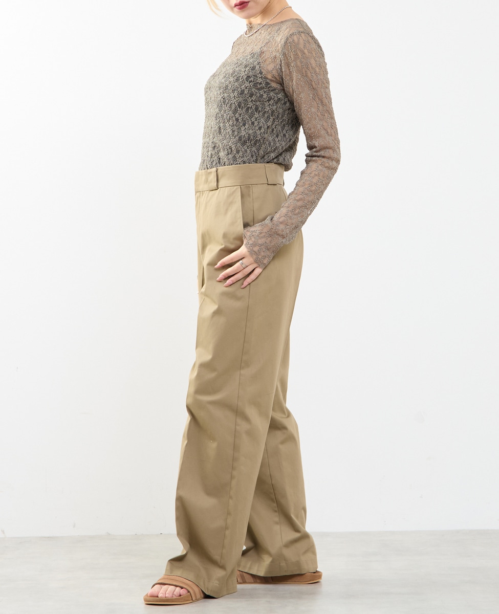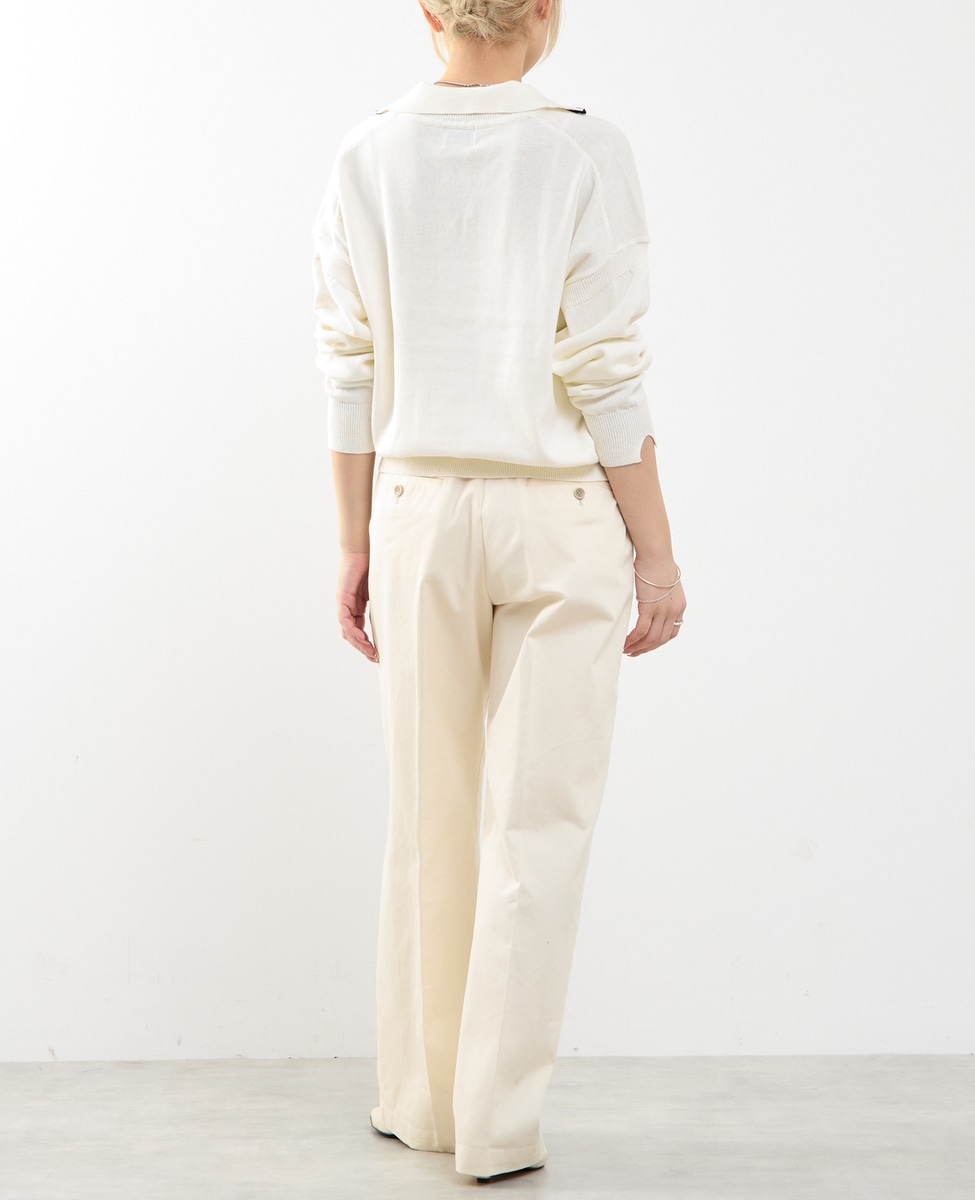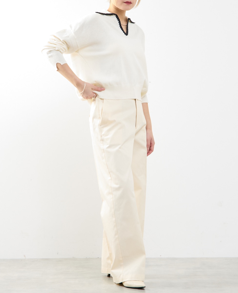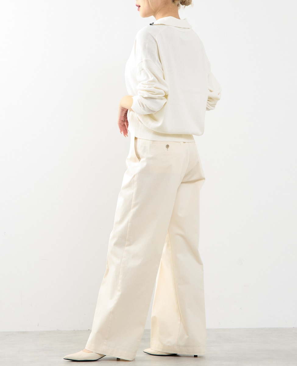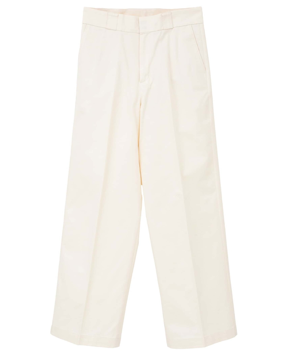 ノータックのストレートシルエットで、脚のラインをきれいに見せながらも、程よく力の抜けた印象に仕上げたチノパンツです。