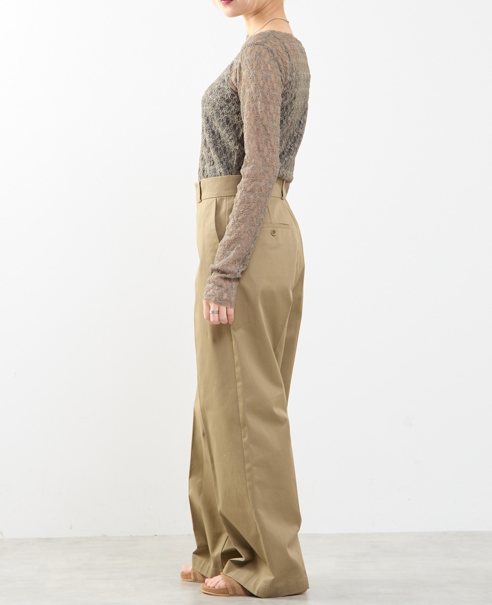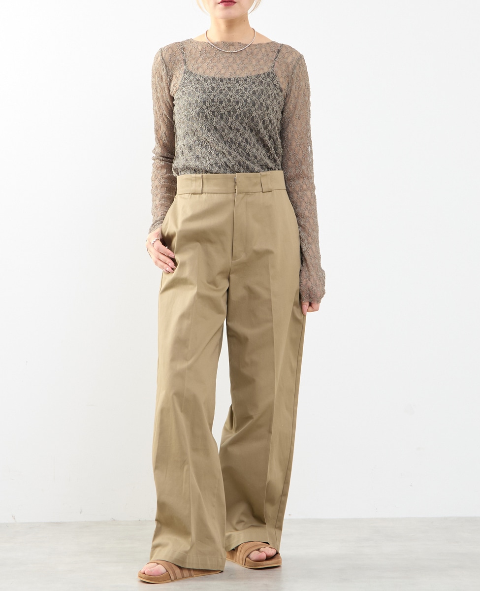 ベルトを合わせた着こなしがおすすめで、太めのベルトループがスタイリングに程よい存在感をプラスします。