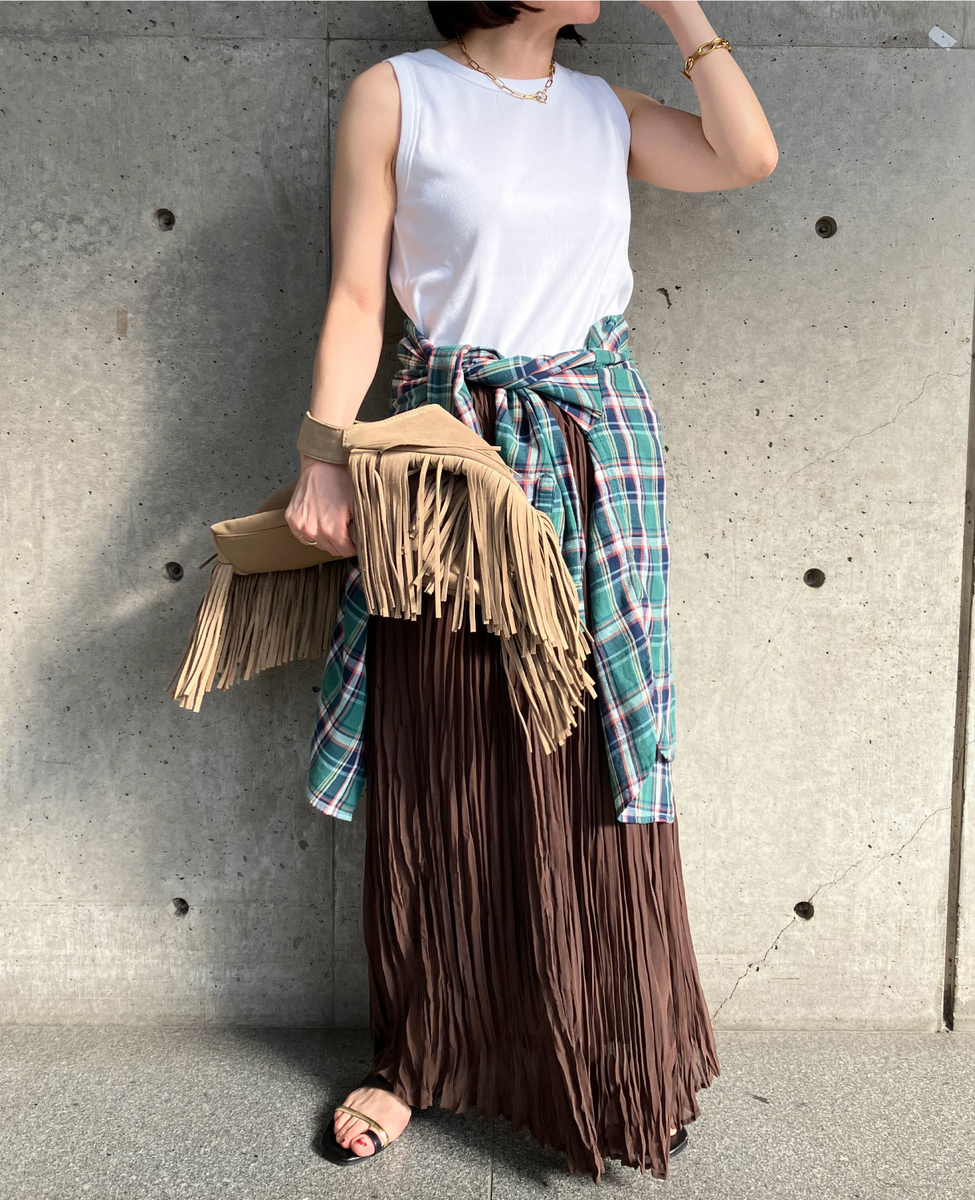 【A_/エース】ウエストゴムワッシャープリーツスカート