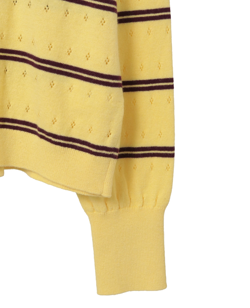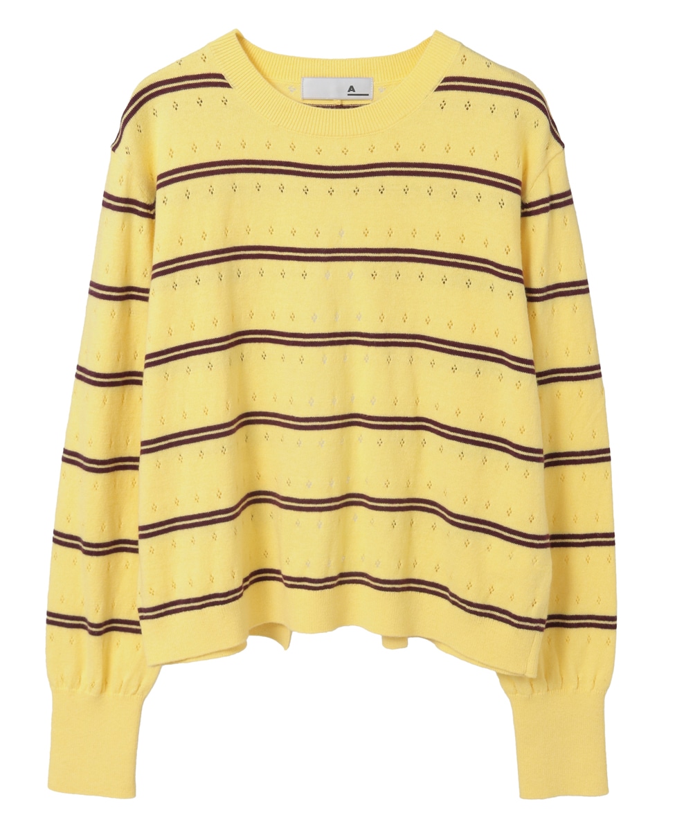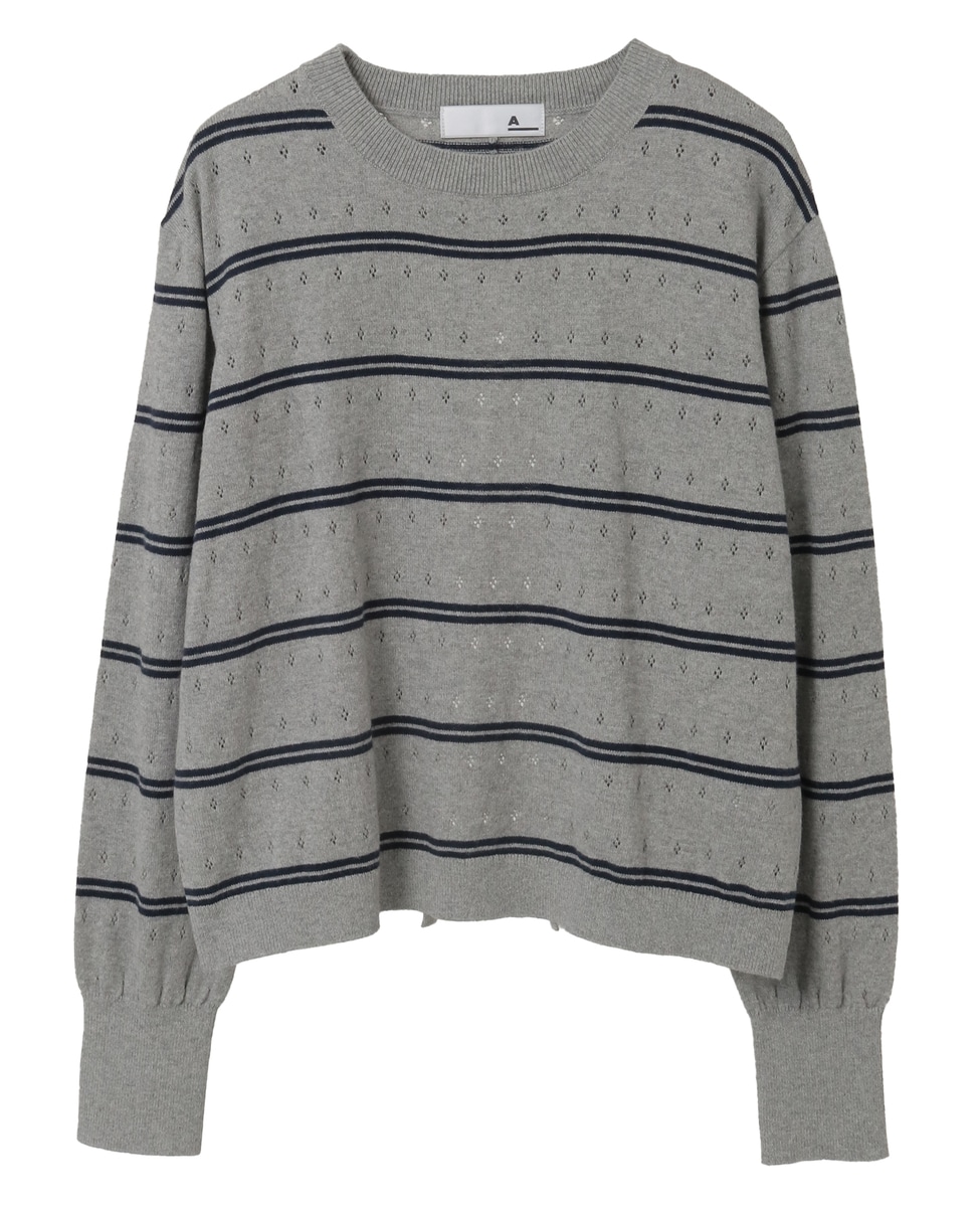 さりげなく透かし編みで表現したボーダー柄が、定番デザインに軽やかな抜け感をプラス。