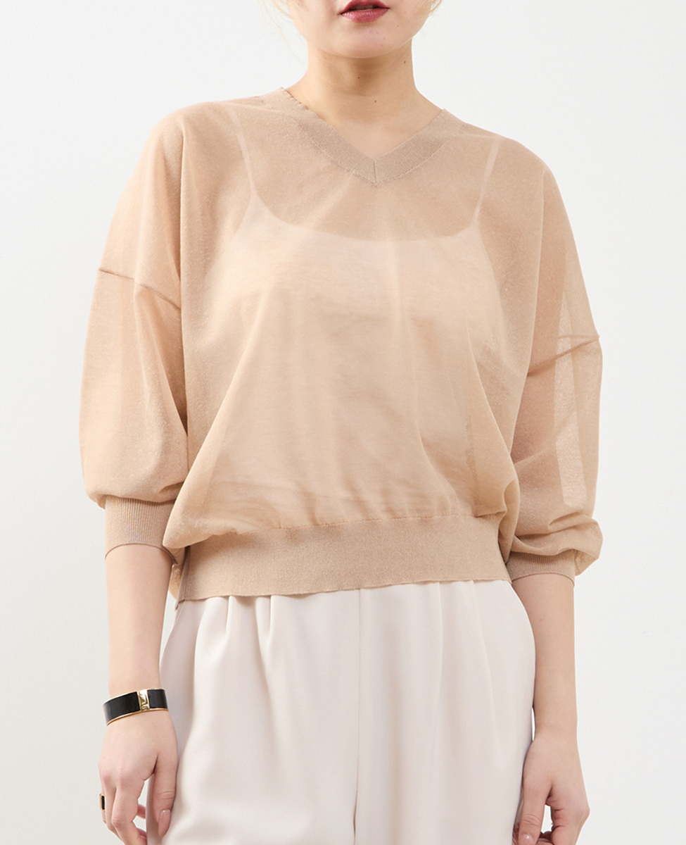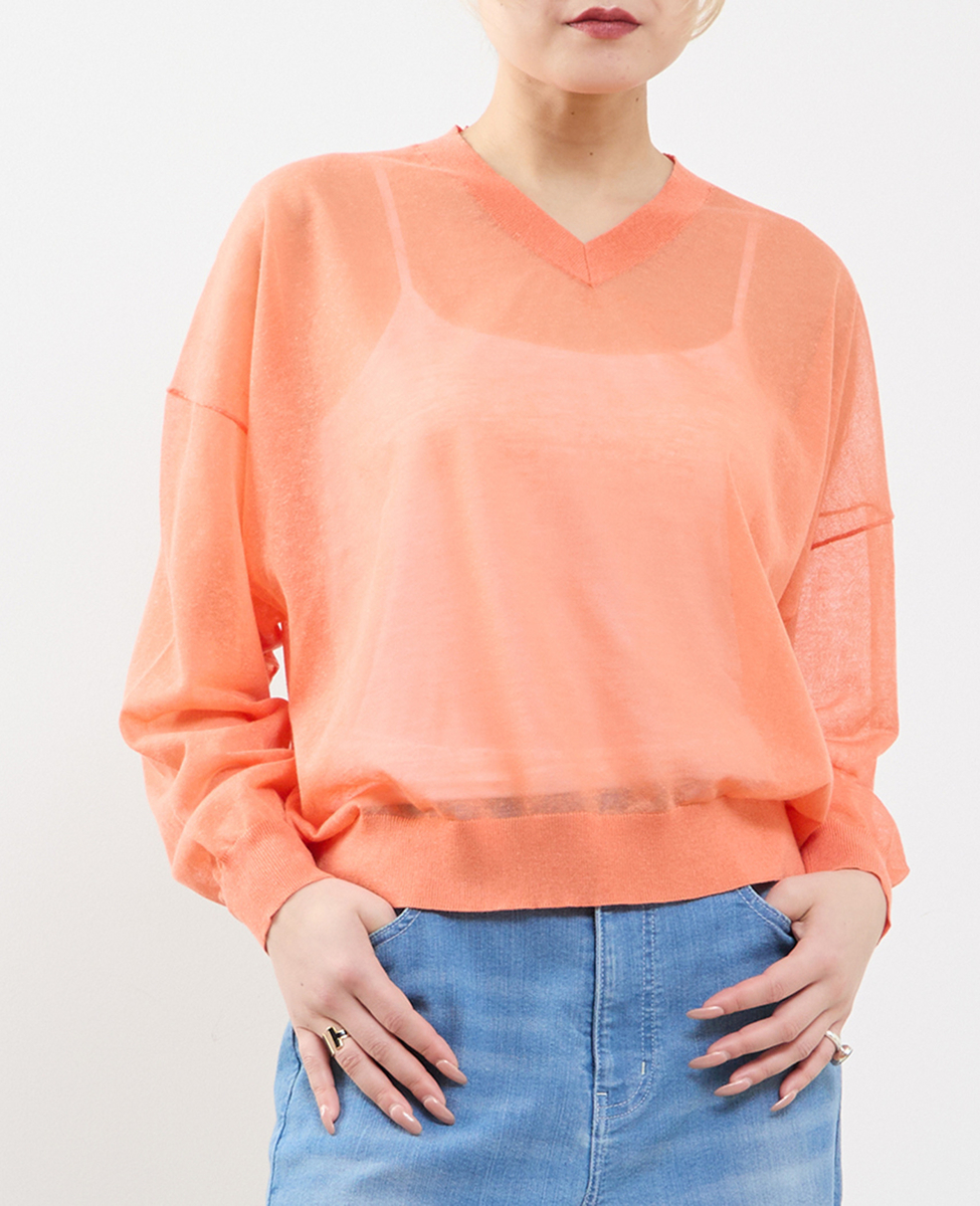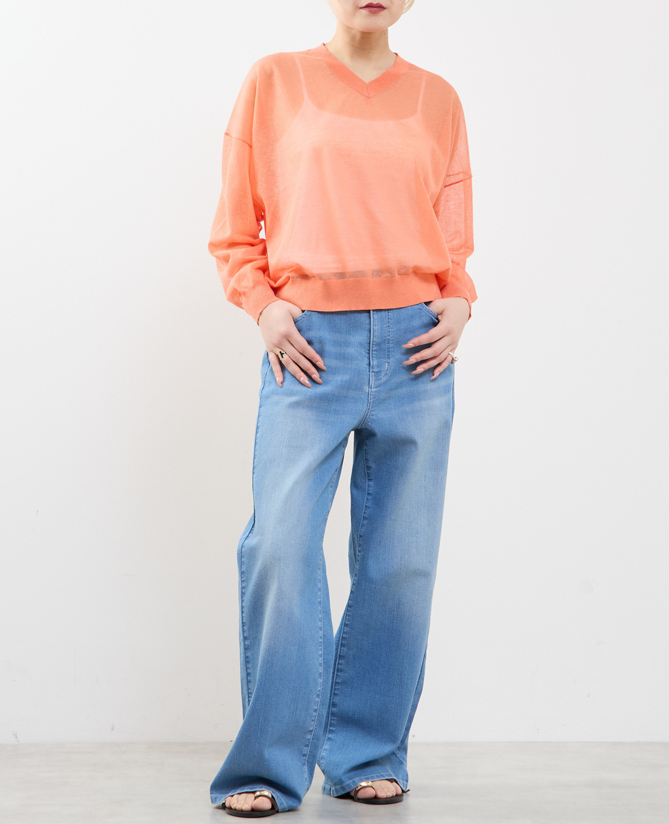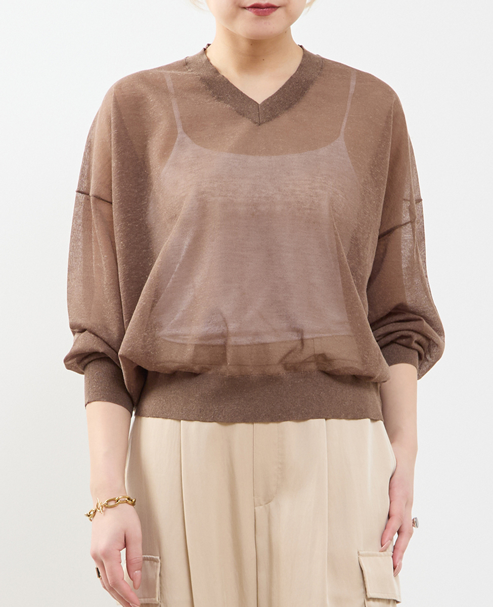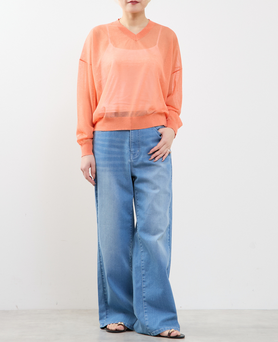 テンセルリネンVネックシアーニット