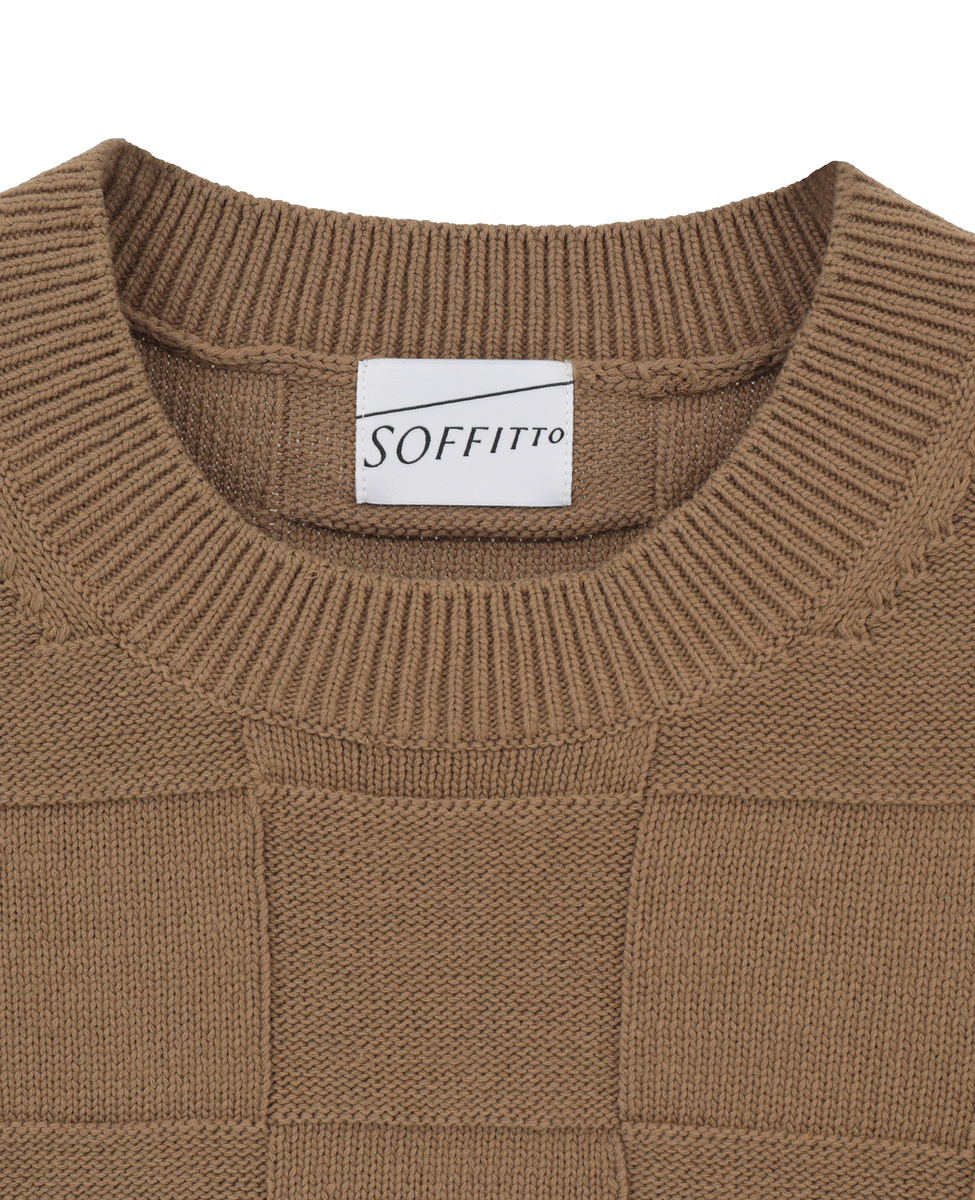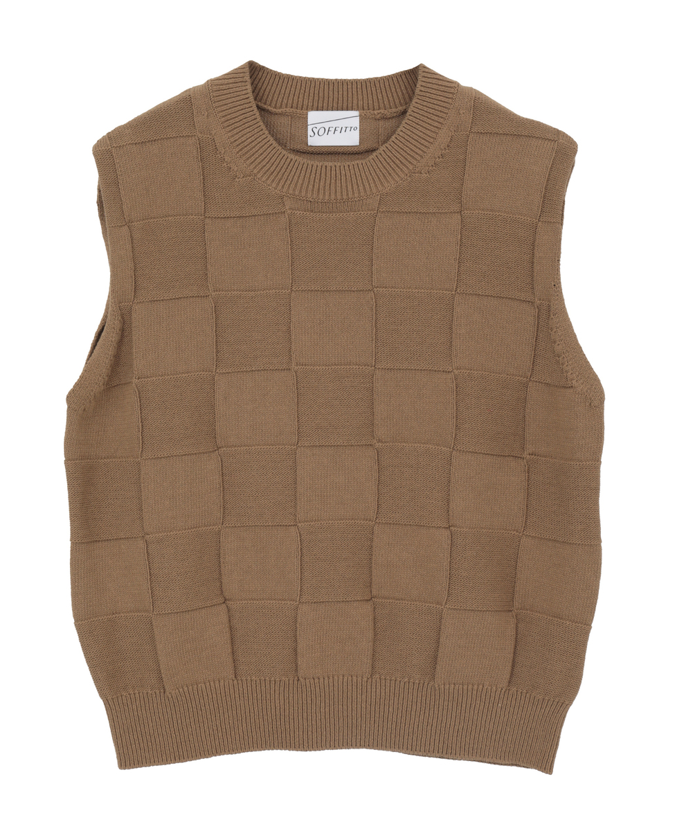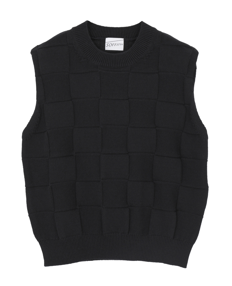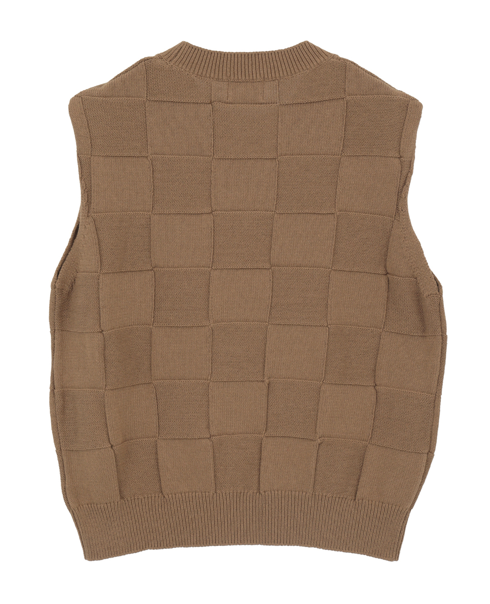 ブロックチェック リンクス編みノースリーブニット