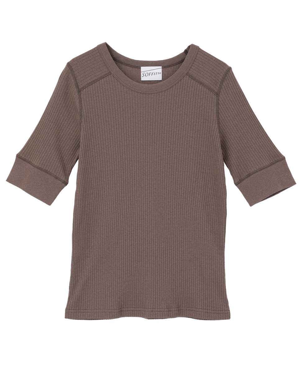 ランダムリブ5分袖Tシャツ