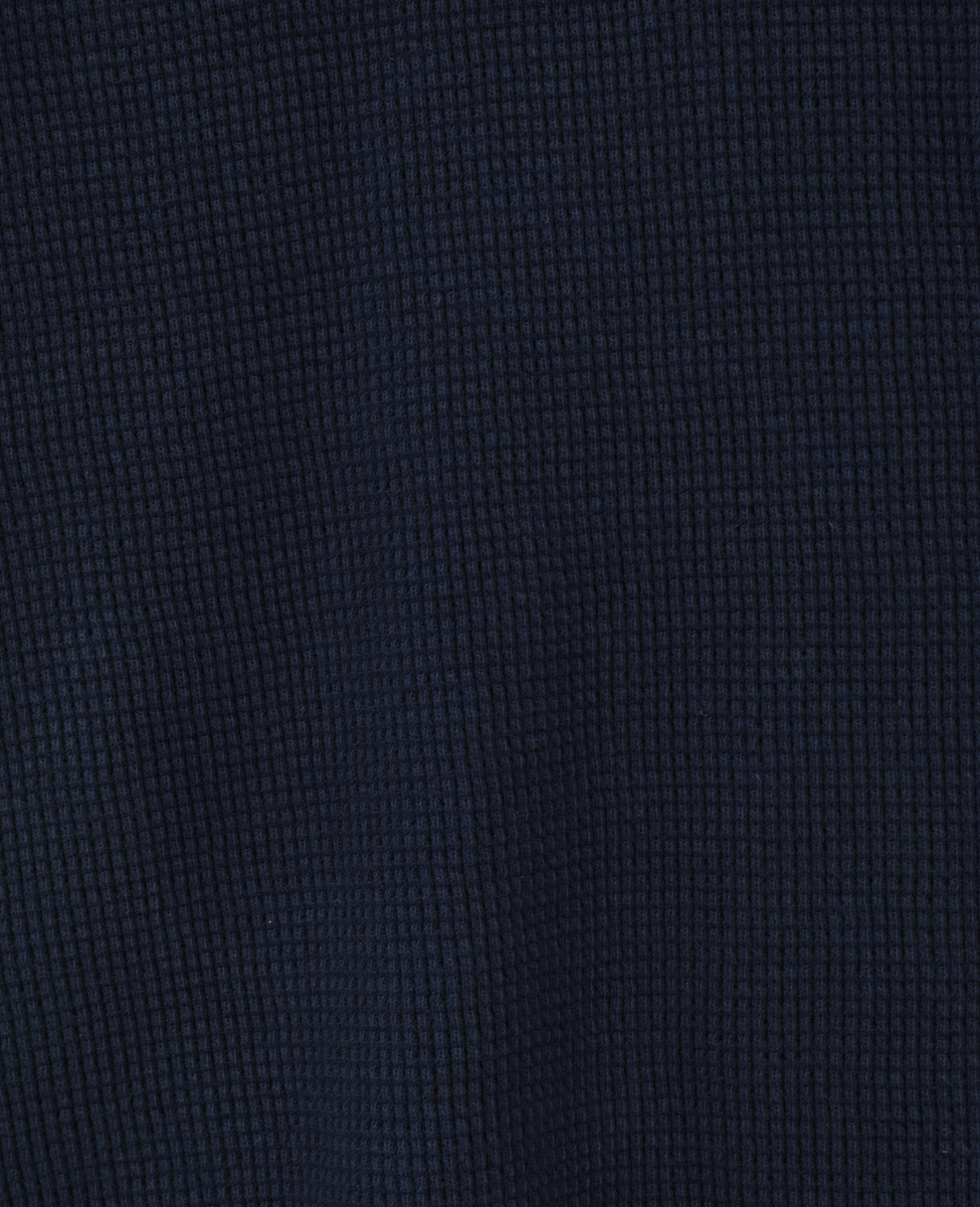 立体感のあるワッフル組織特有のテクスチャーが、シンプルなデザインに奥行きをプラス。無地でありながらも、さりげない存在感を放ちます。