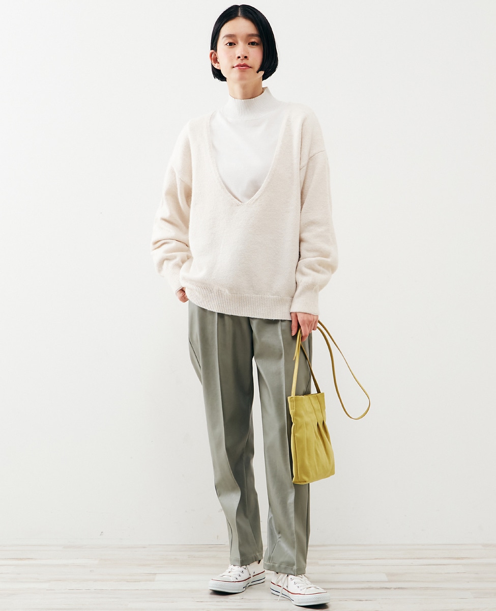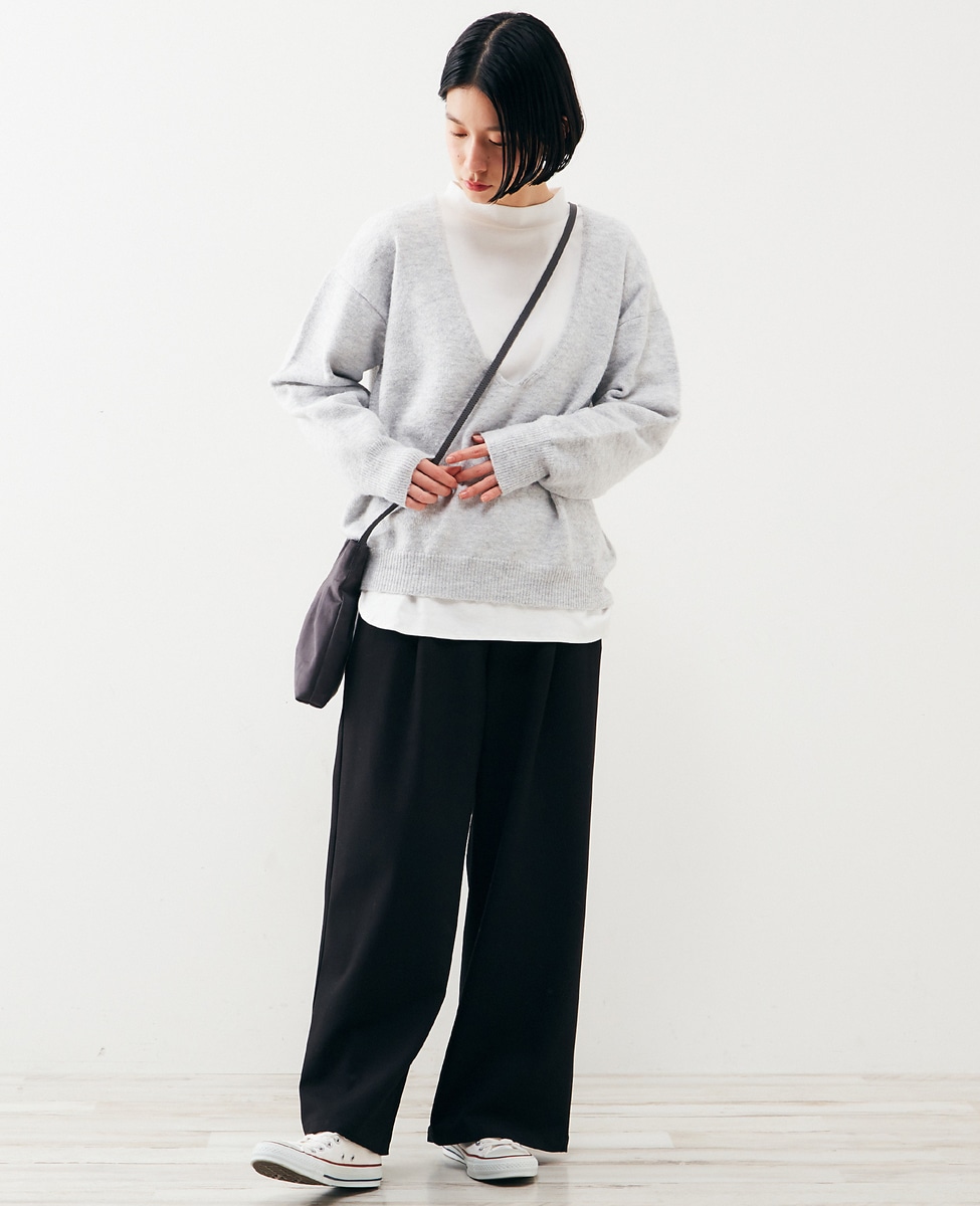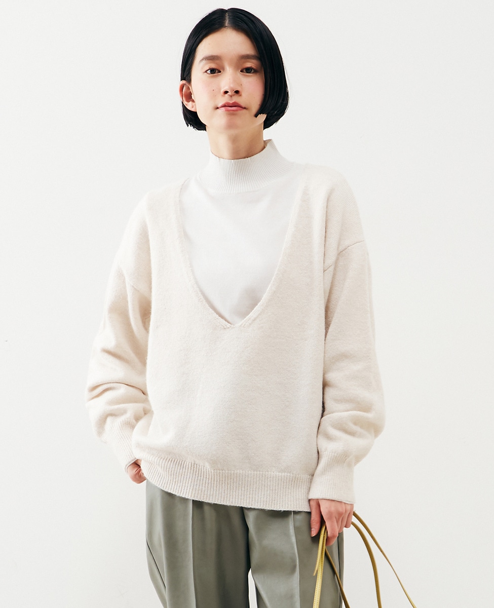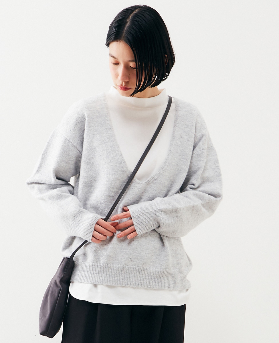 【ふわっと暖かい風合いの深めVネック☆レイヤードを楽しめるプレーンなシンプルニット】