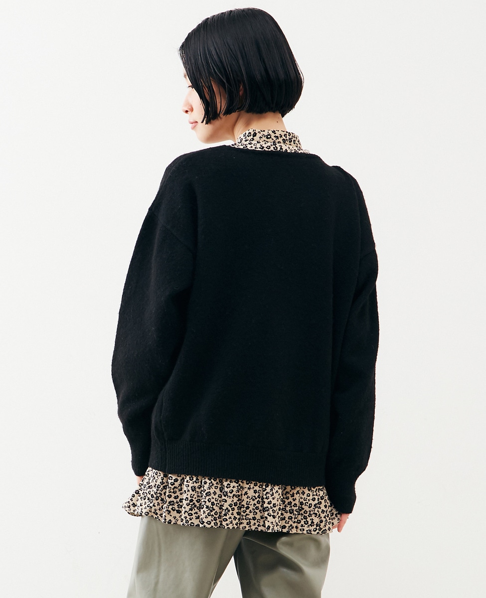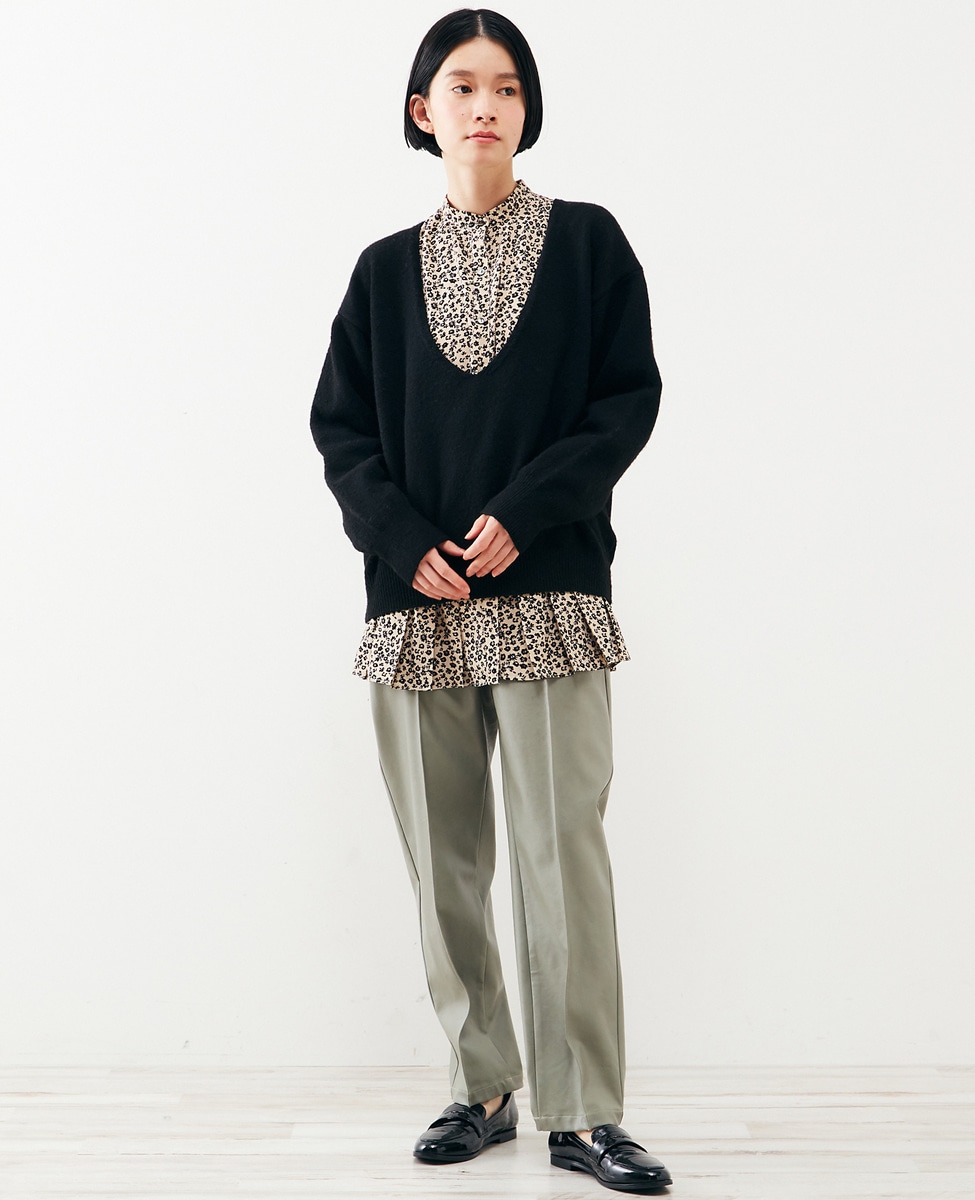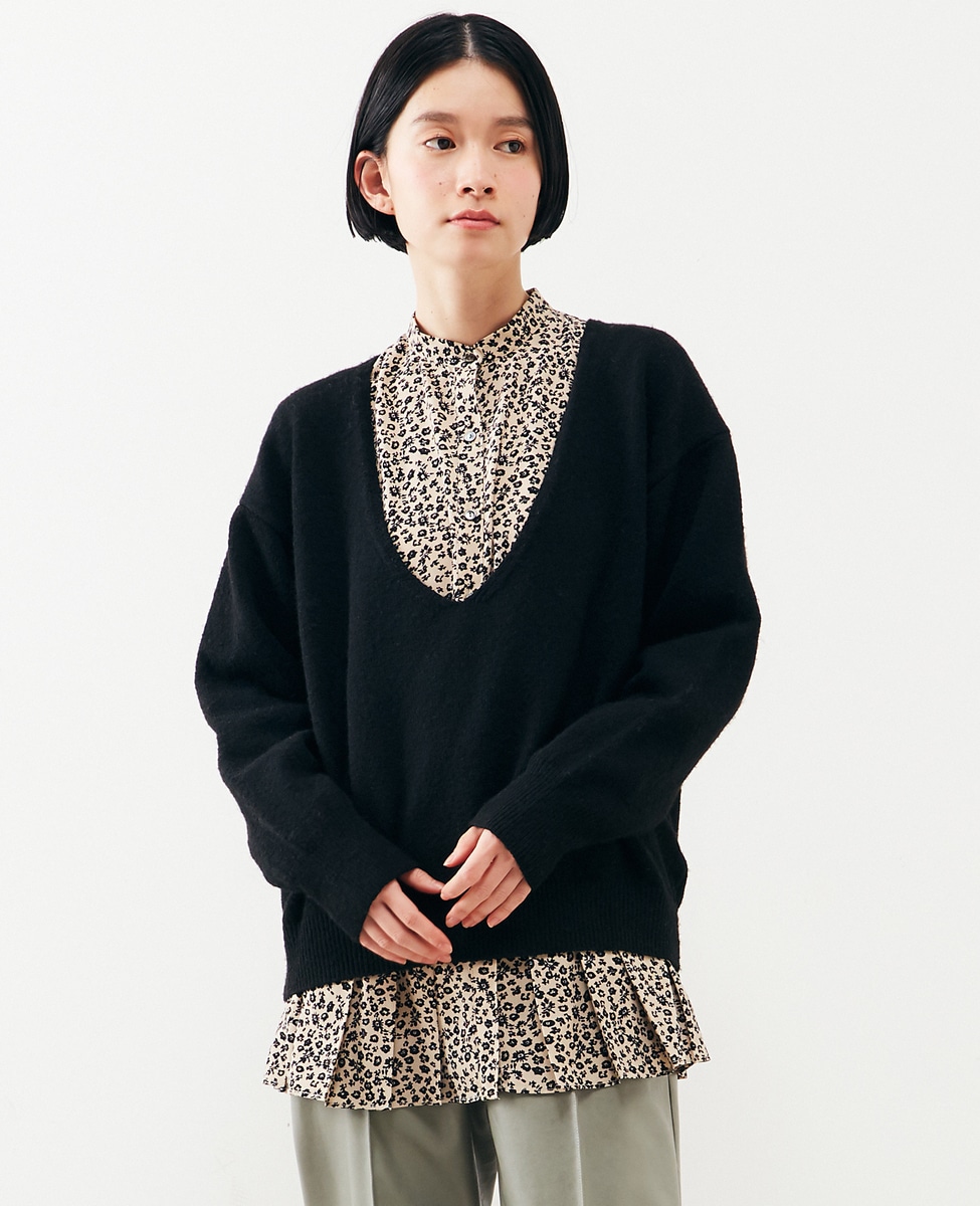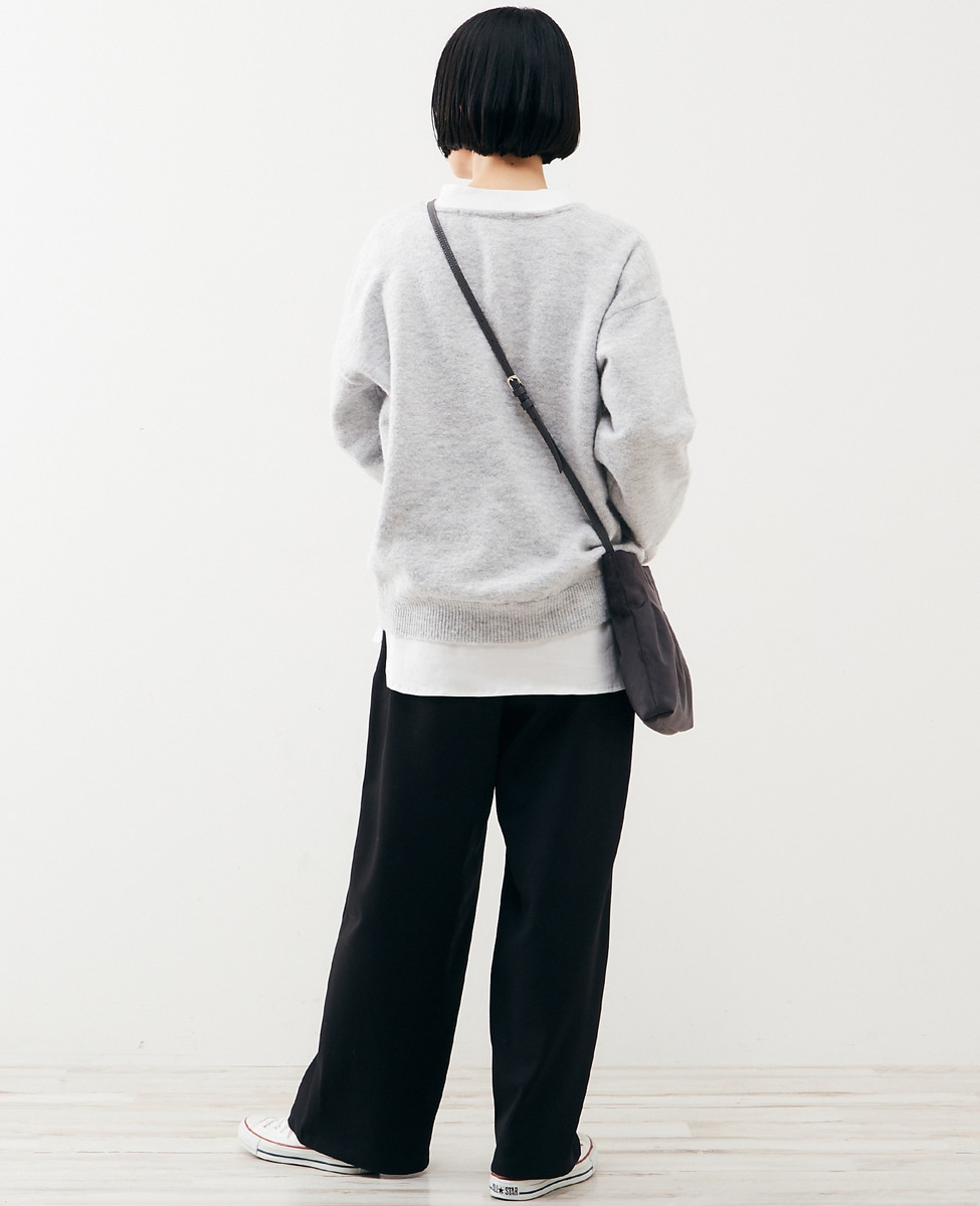 【ふわっと暖かい風合いの深めVネック☆レイヤードを楽しめるプレーンなシンプルニット】