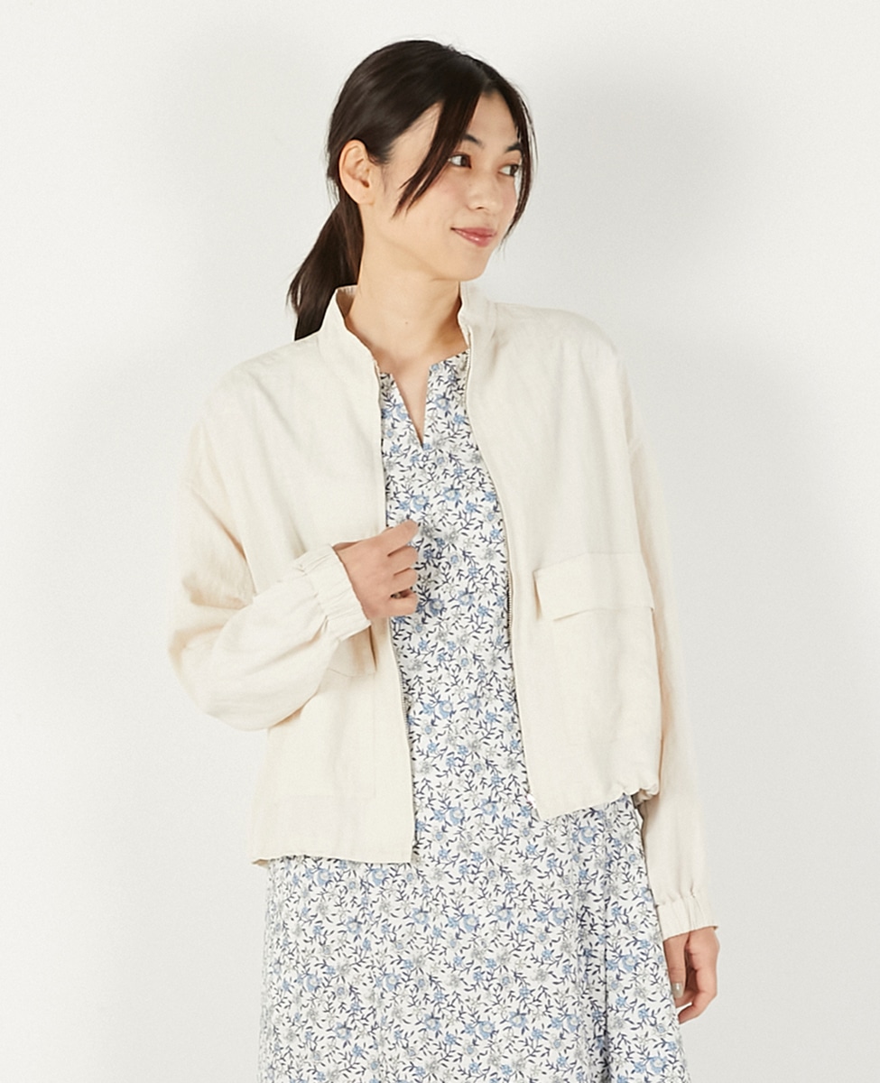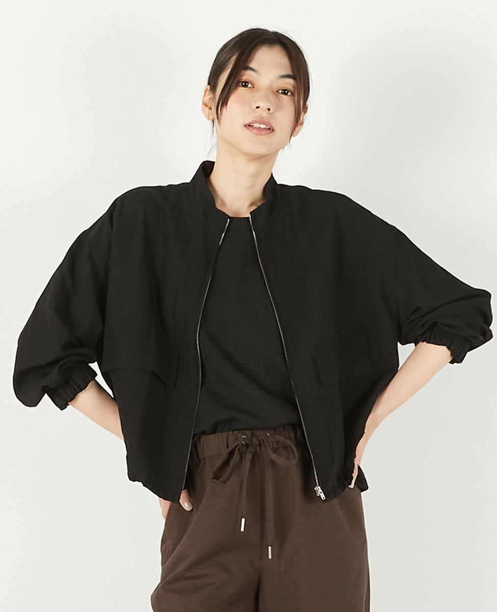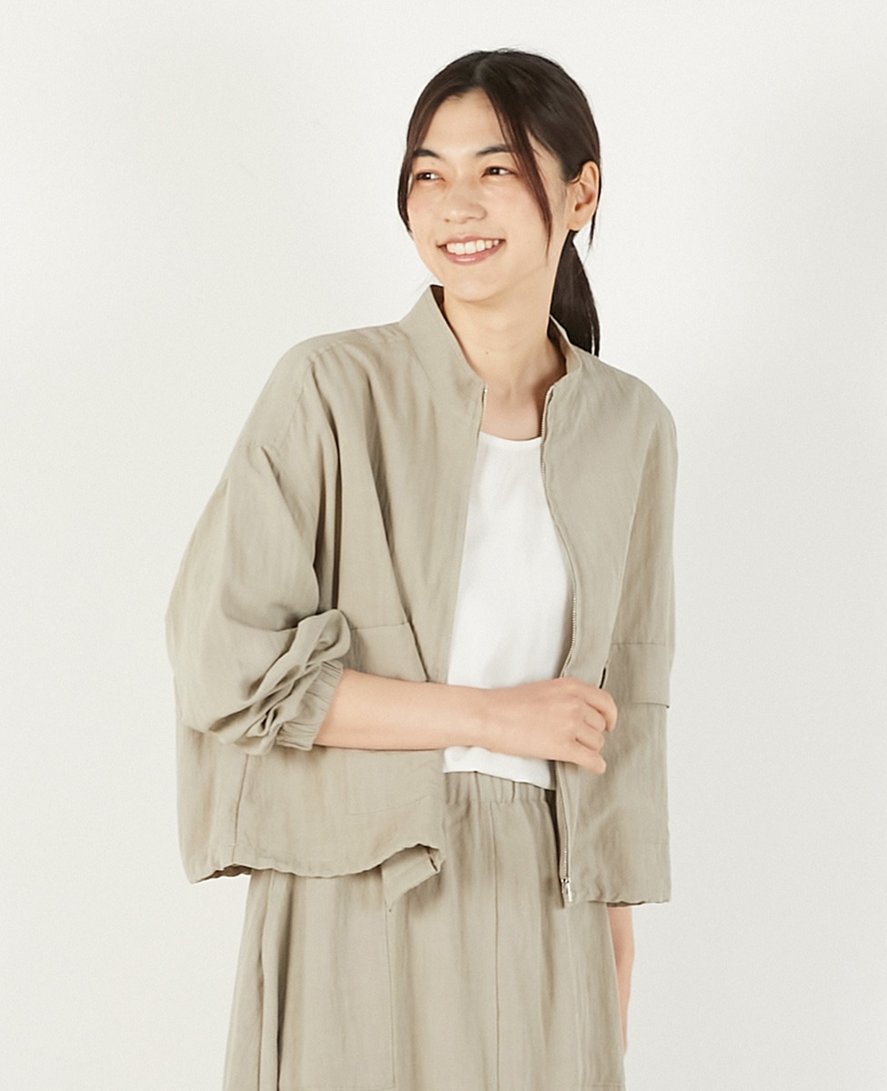 【レーヨンリネンナイロンスタンドジップブルゾン】