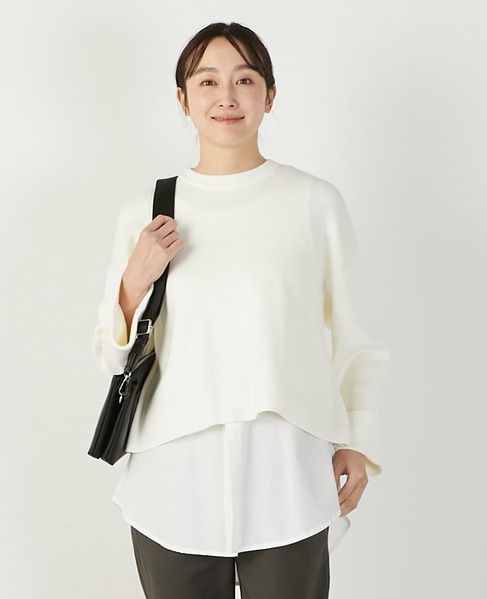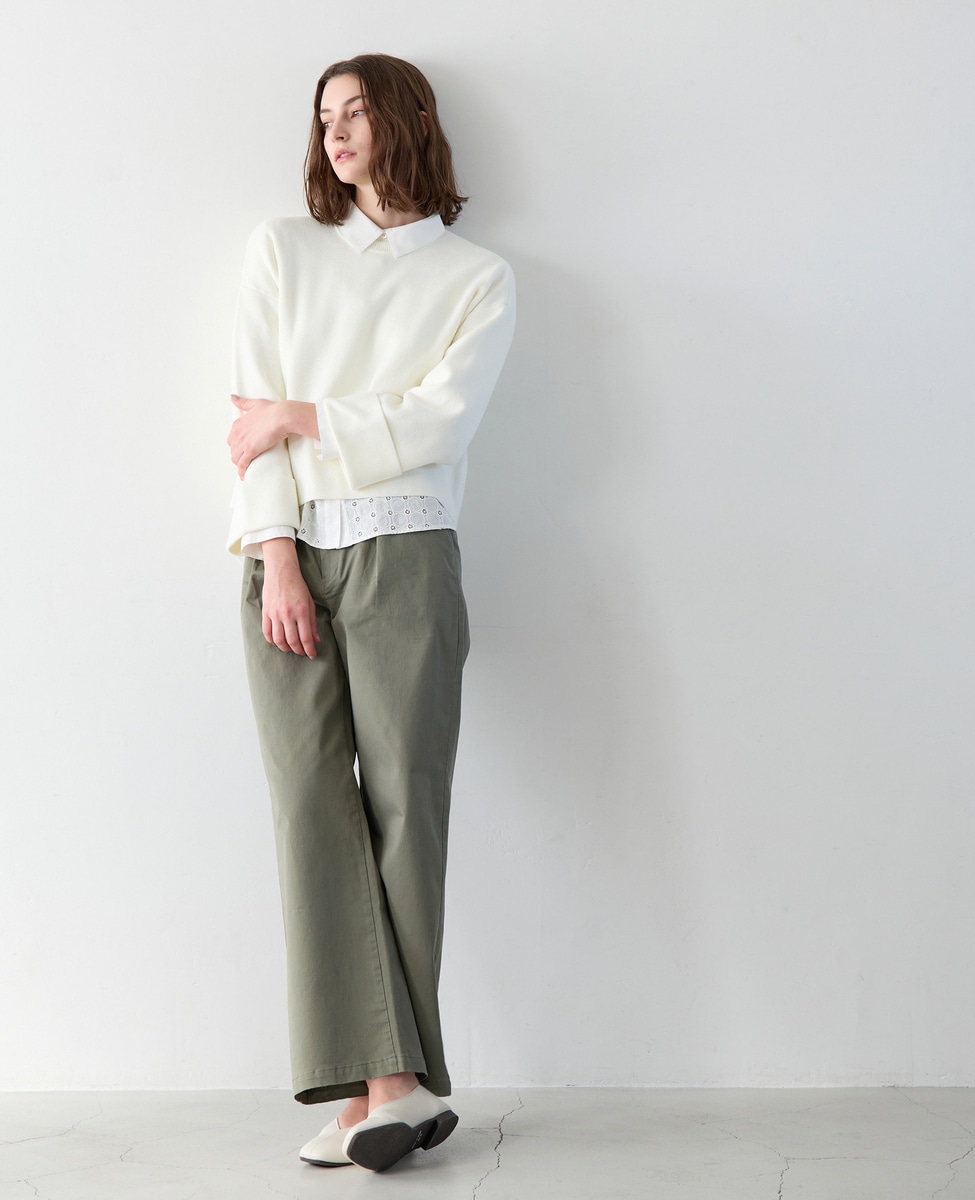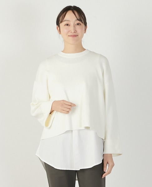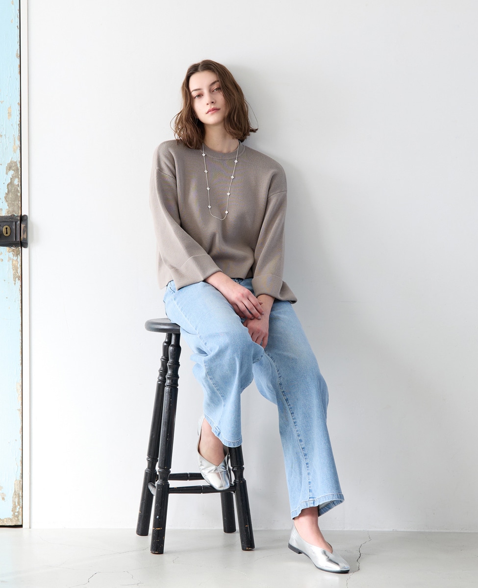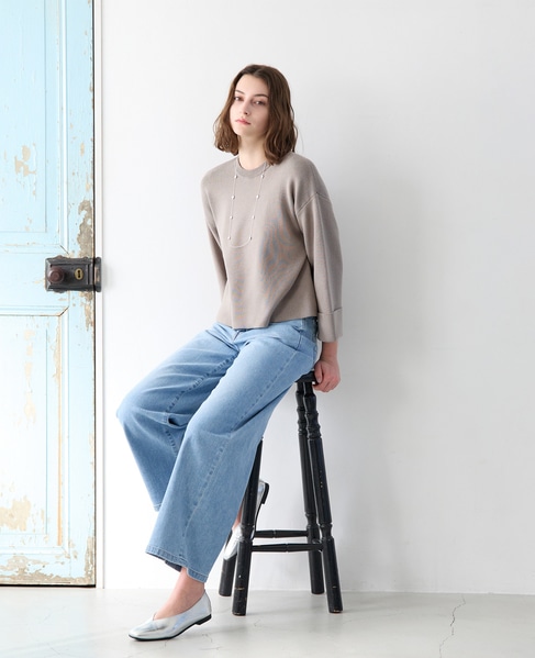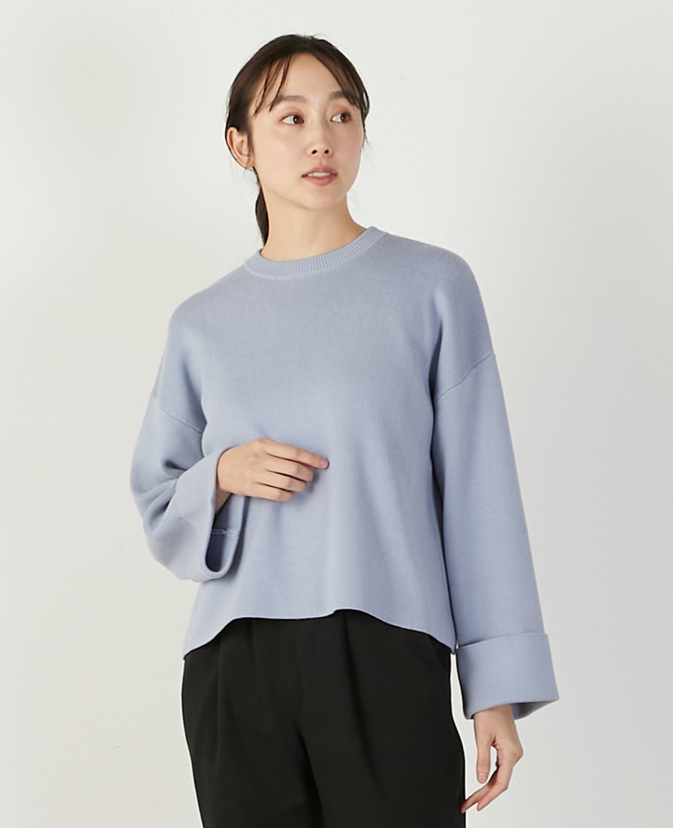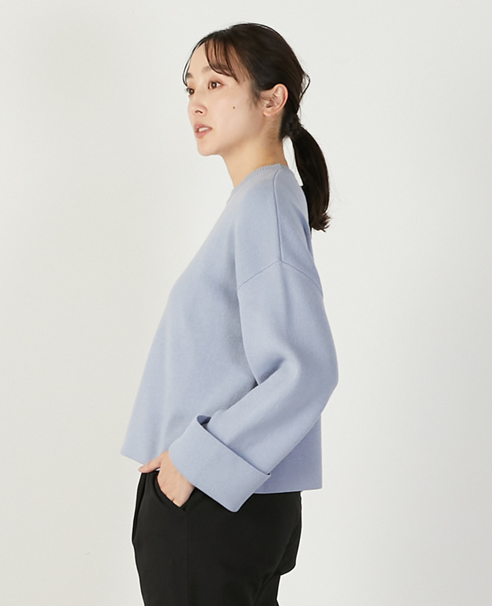 【コットン混クロプドワイドスリーブプルオーバー】