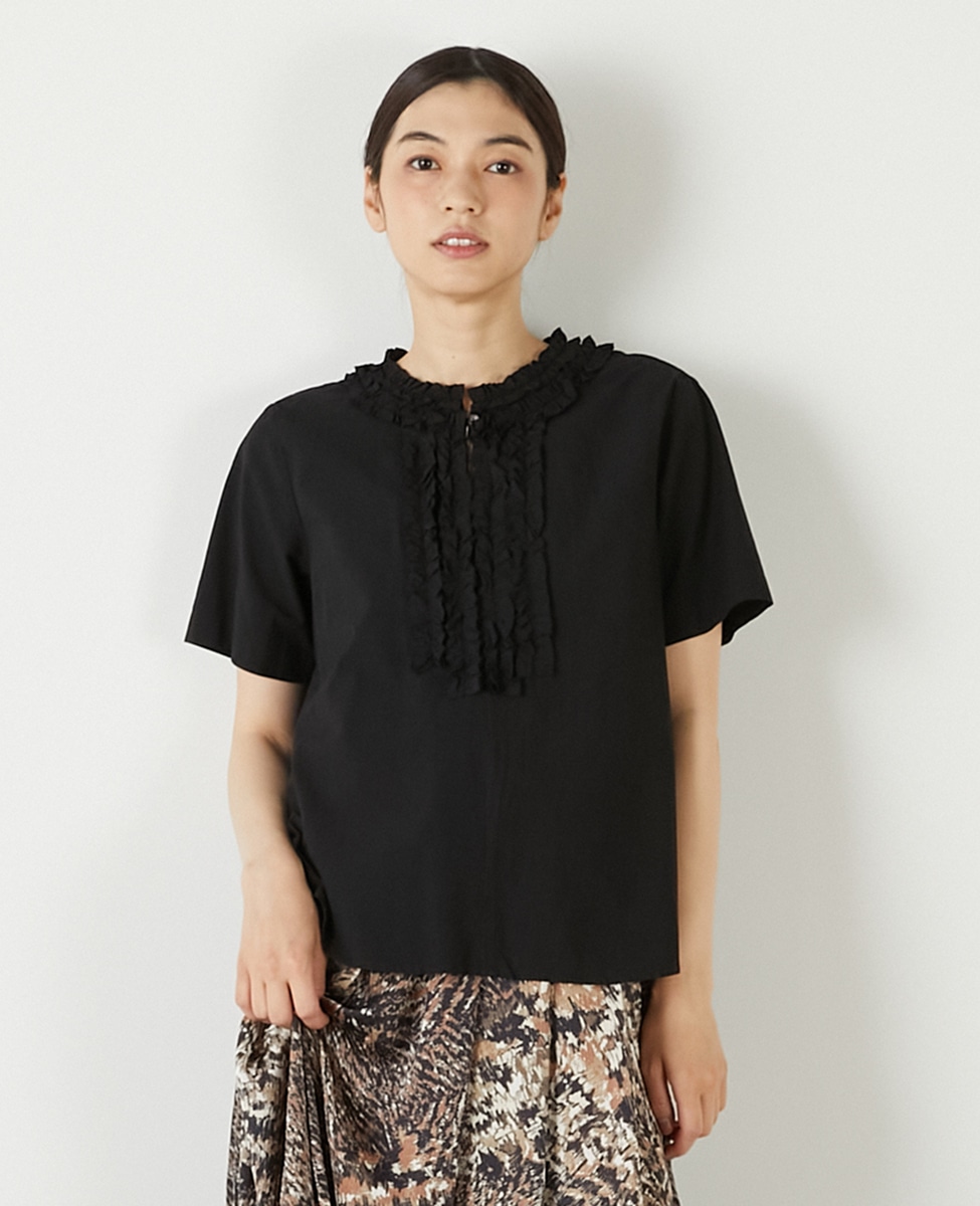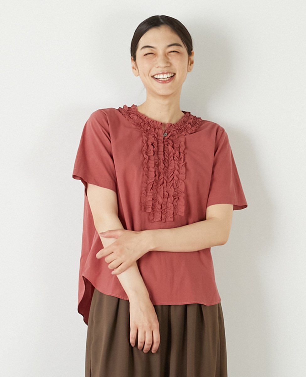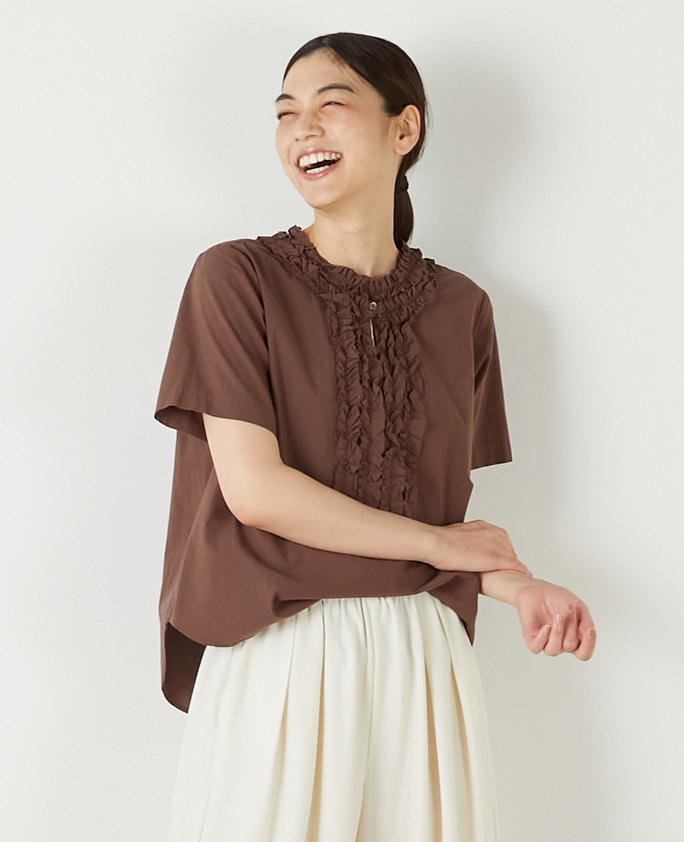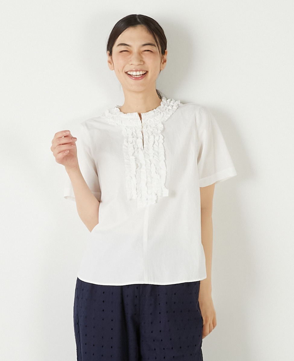 【コットンウォッシュローンフリルブラウス】