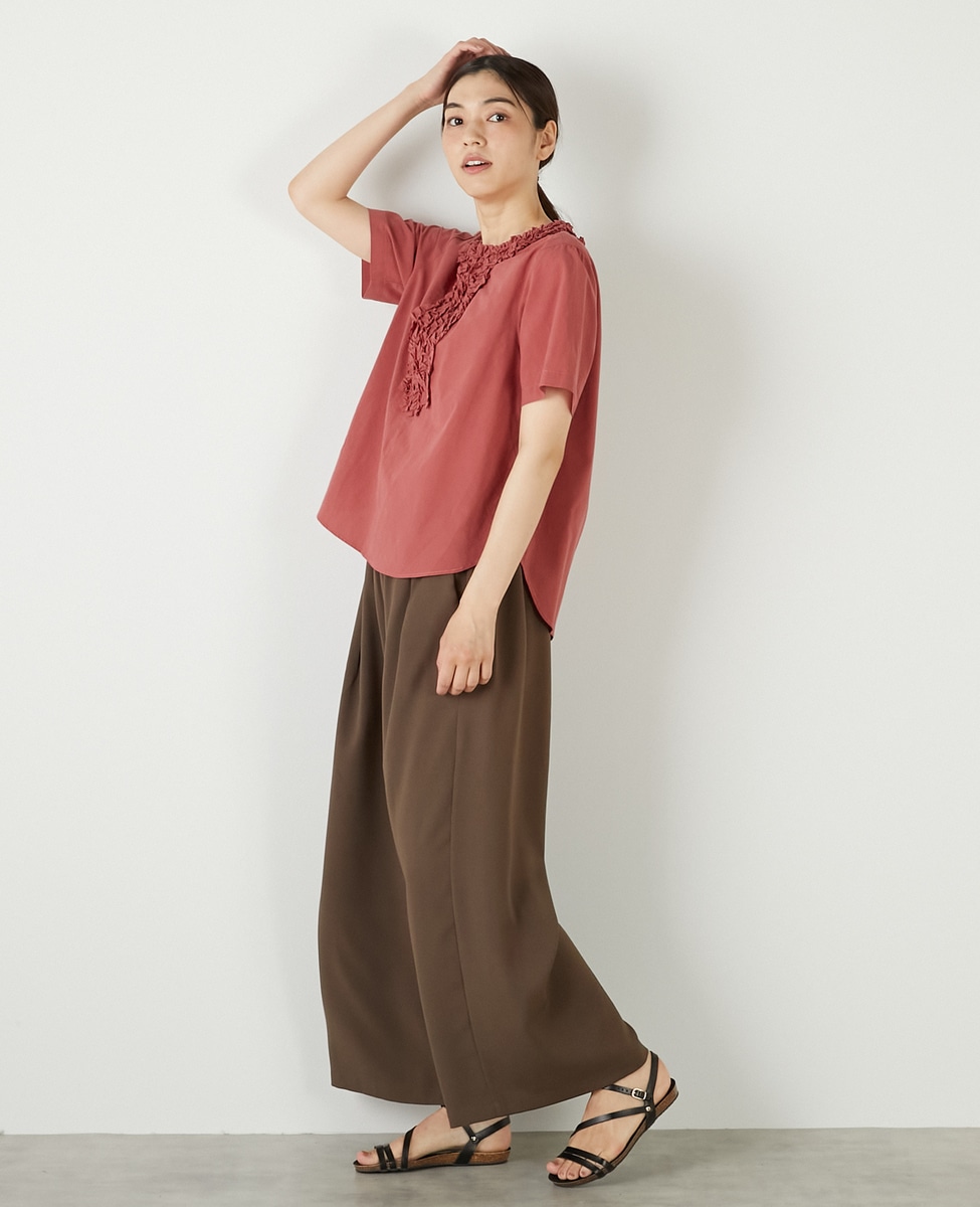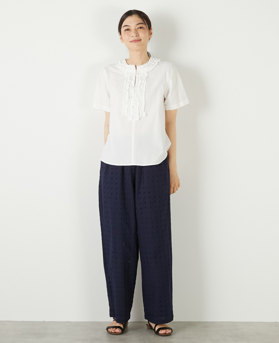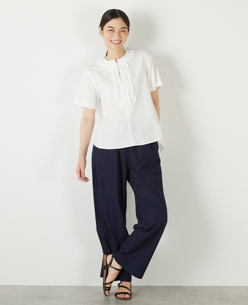 【コットンウォッシュローンフリルブラウス】
