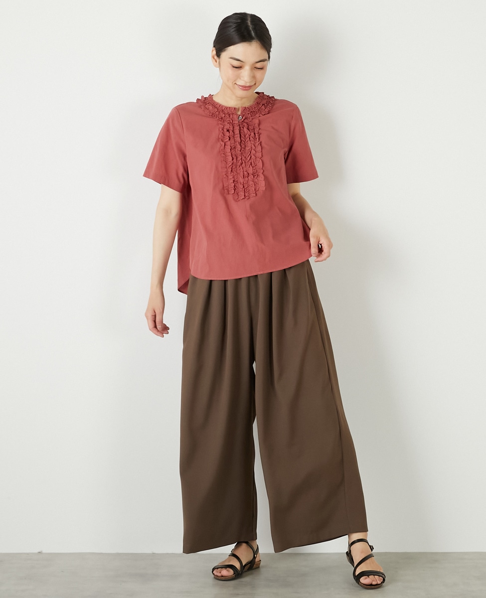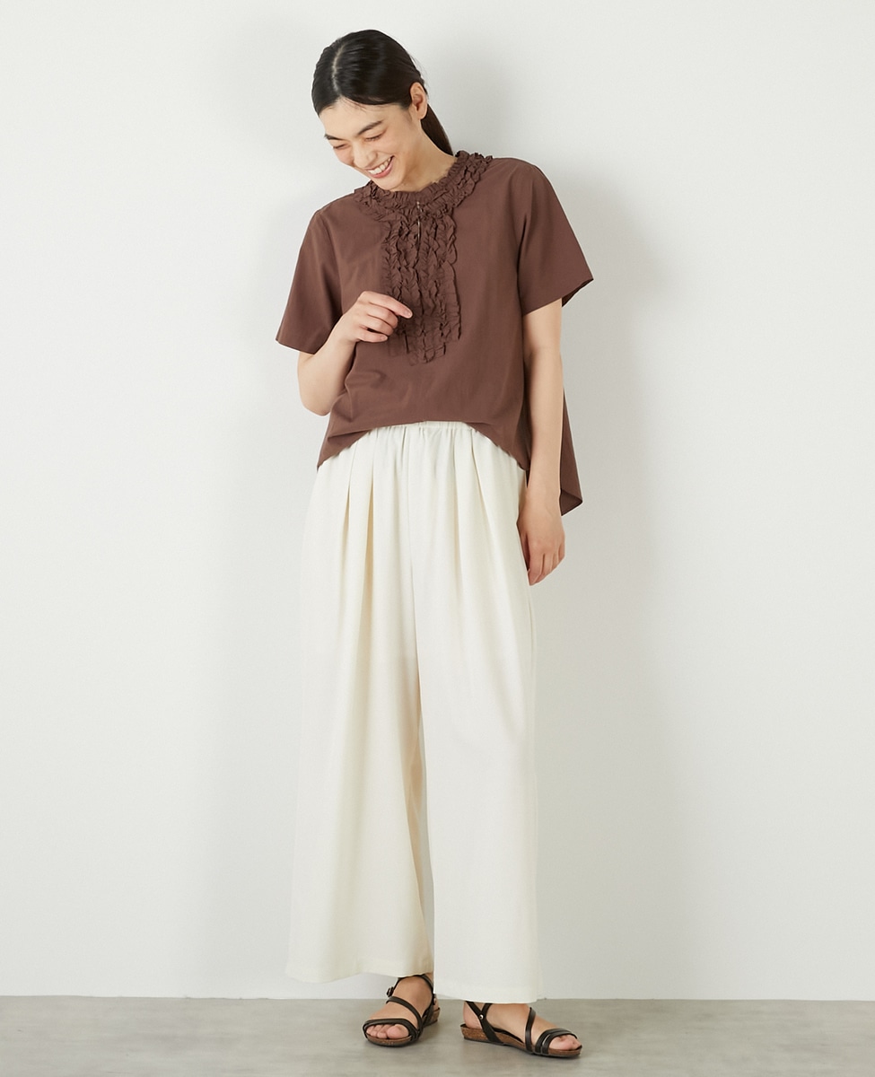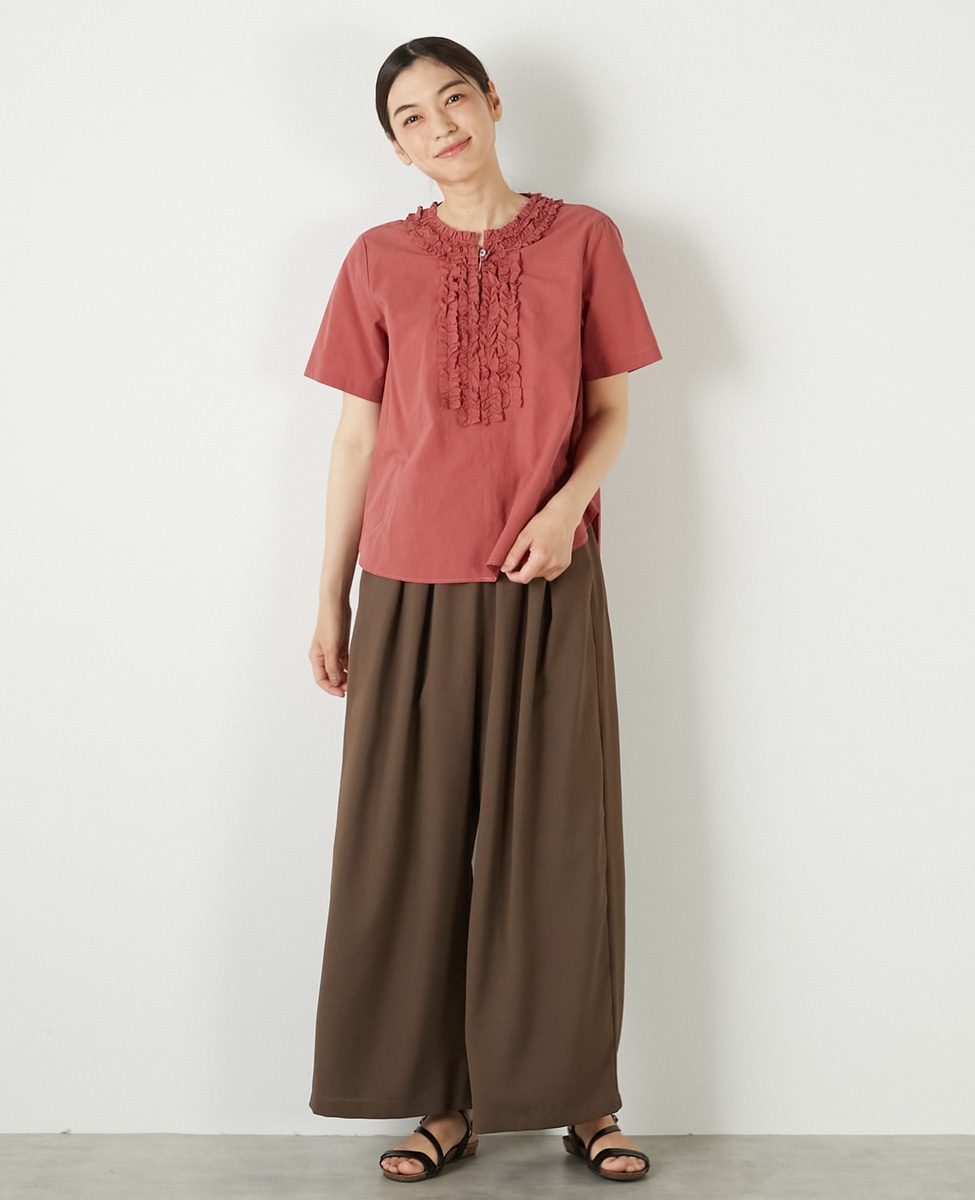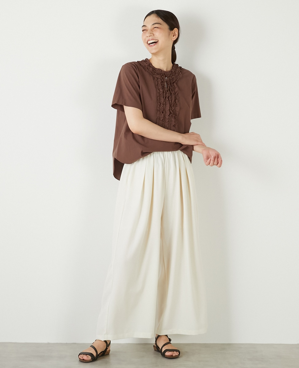 【コットンウォッシュローンフリルブラウス】