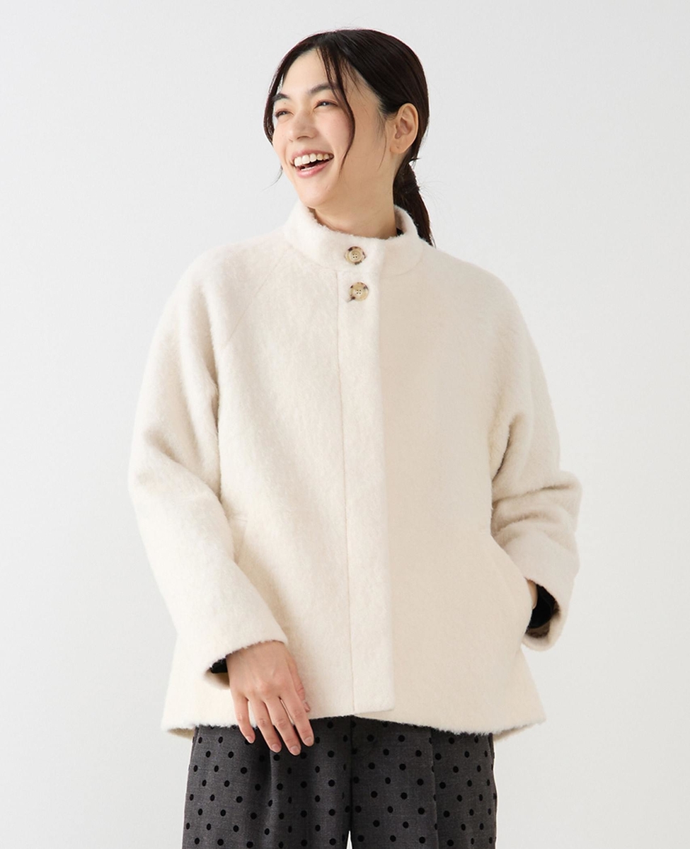 • 【ウールミックスヘアリースタンドコート】 詳細画像 アイボリー 2