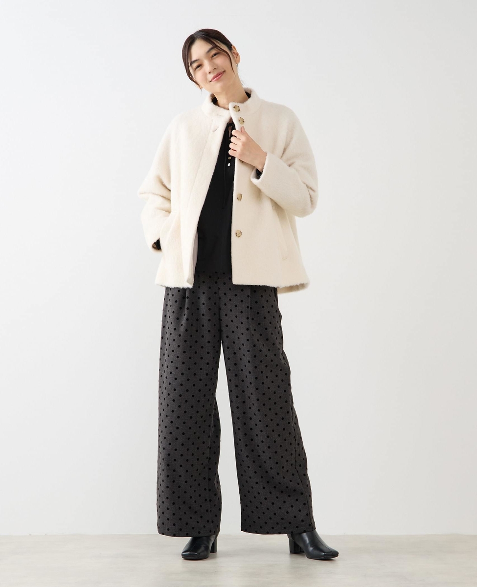 • 【ウールミックスヘアリースタンドコート】 詳細画像 アイボリー 1