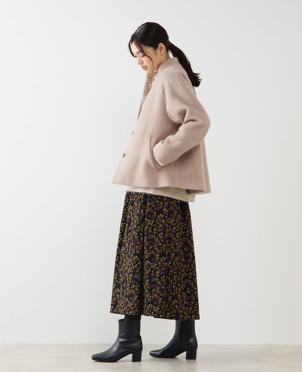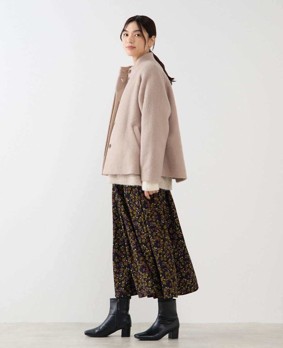 スタンドカラーですっきりと見せつつ防寒性を高め、前を開けても閉めてもバランスよく着こなせる丈感にこだわりました。