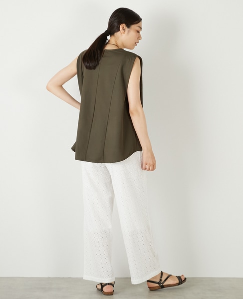 同素材で展開するブラウスとのセットアップコーデもおすすめです。