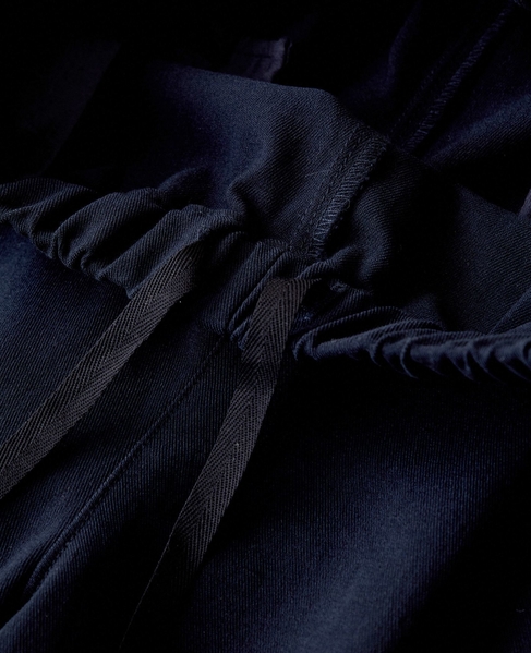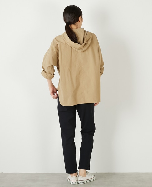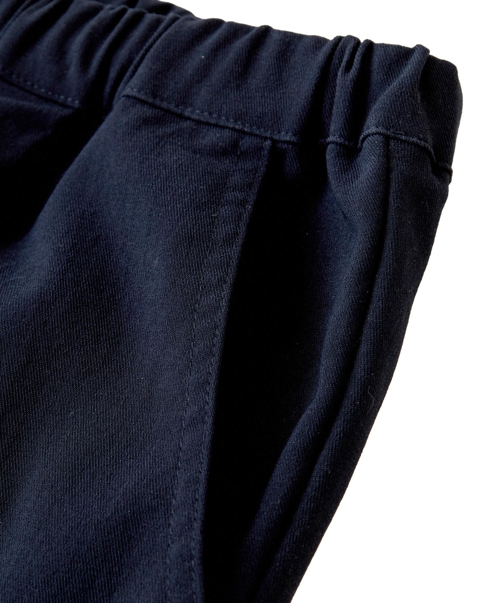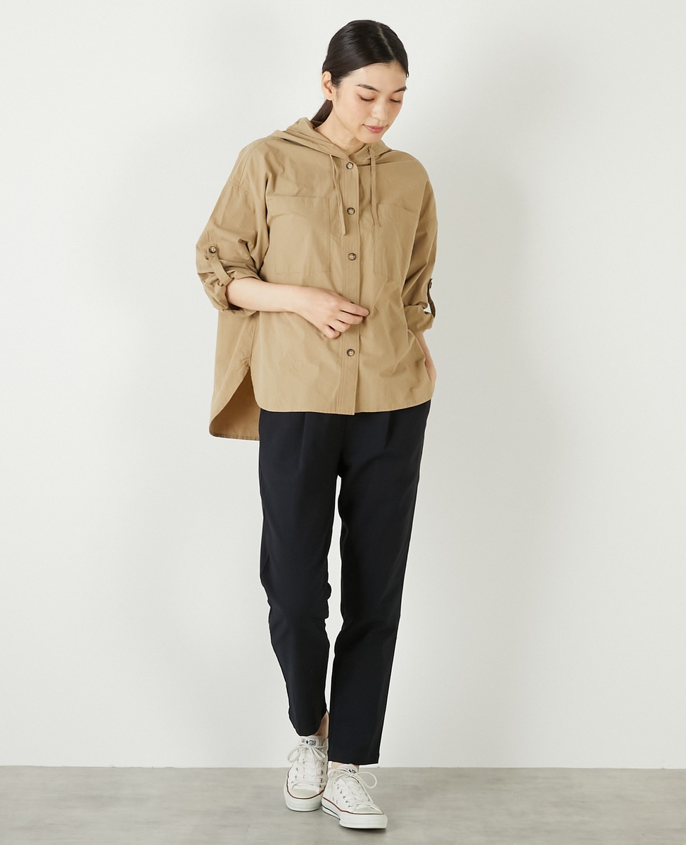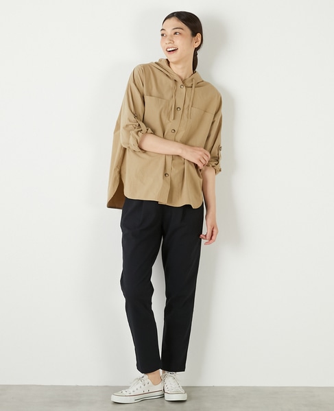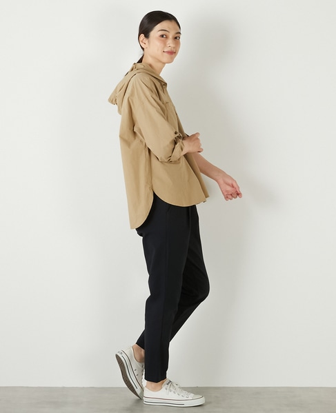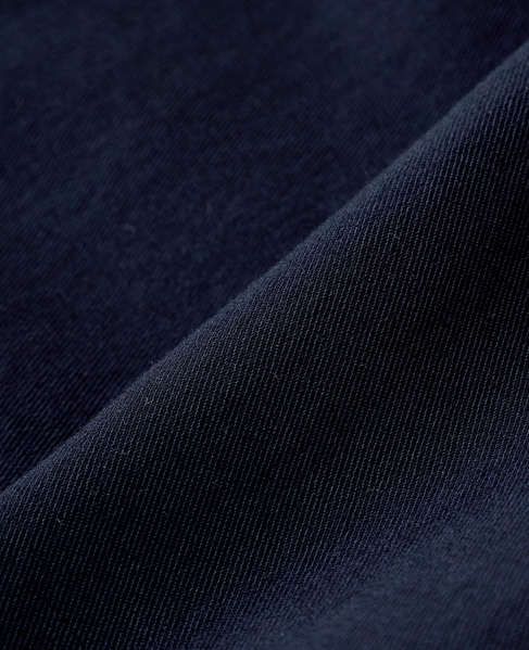 程よい張り感と抜群のストレッチ性がポイントのポリエステル×コットンツイル素材で作った