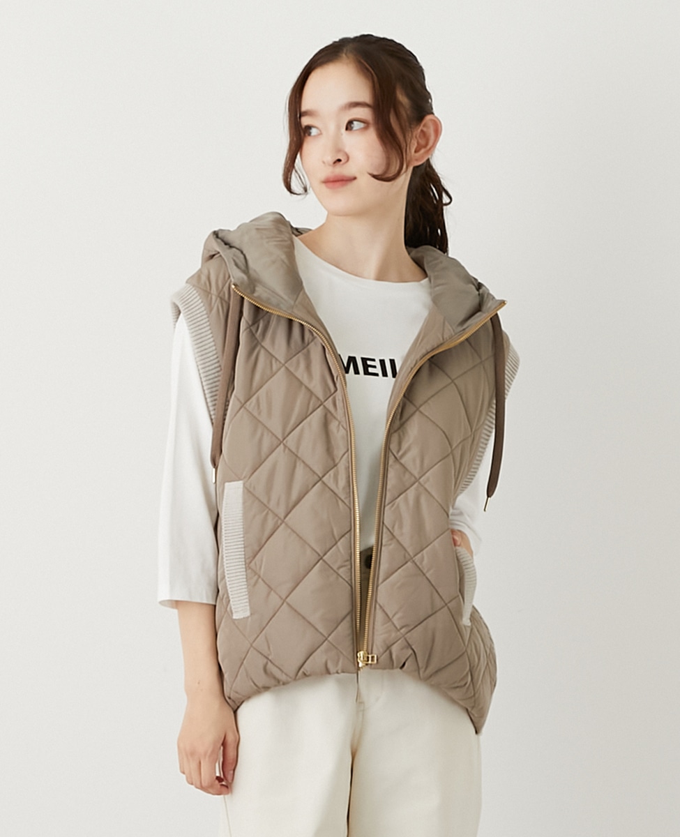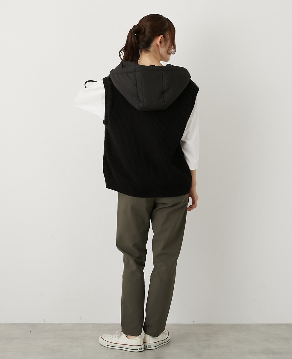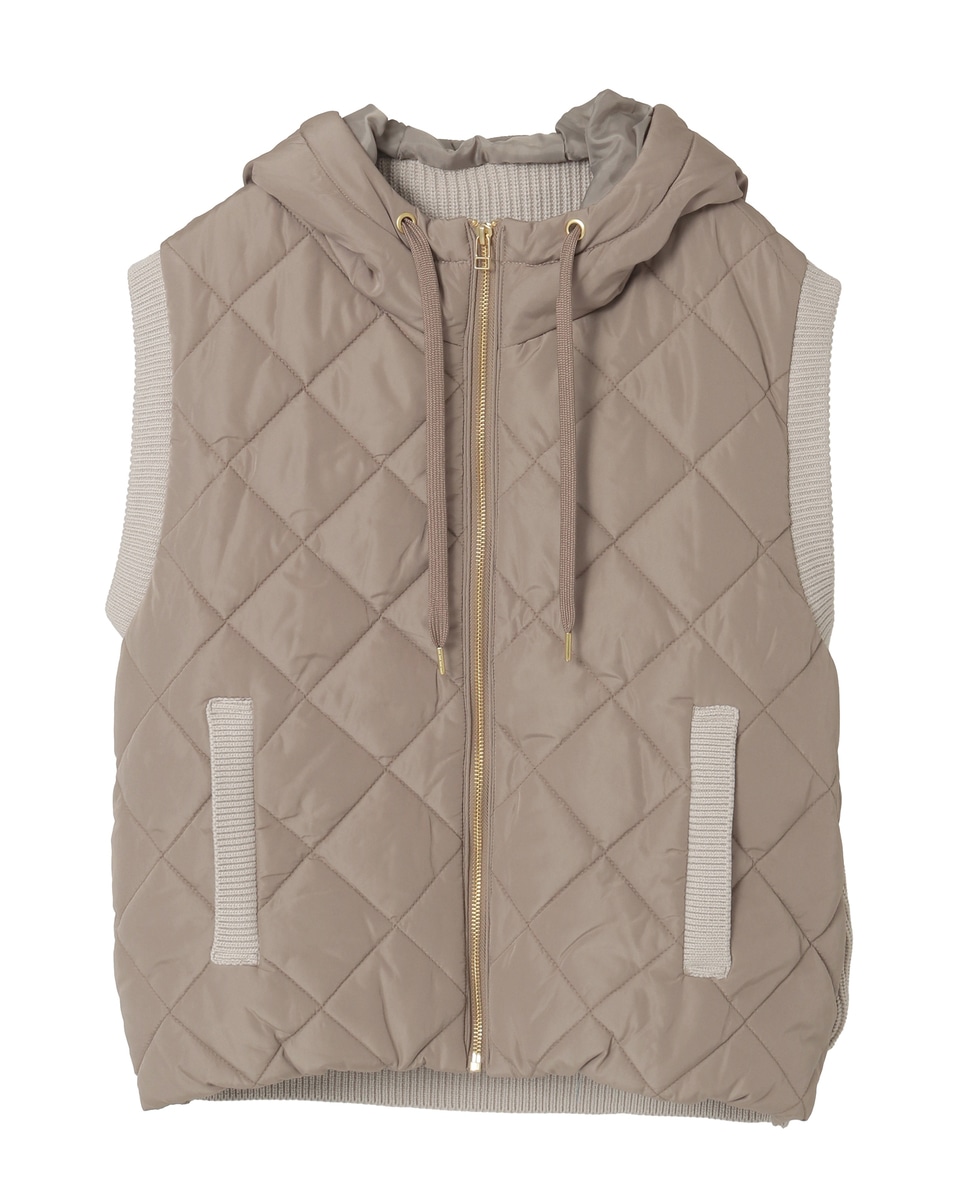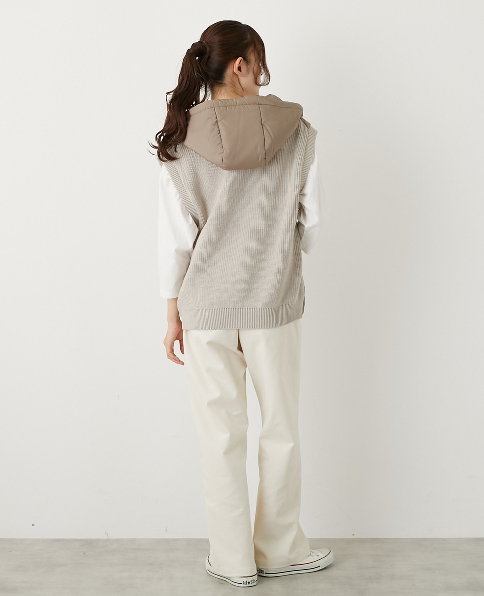 【中綿×ニット切替ZIPフードベスト】
