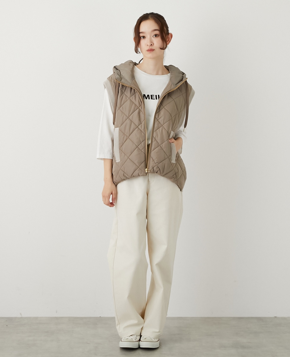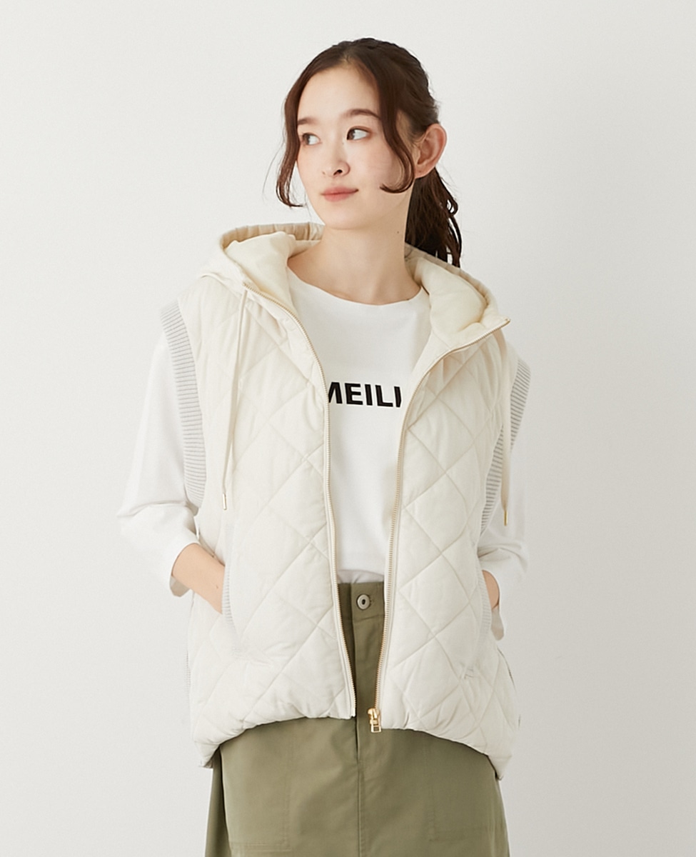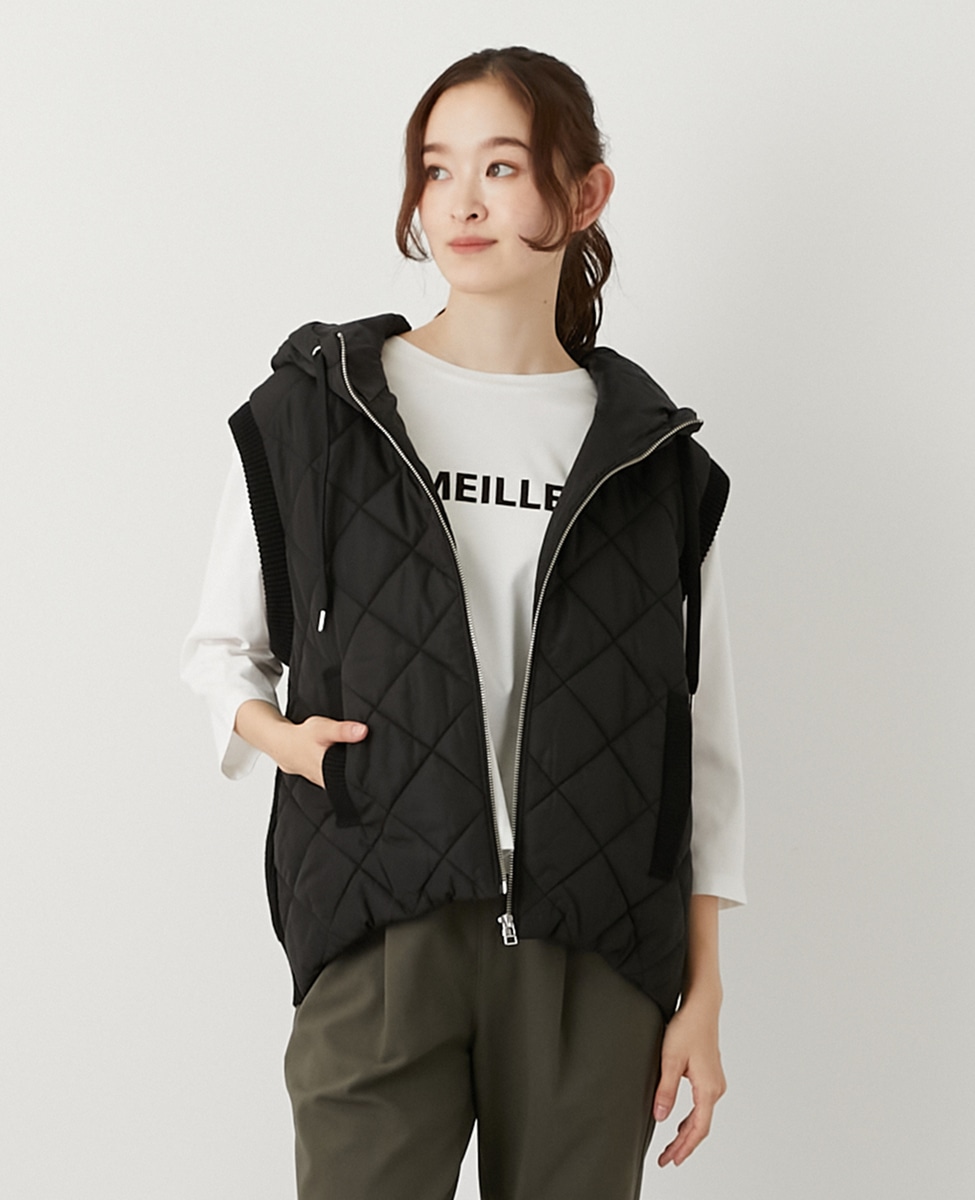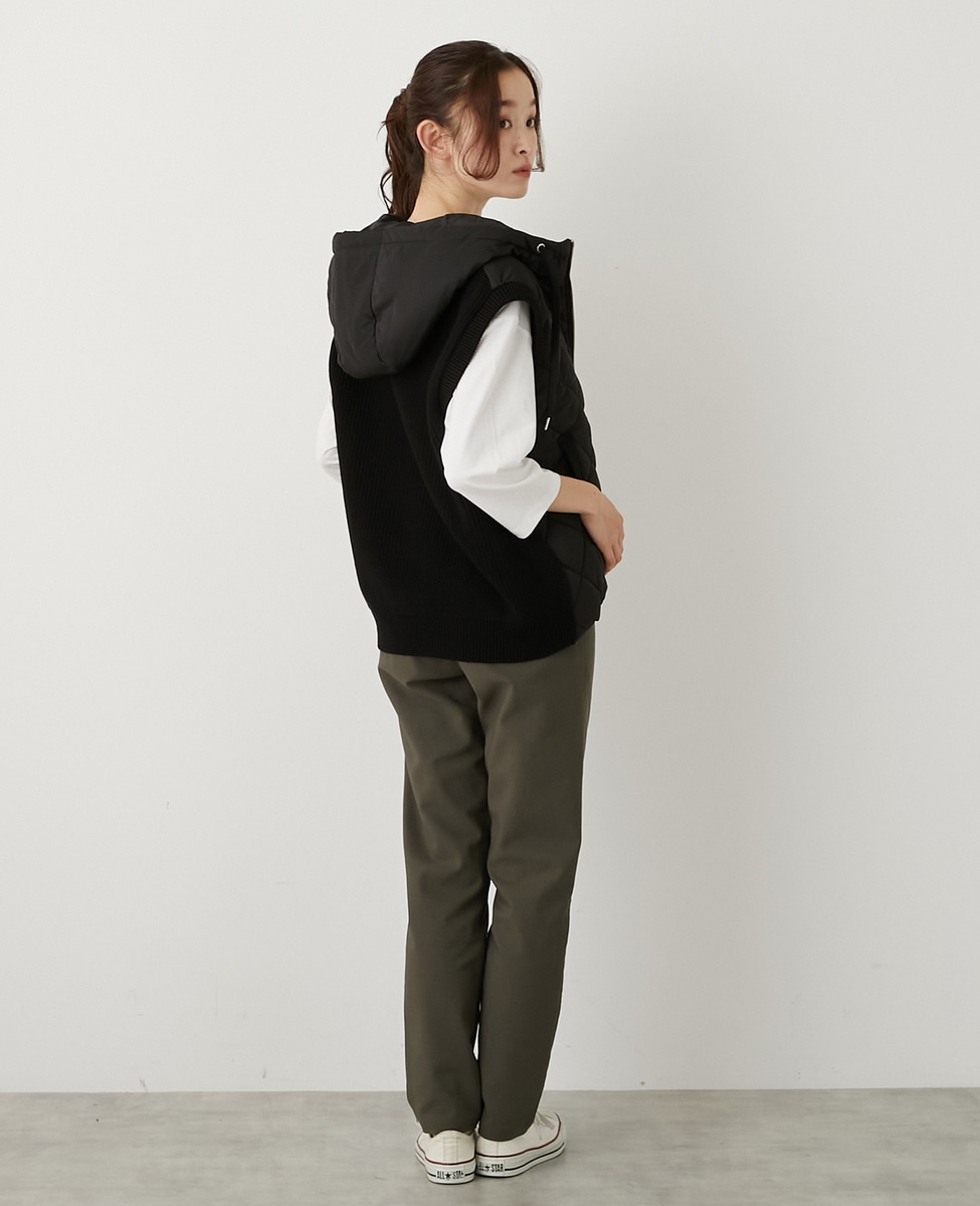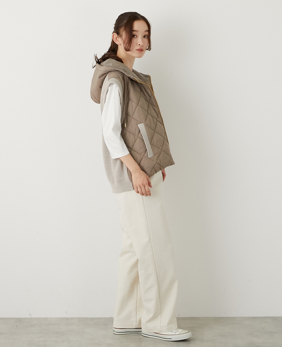 【中綿×ニット切替ZIPフードベスト】