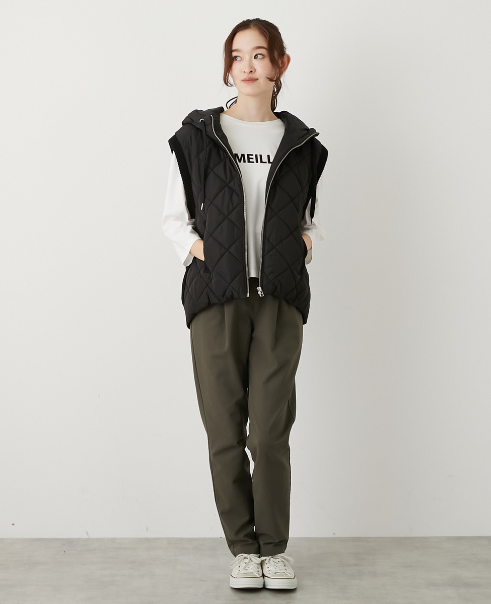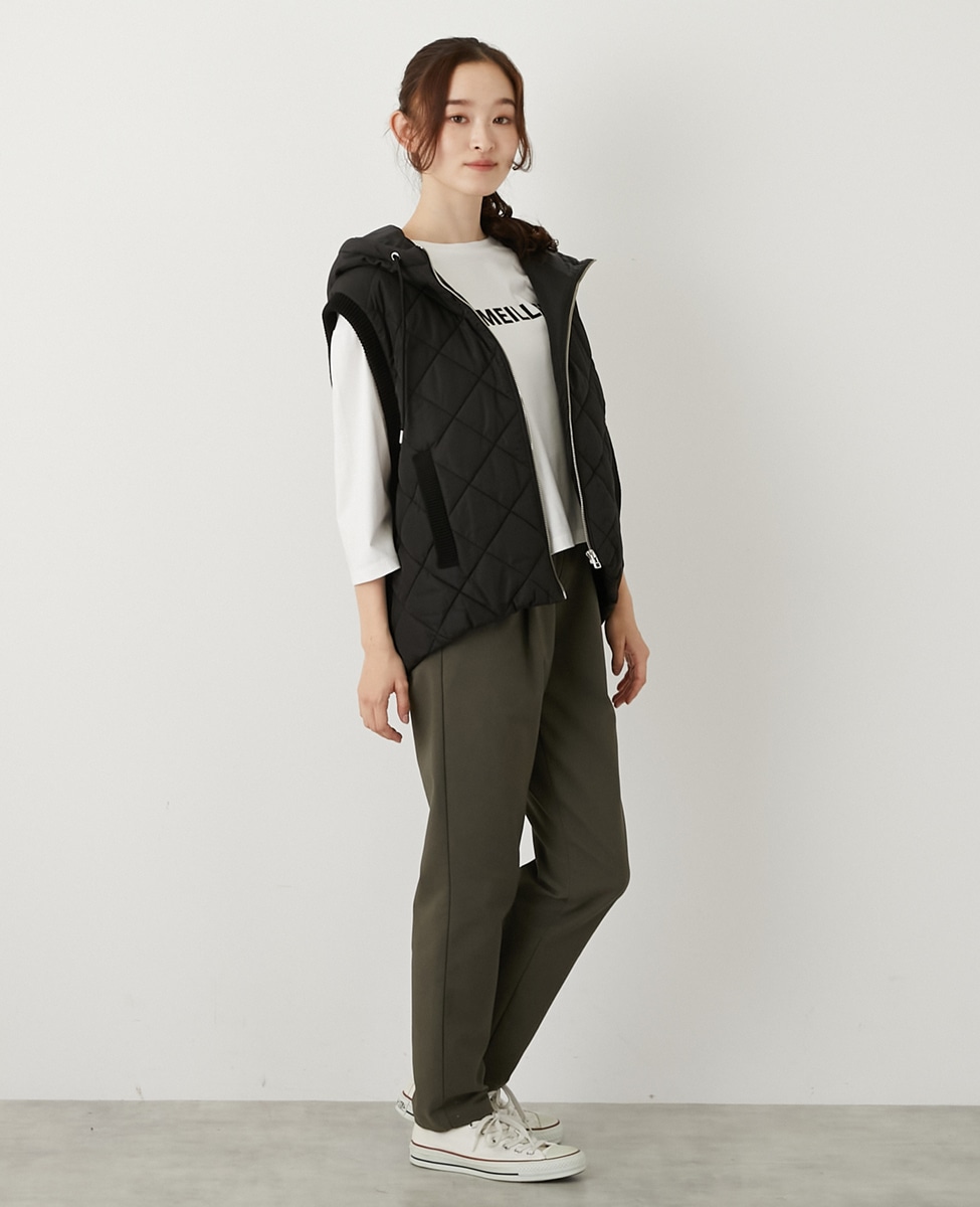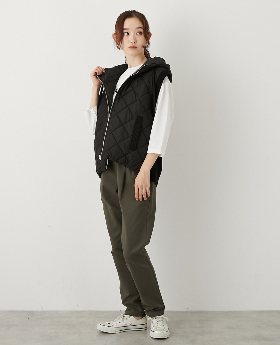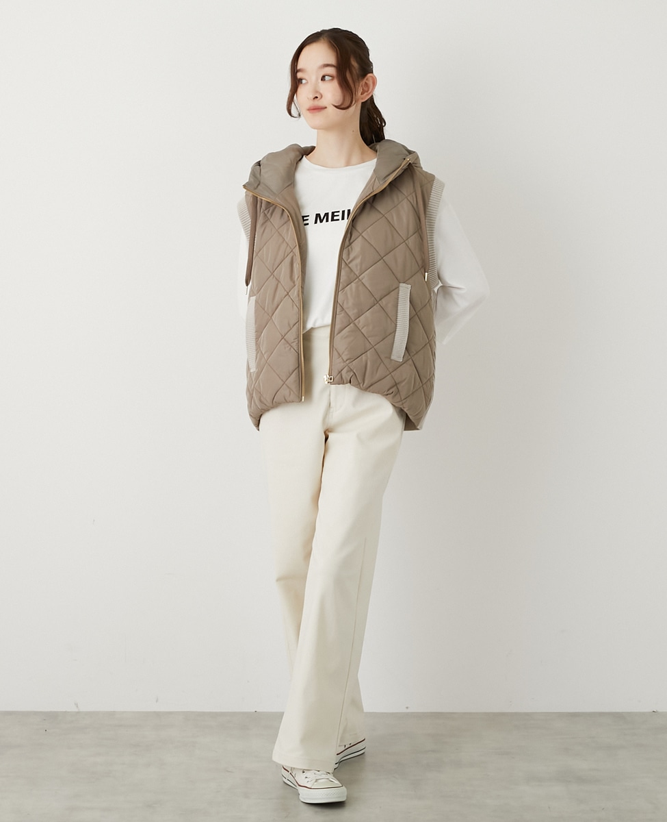 【中綿×ニット切替ZIPフードベスト】