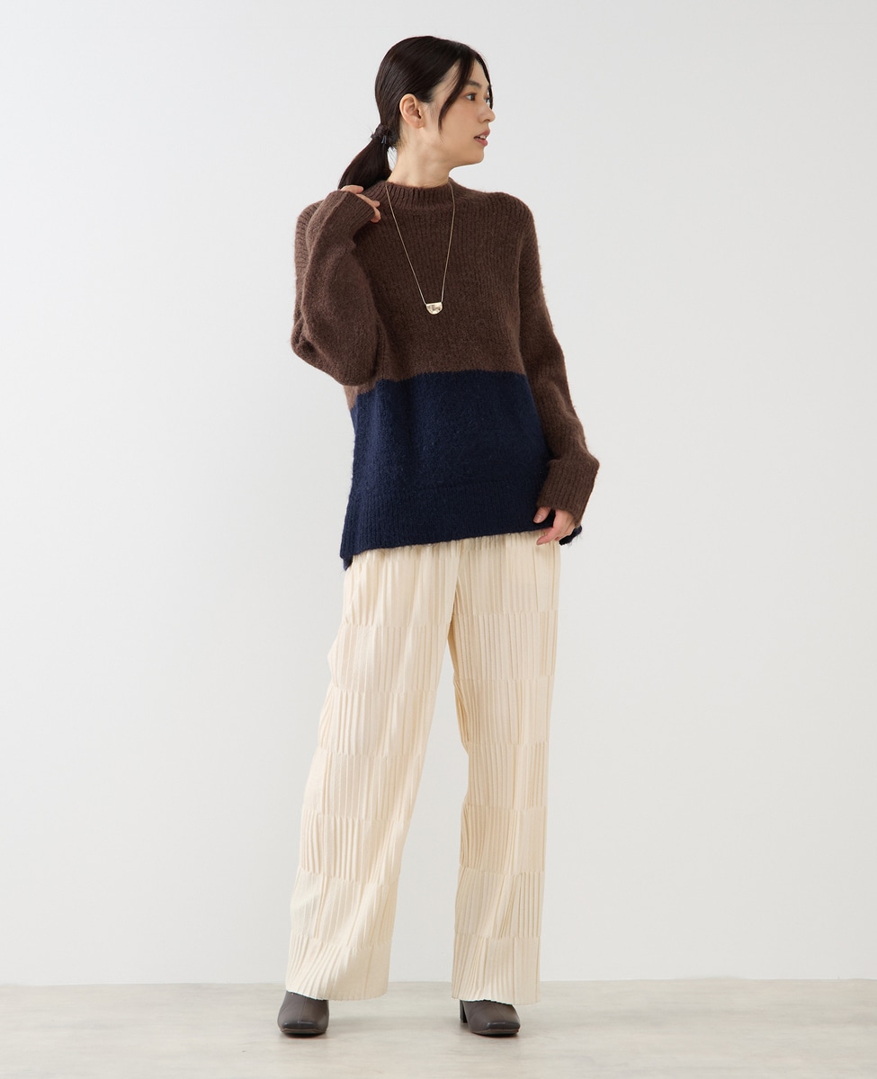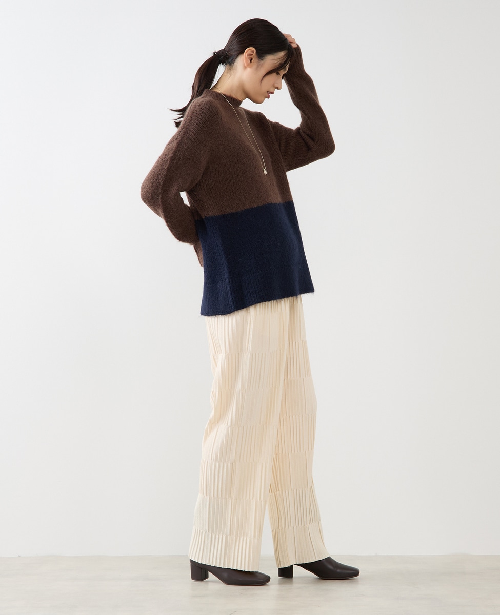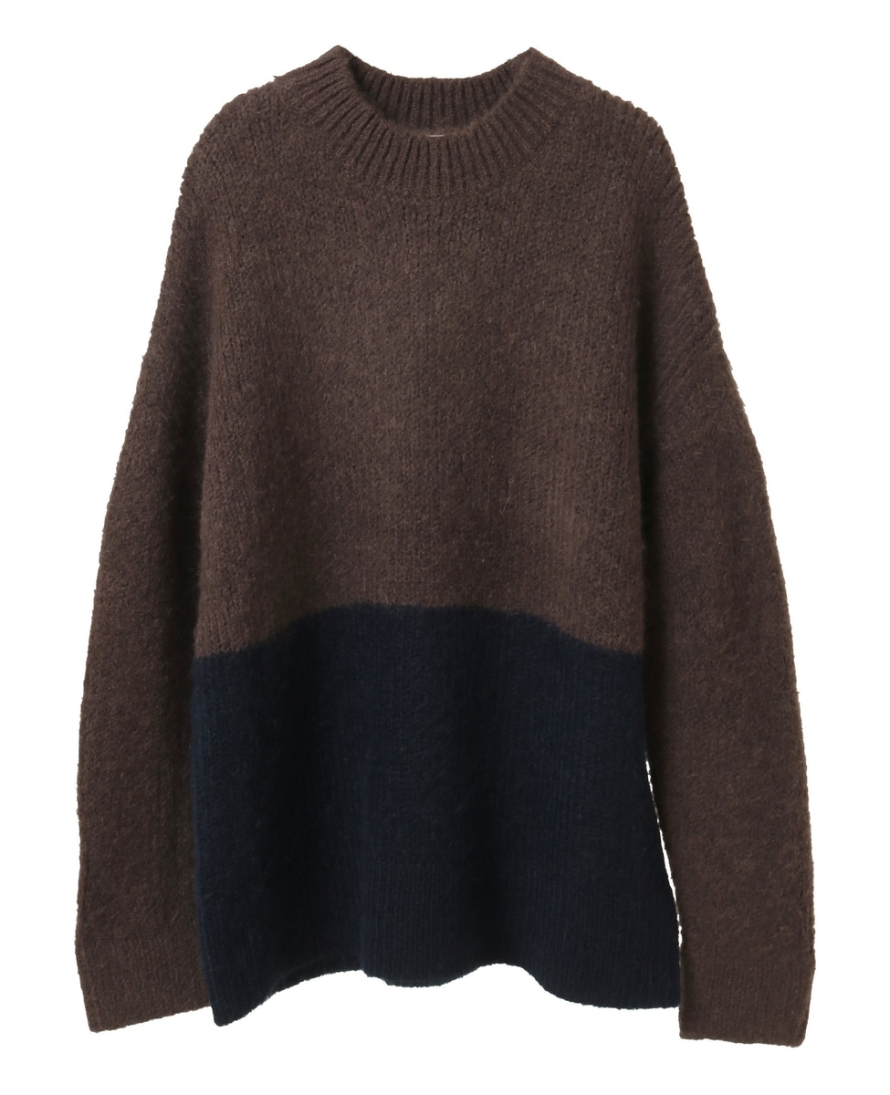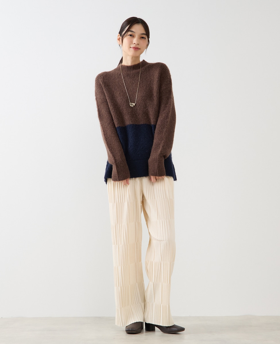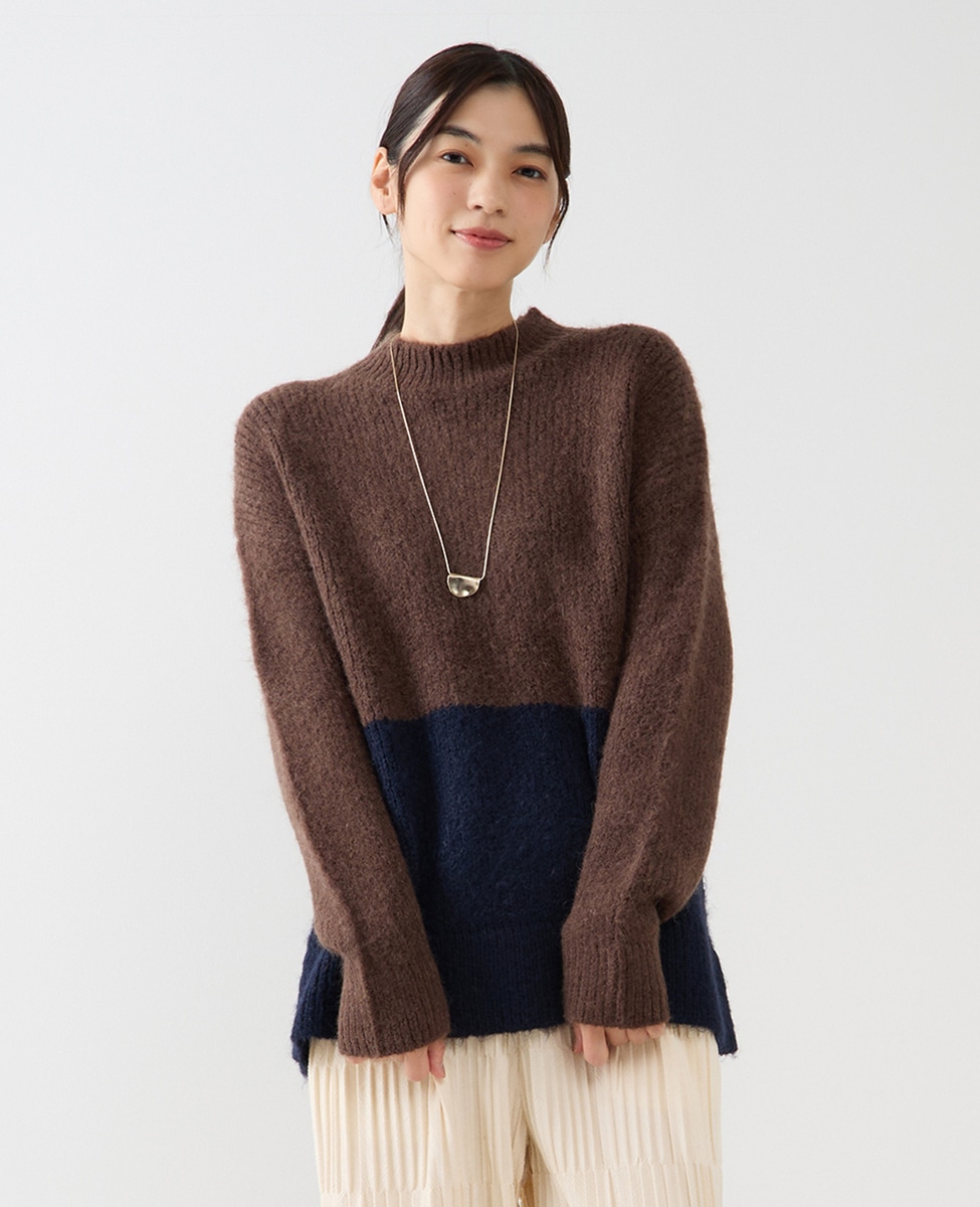 【ヘアリーミックスバイカラーモックネックプルオーバー】