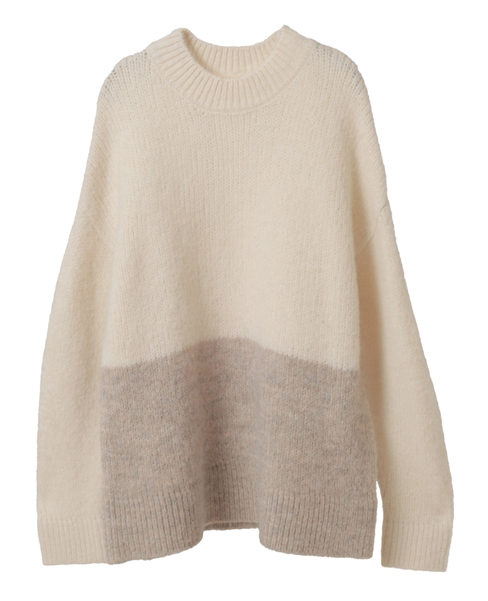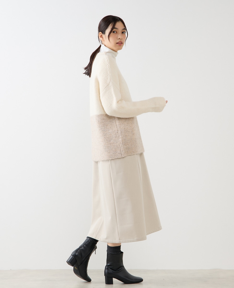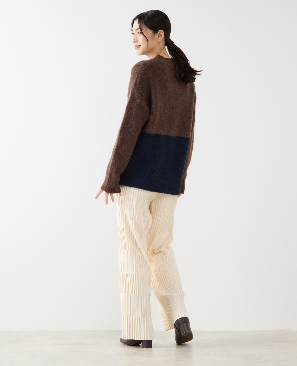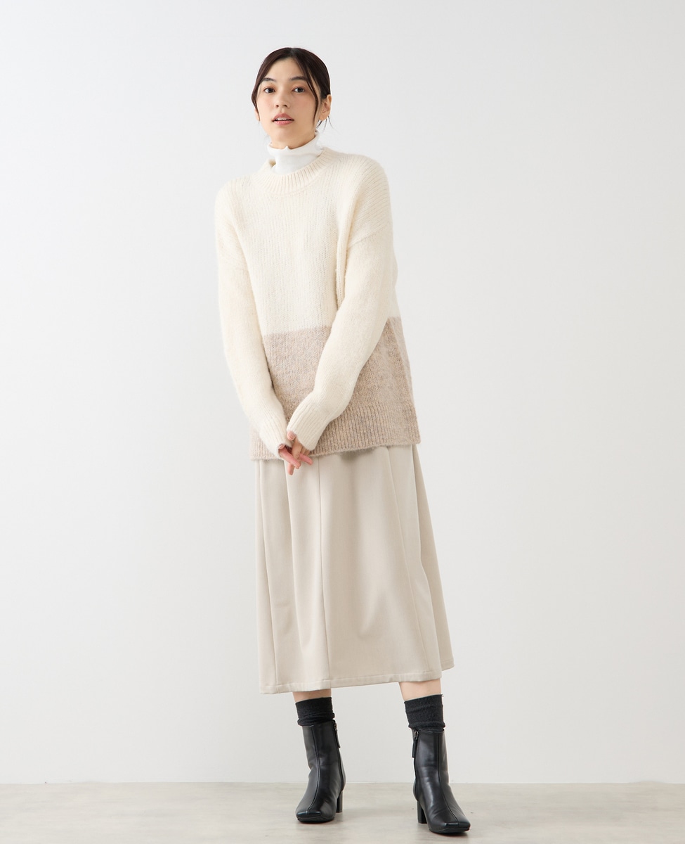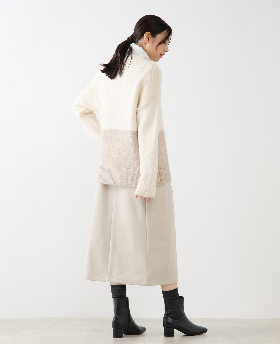 【ヘアリーミックスバイカラーモックネックプルオーバー】