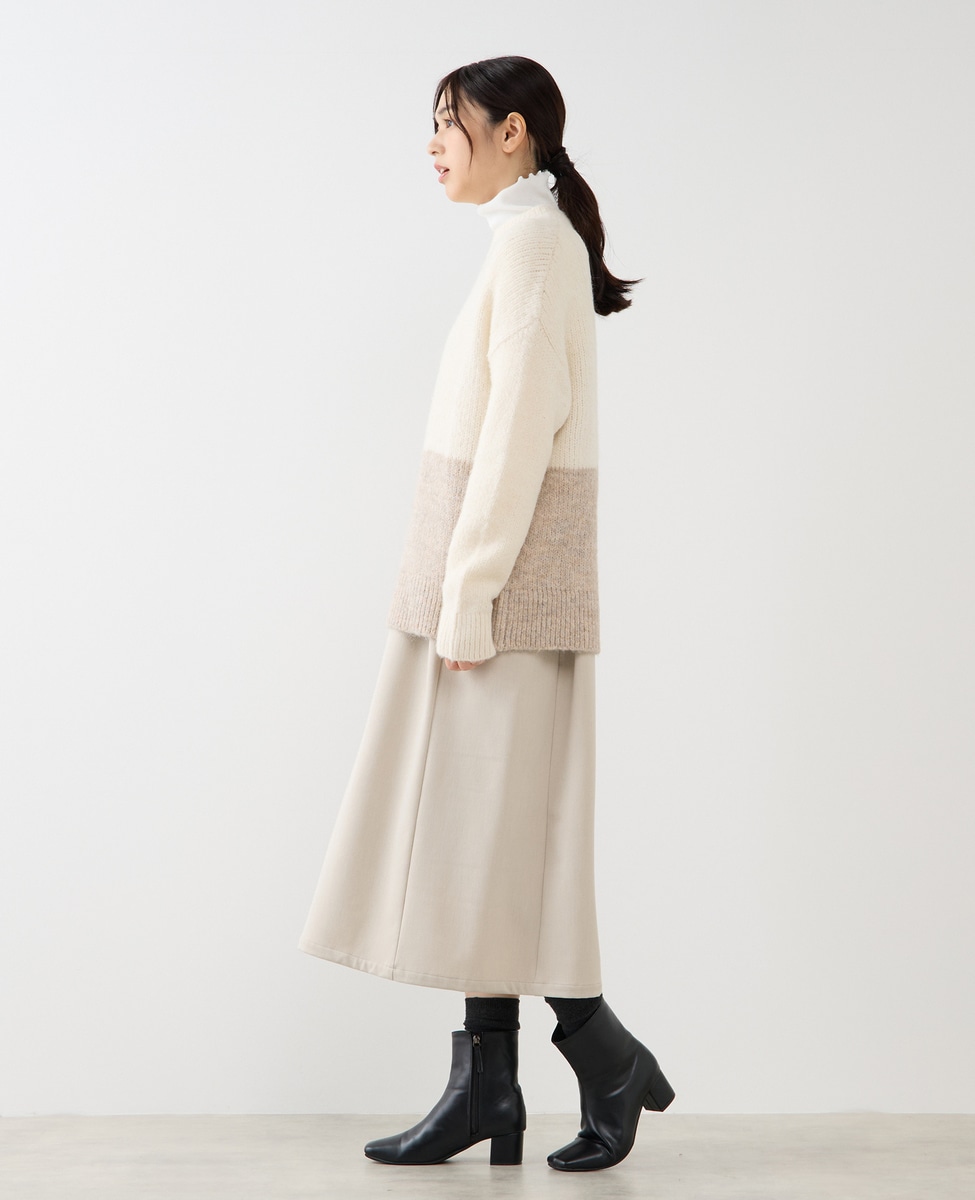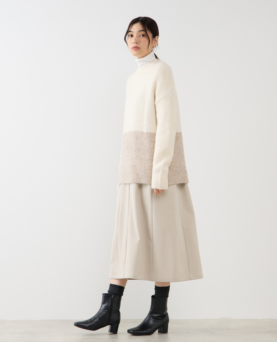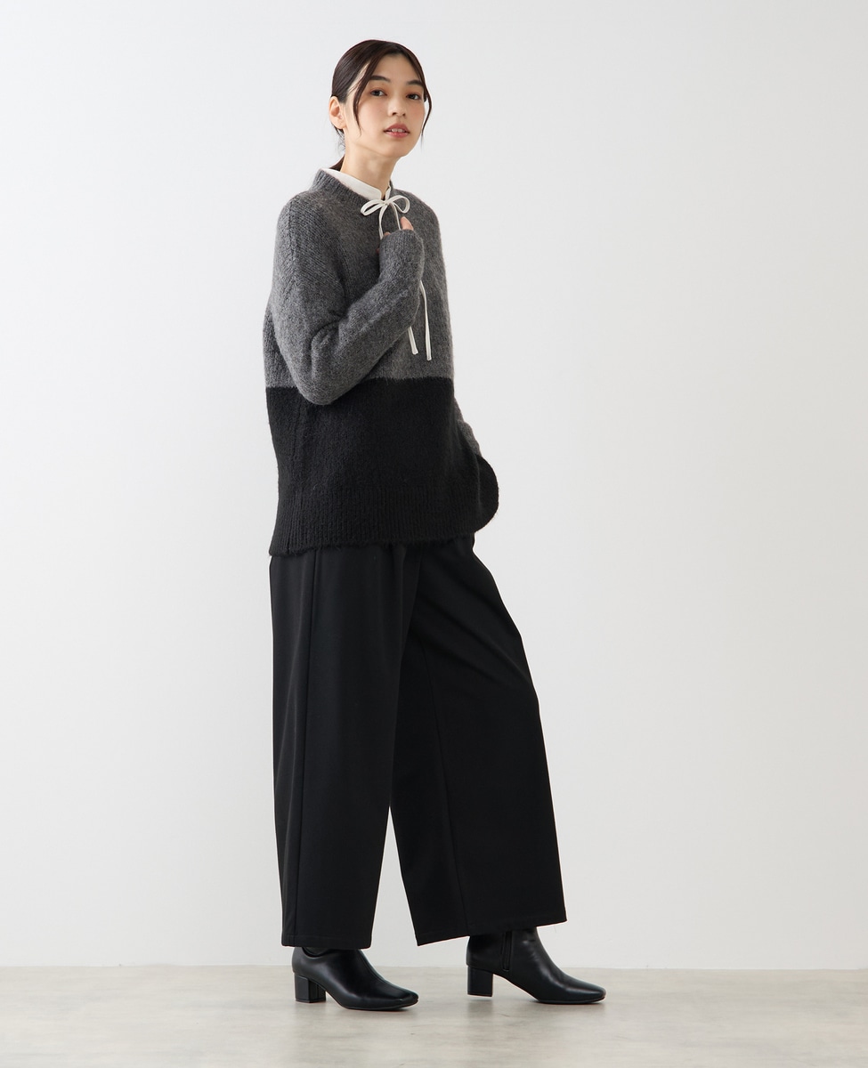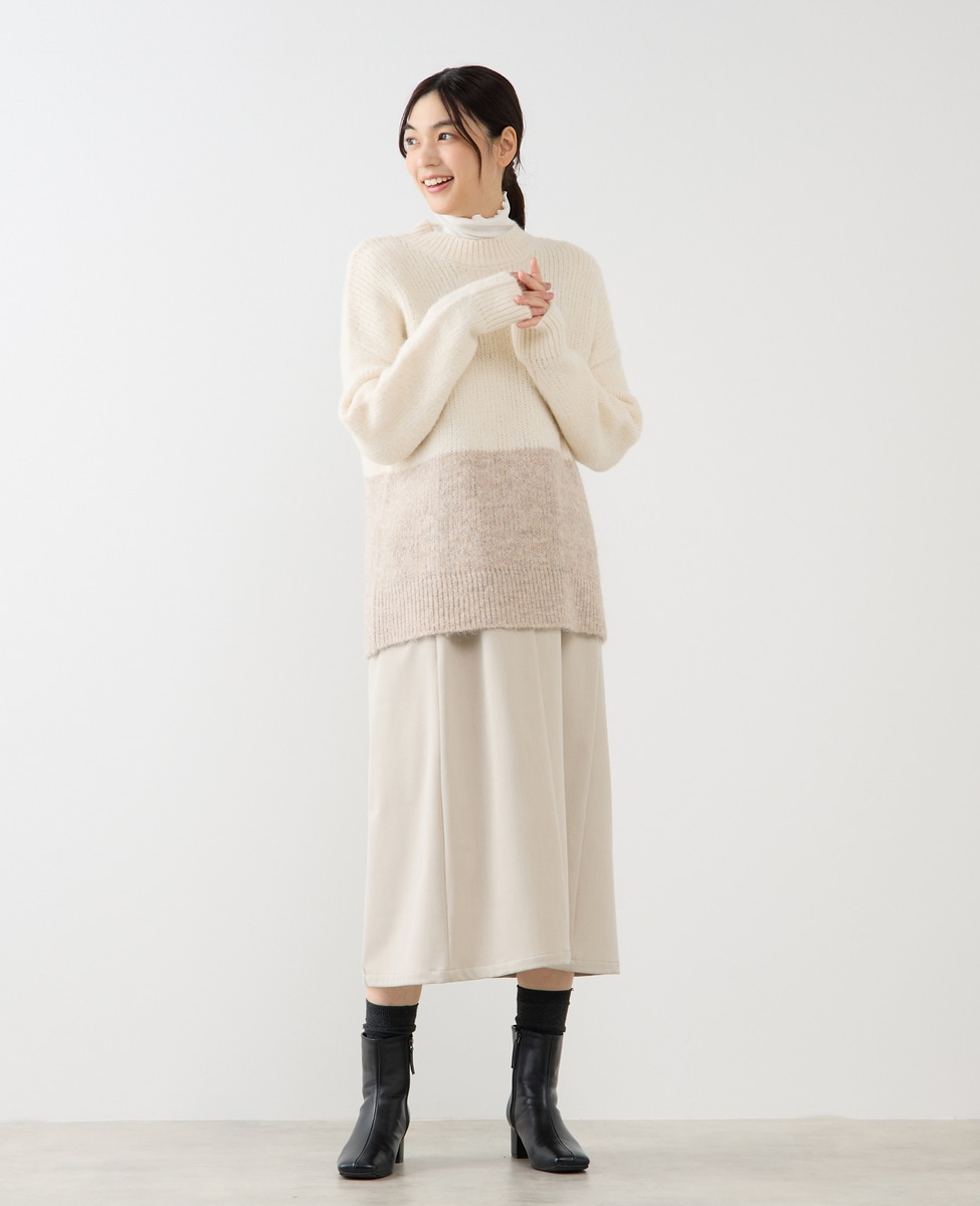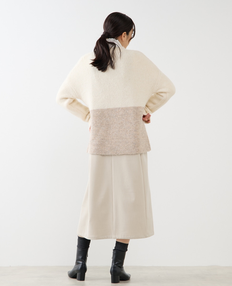 【ヘアリーミックスバイカラーモックネックプルオーバー】