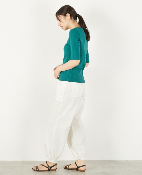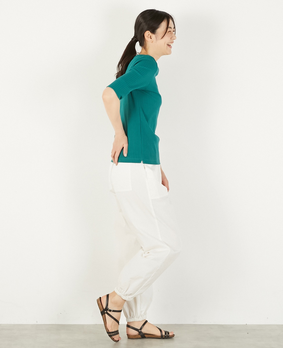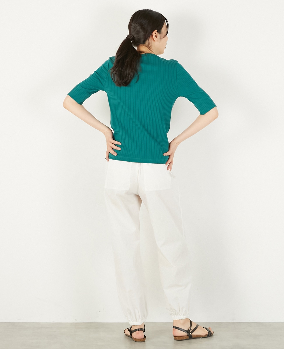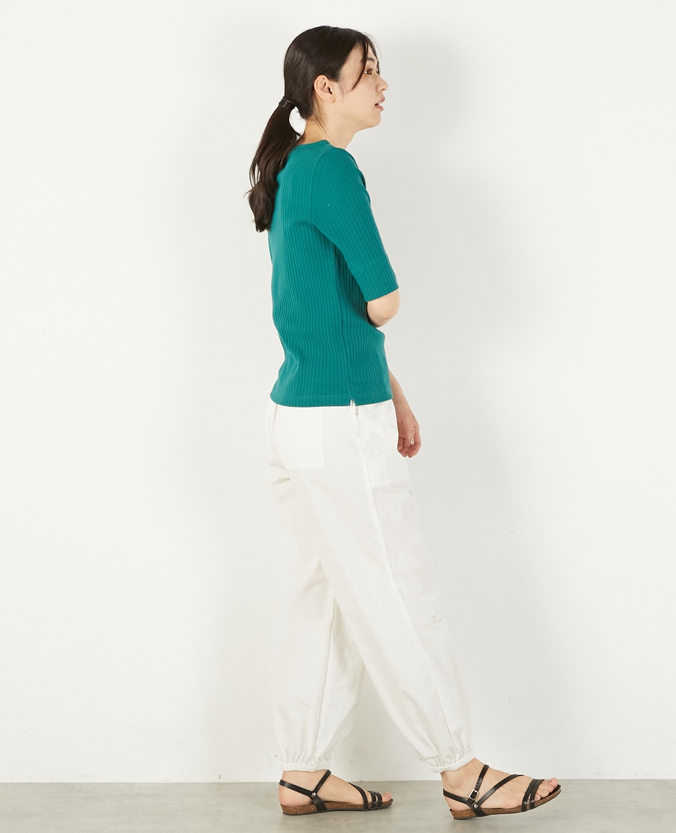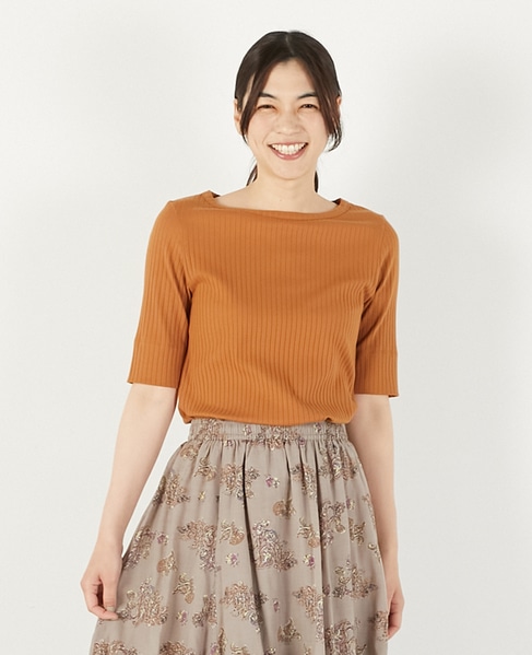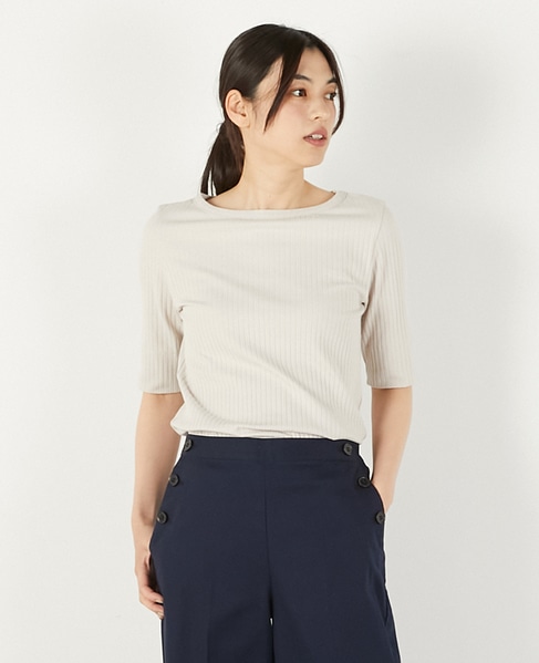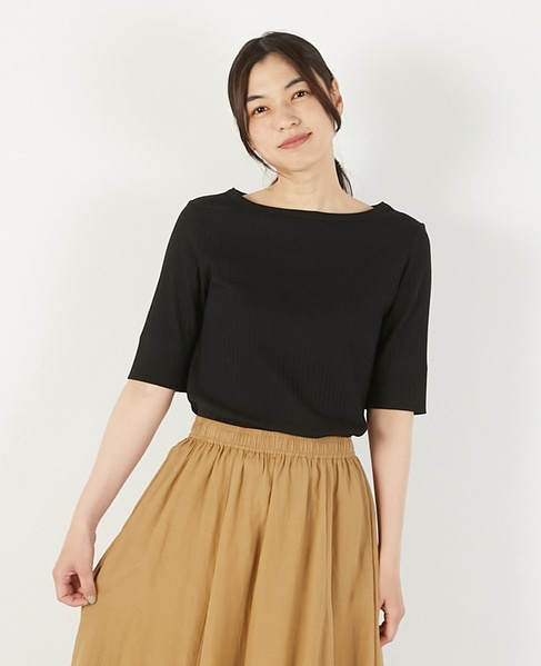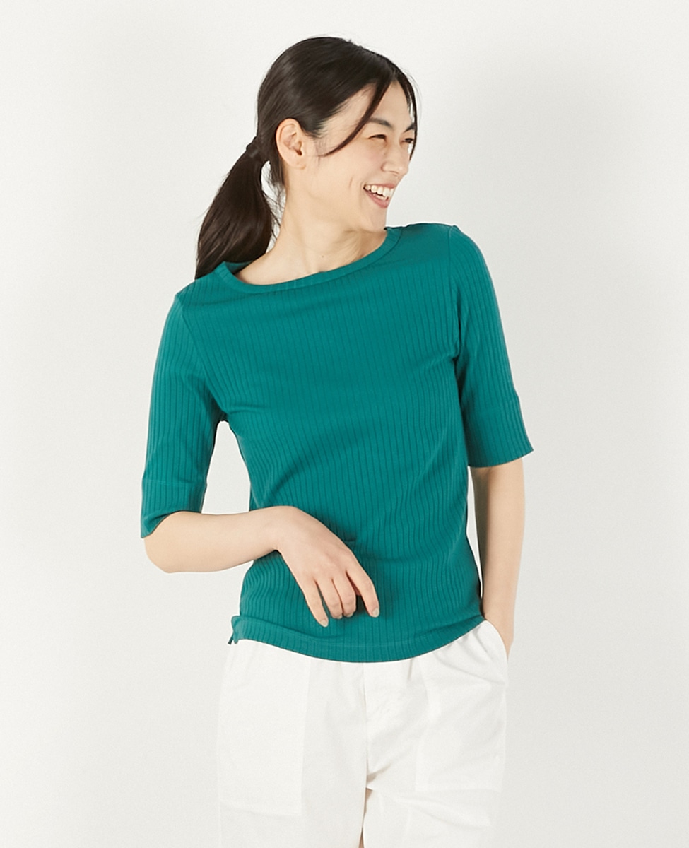 一枚着でヘビロテで使える5分袖プルオーバー。ボトムにインしてもしなくてもスタイリングし易い着丈も嬉しいポイント。小さいサイドスリット入りです。