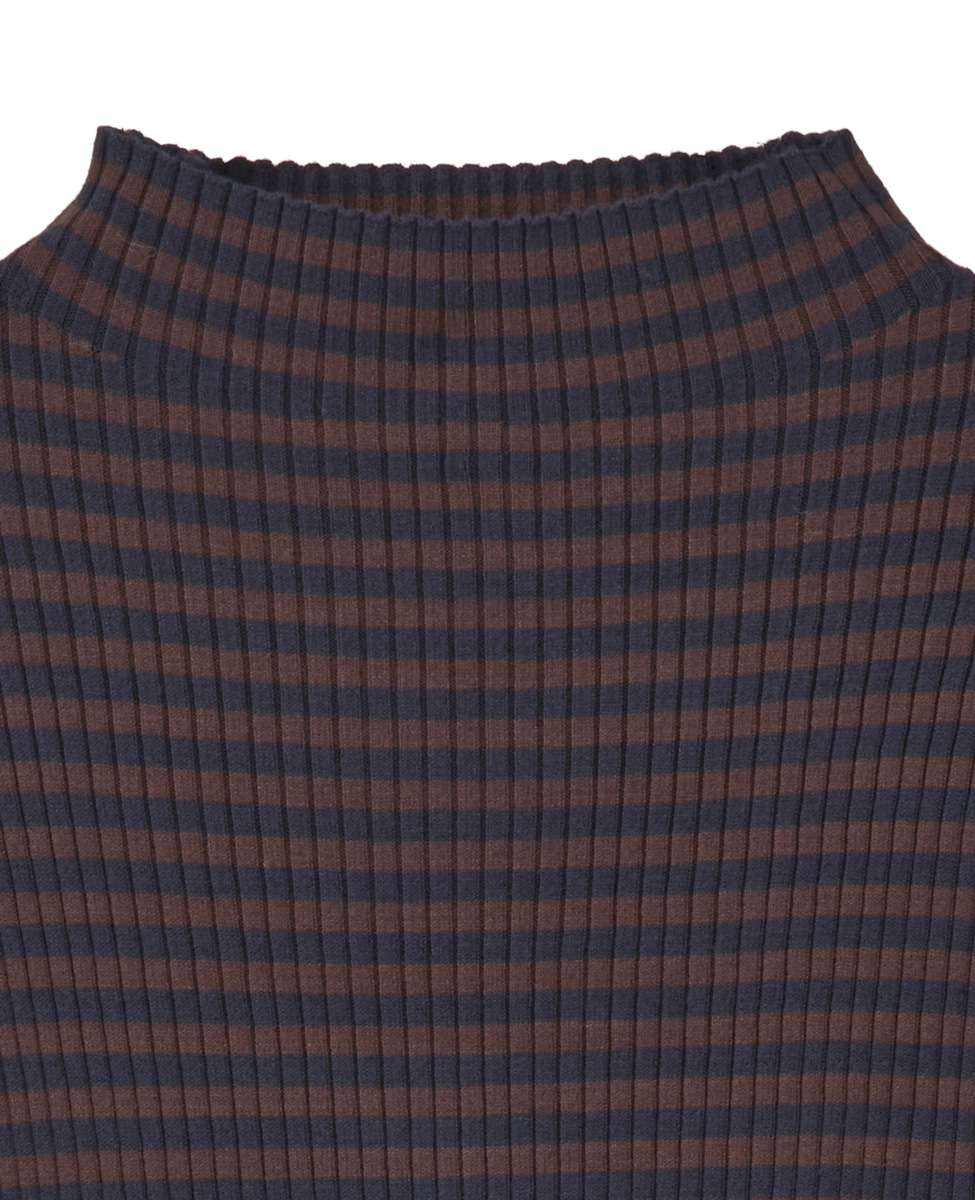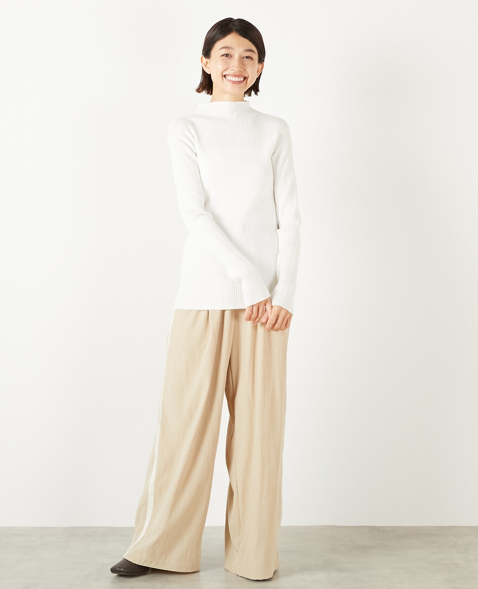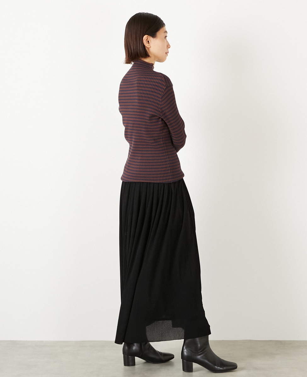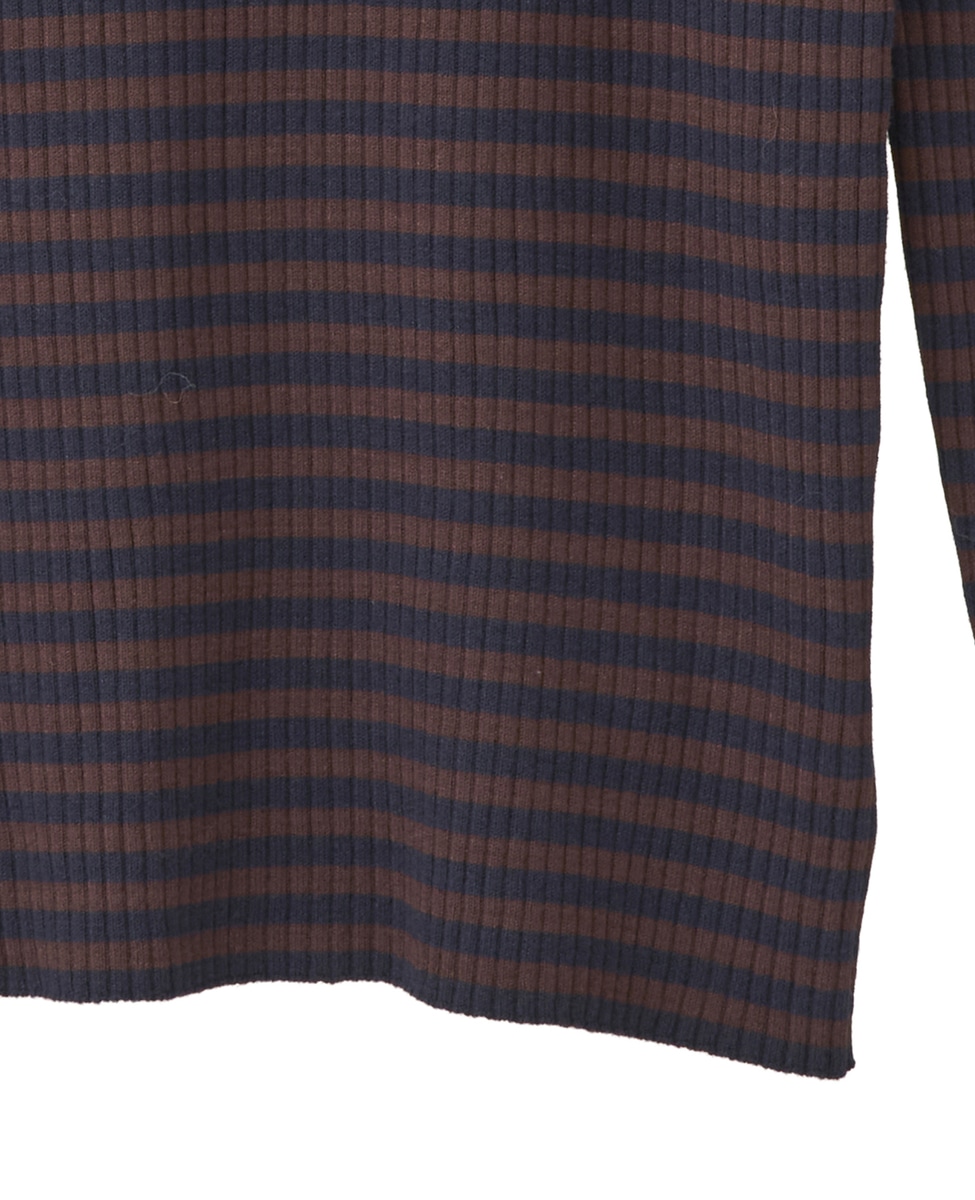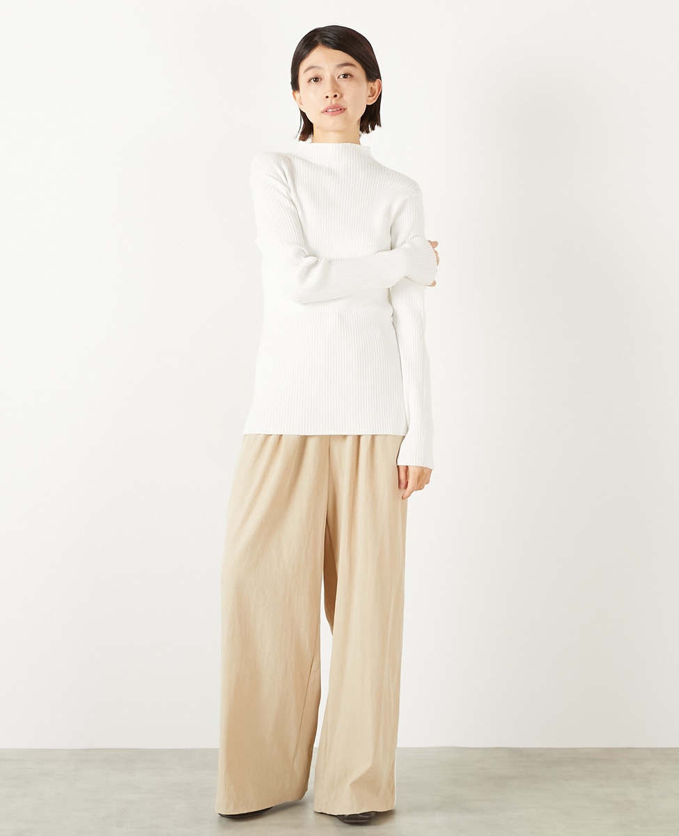 綺麗めにもカジュアルにも使える万能ワイドリブ。襟元が綺麗に見えるボトルネックプルオーバー。肌触りよくチクチク感のない編地、インナーとして重宝するニット。無地と単色プレーンなボーダーのアソートです。