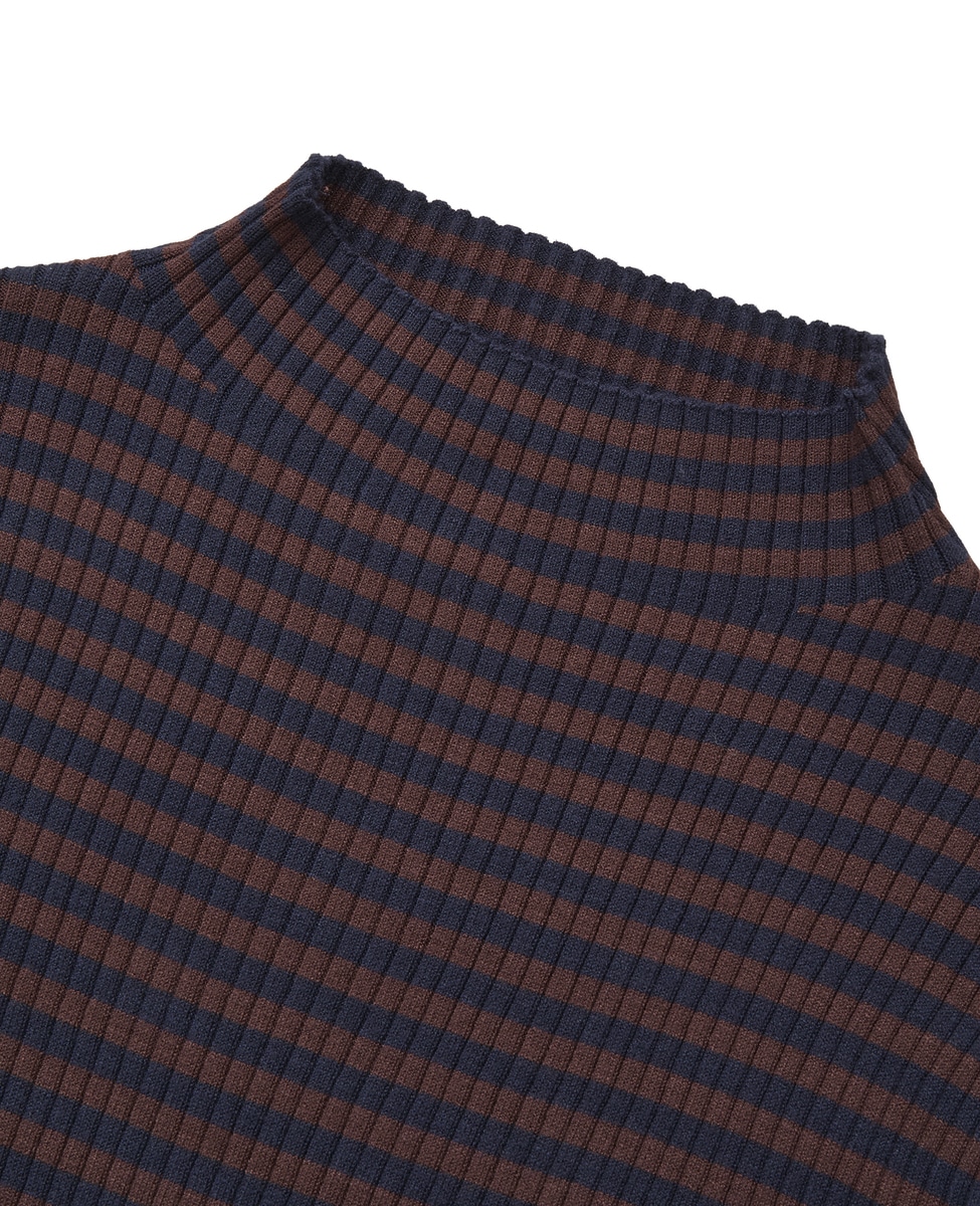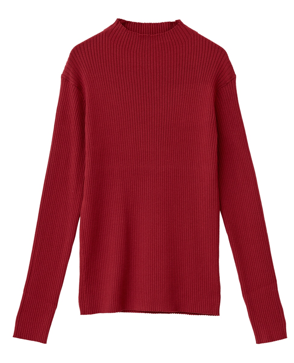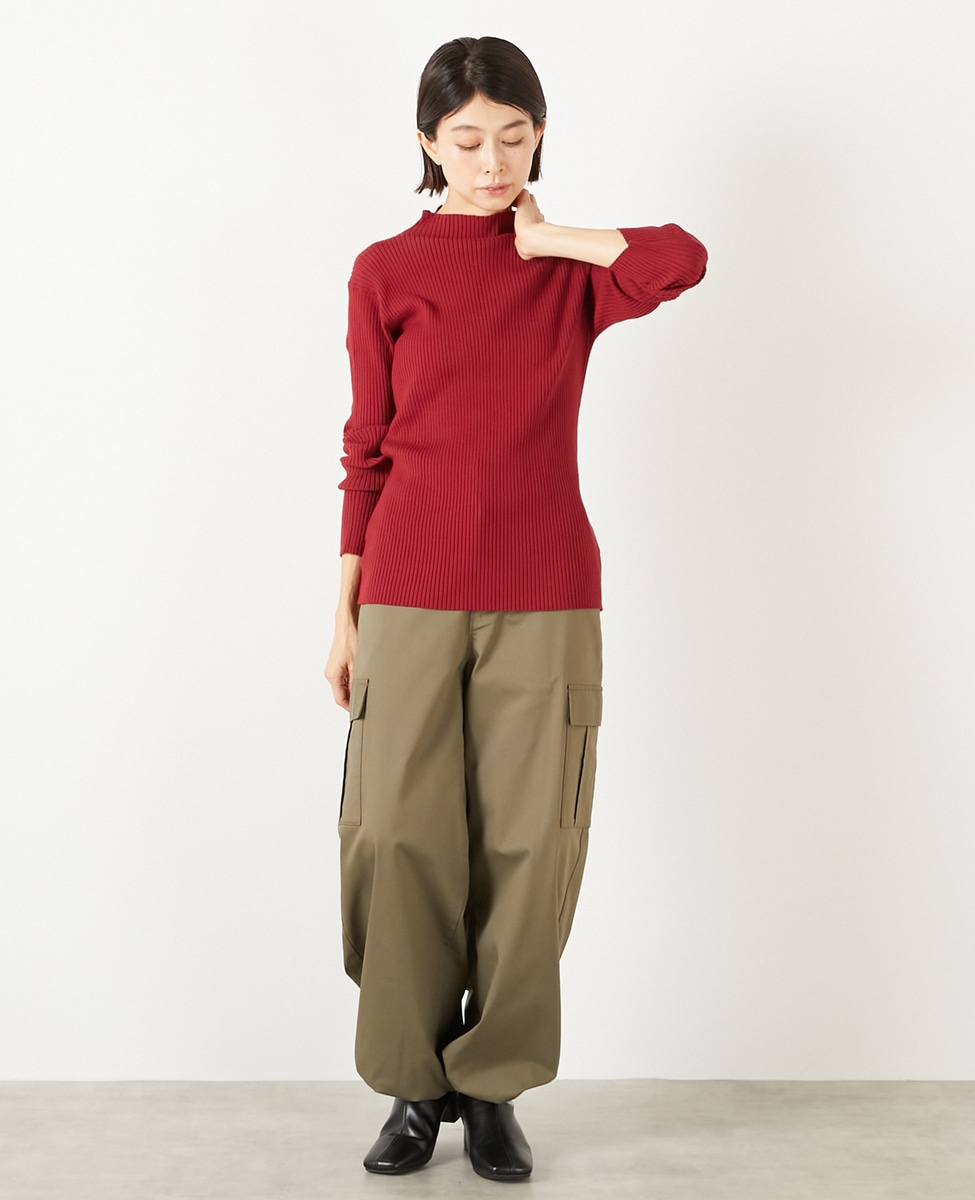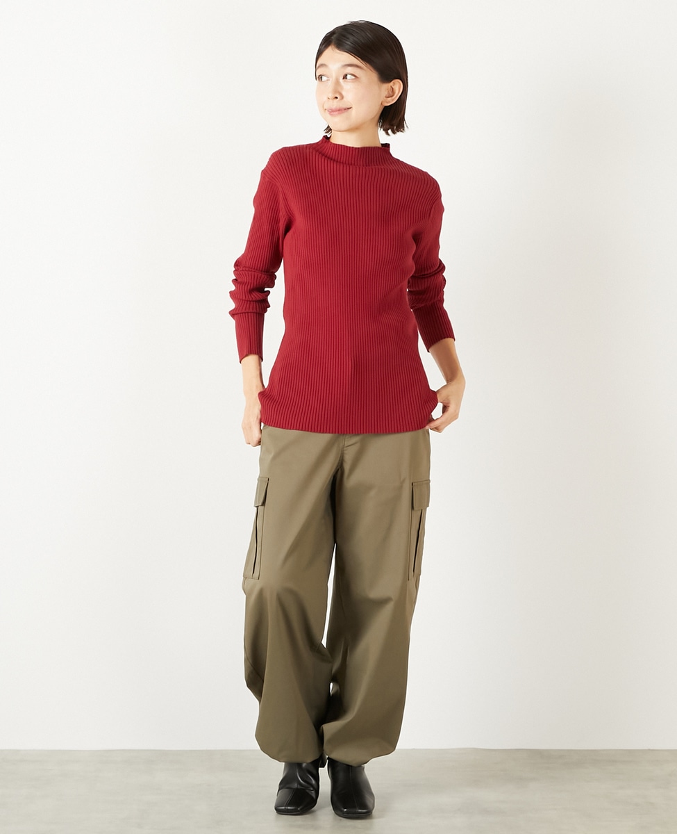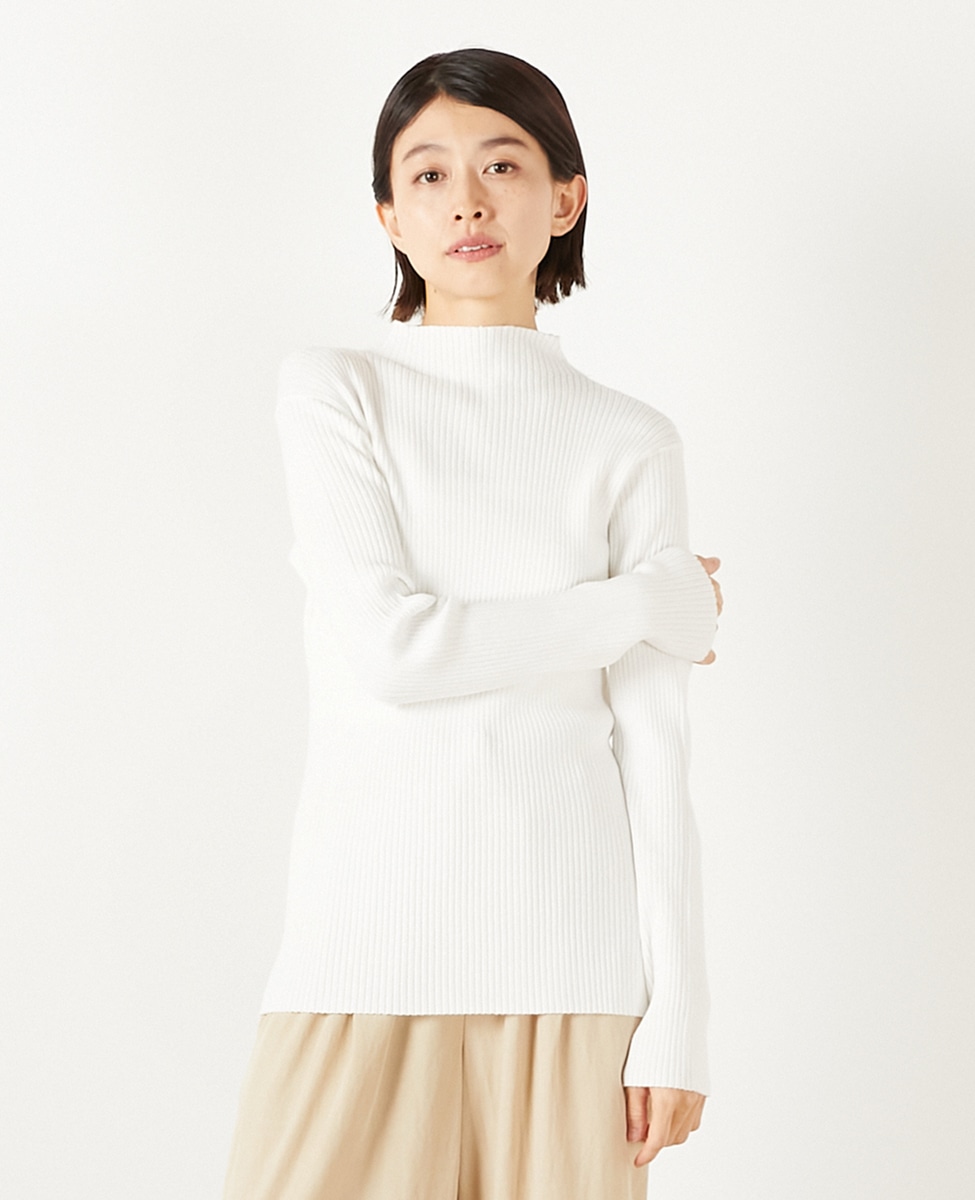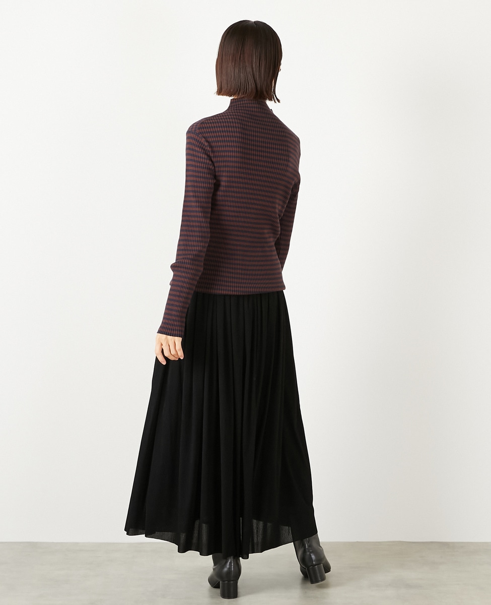 綺麗めにもカジュアルにも使える万能ワイドリブ。襟元が綺麗に見えるボトルネックプルオーバー。肌触りよくチクチク感のない編地、インナーとして重宝するニット。無地と単色プレーンなボーダーのアソートです。