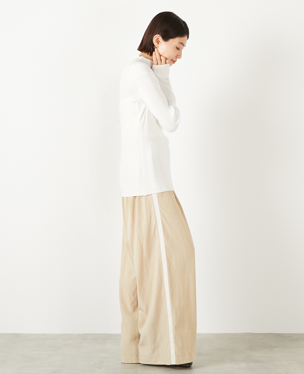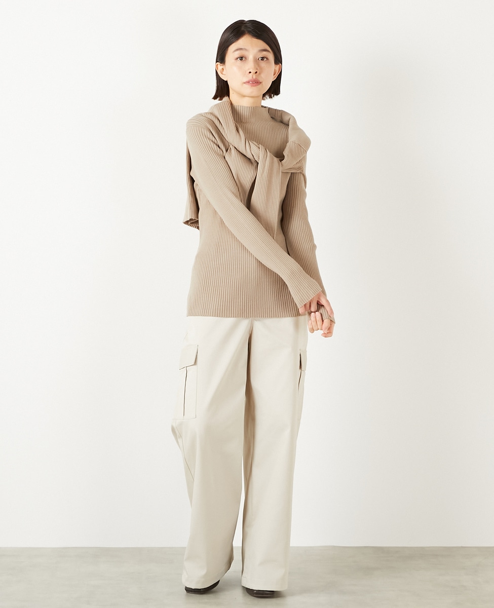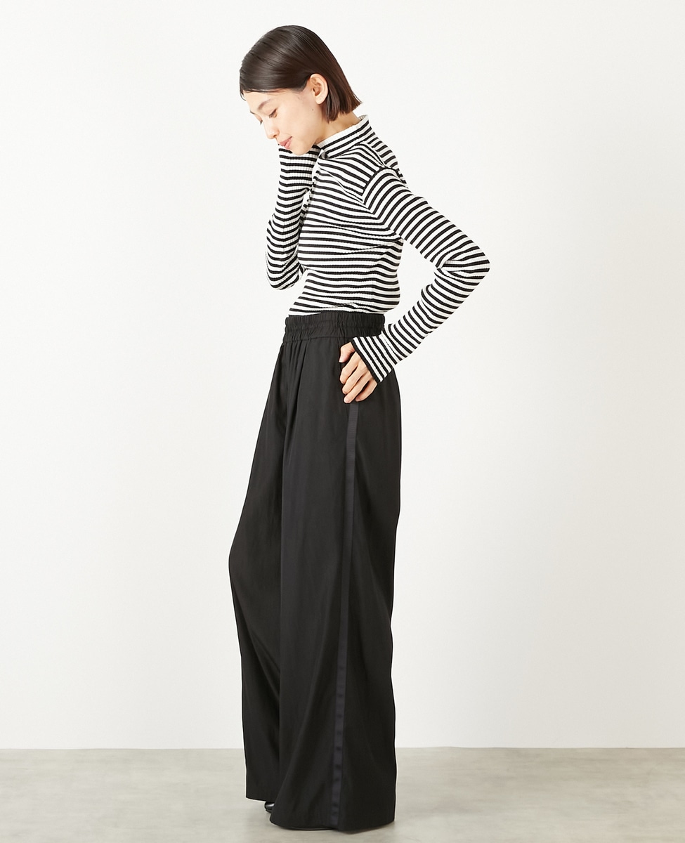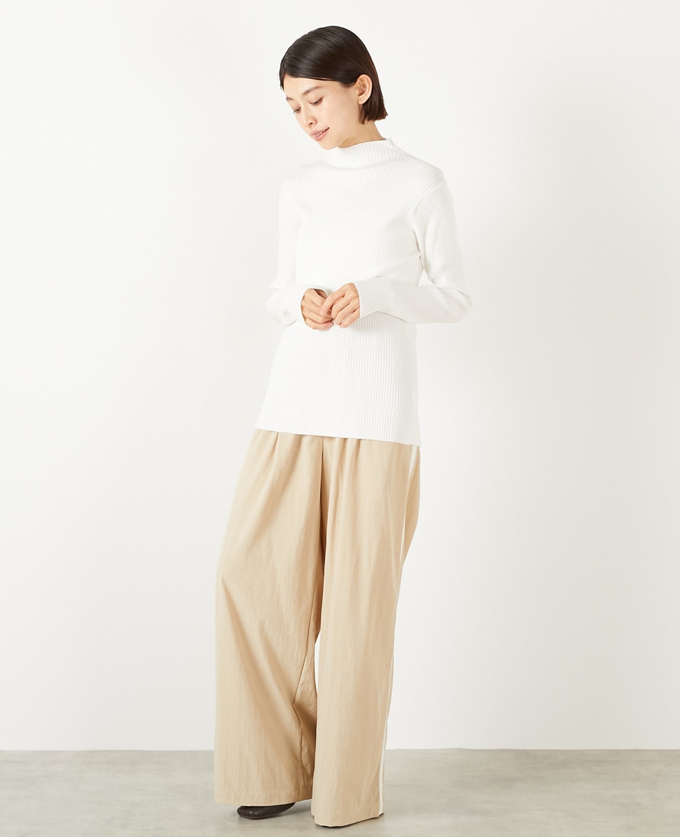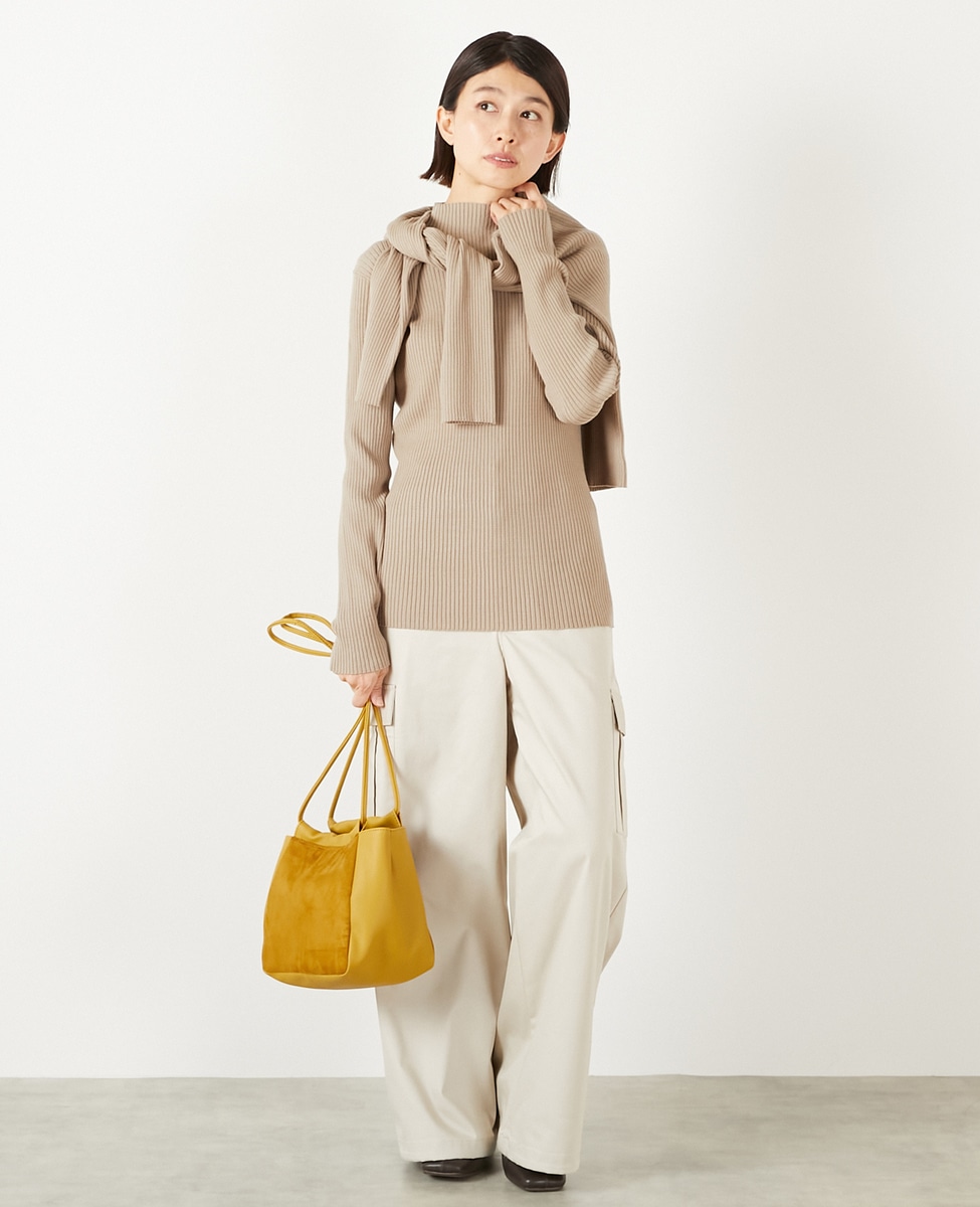 綺麗めにもカジュアルにも使える万能ワイドリブ。襟元が綺麗に見えるボトルネックプルオーバー。肌触りよくチクチク感のない編地、インナーとして重宝するニット。無地と単色プレーンなボーダーのアソートです。