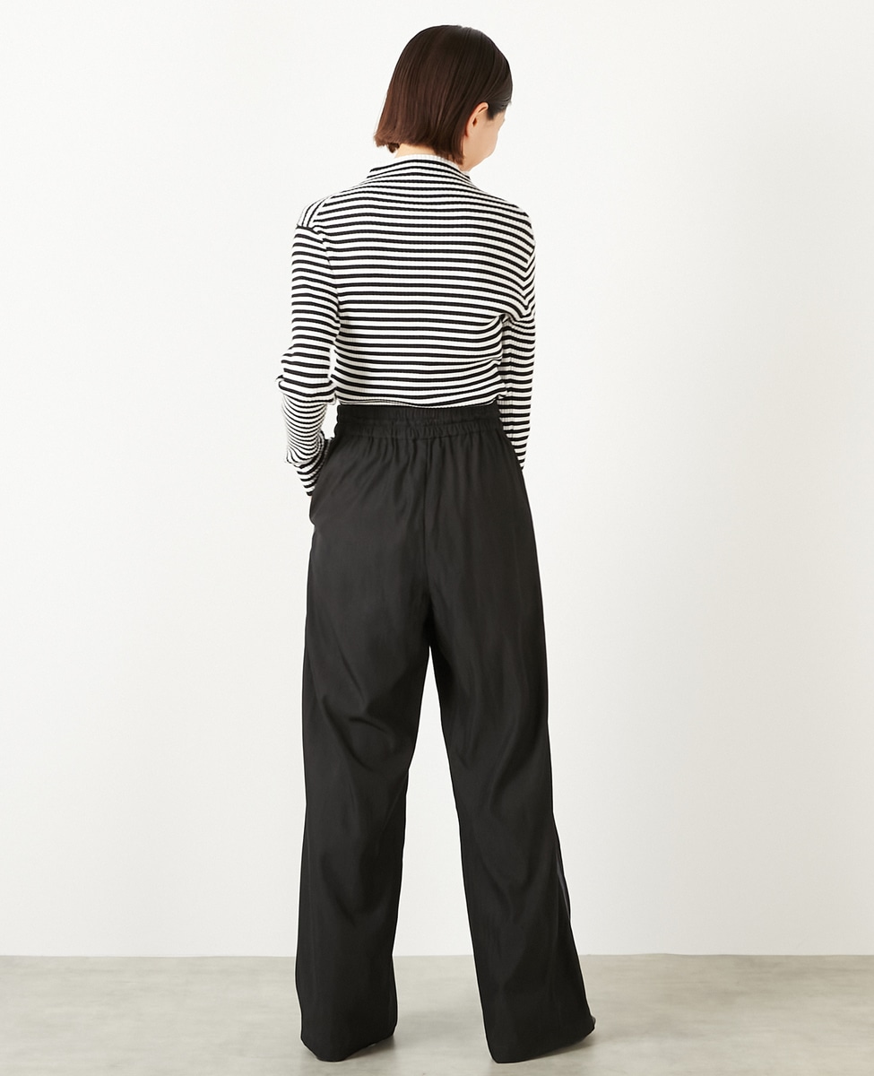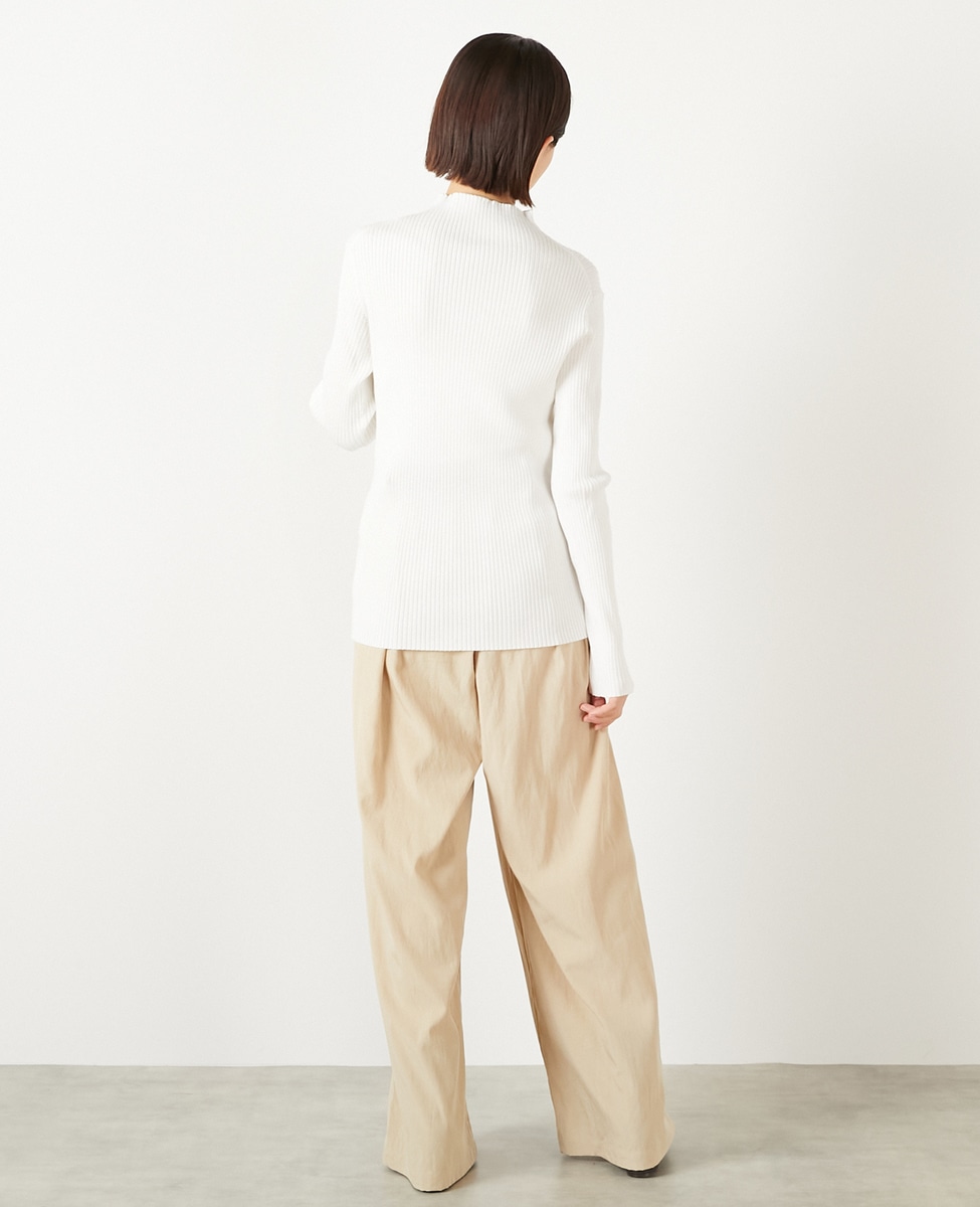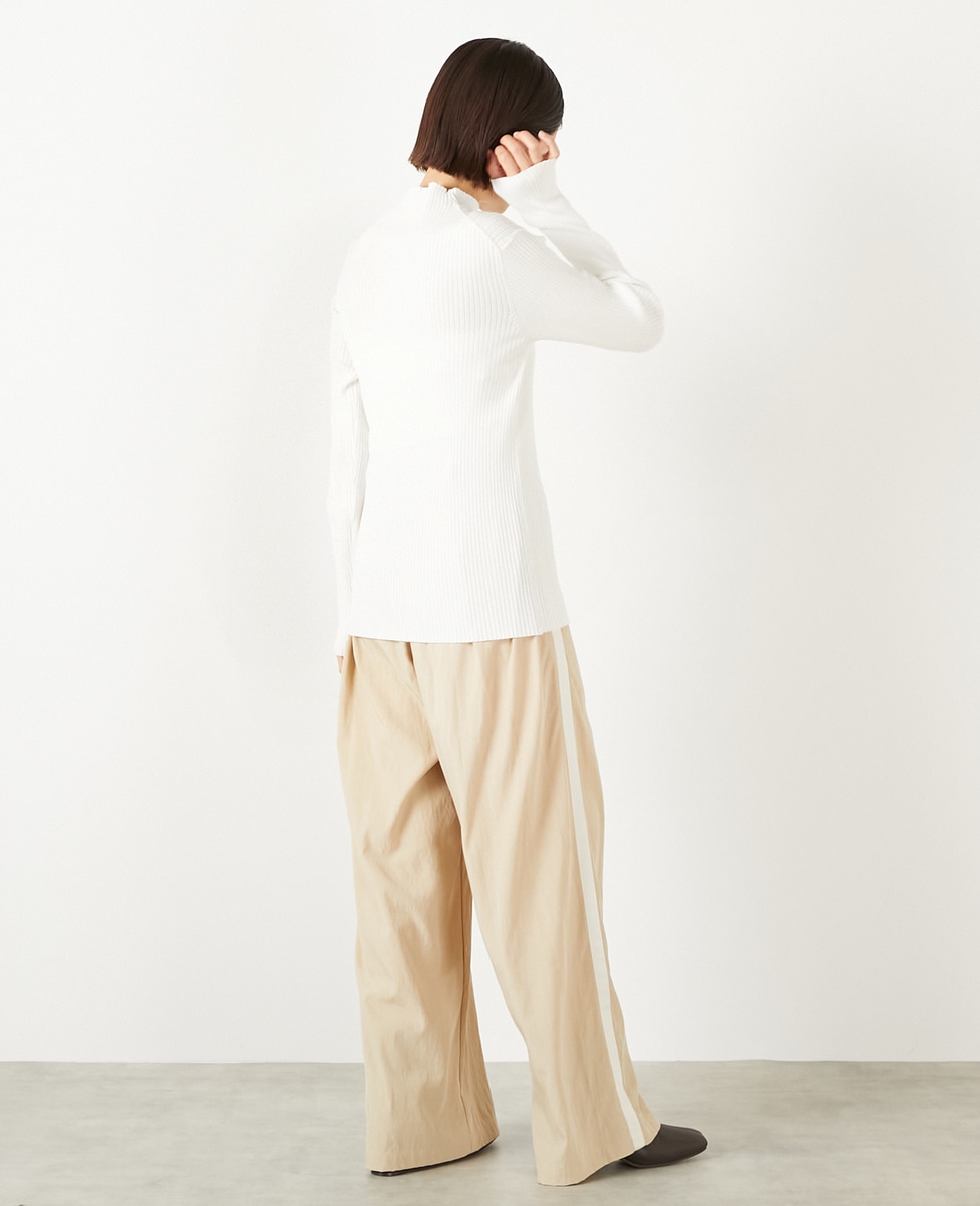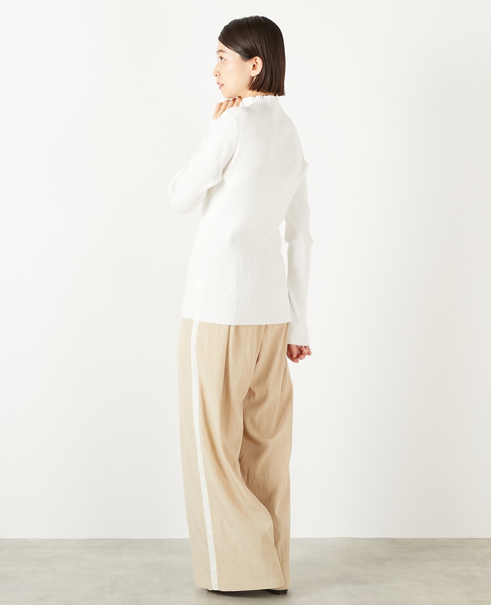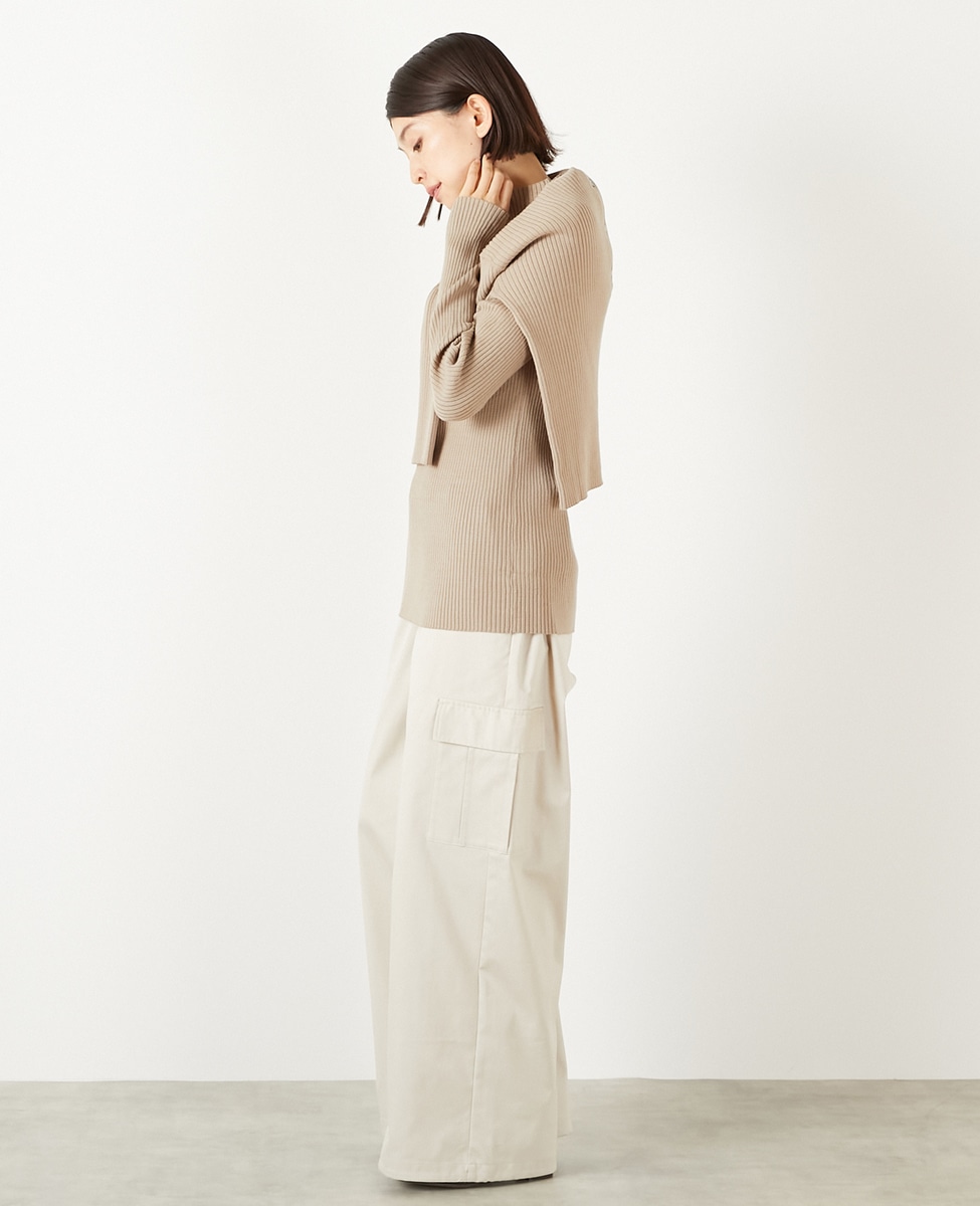 綺麗めにもカジュアルにも使える万能ワイドリブ。襟元が綺麗に見えるボトルネックプルオーバー。肌触りよくチクチク感のない編地、インナーとして重宝するニット。無地と単色プレーンなボーダーのアソートです。
