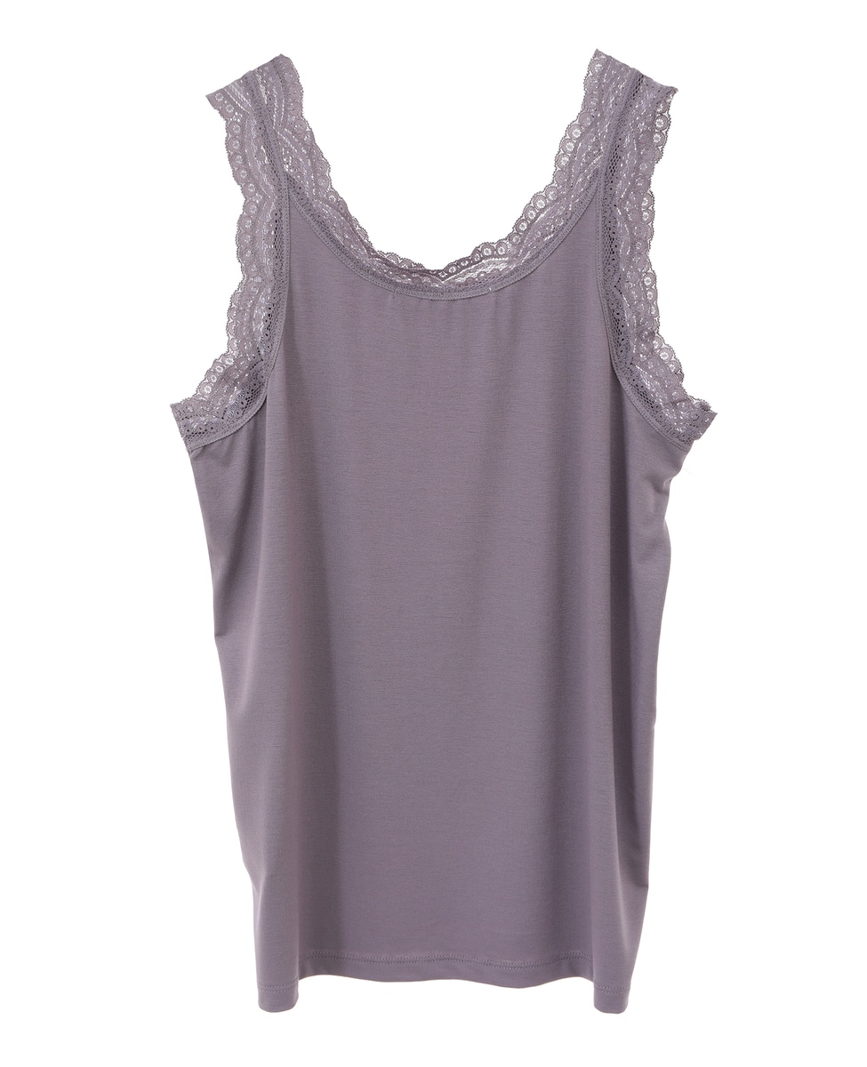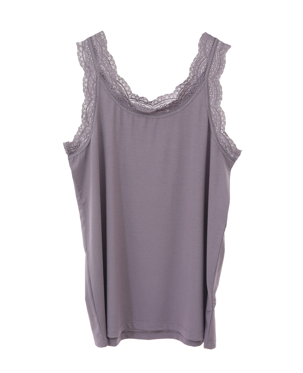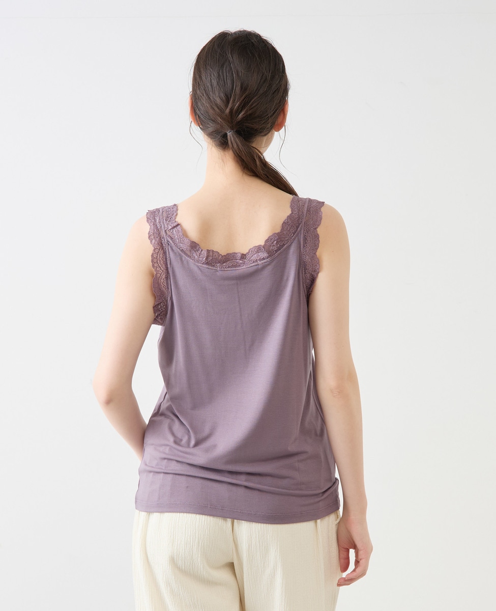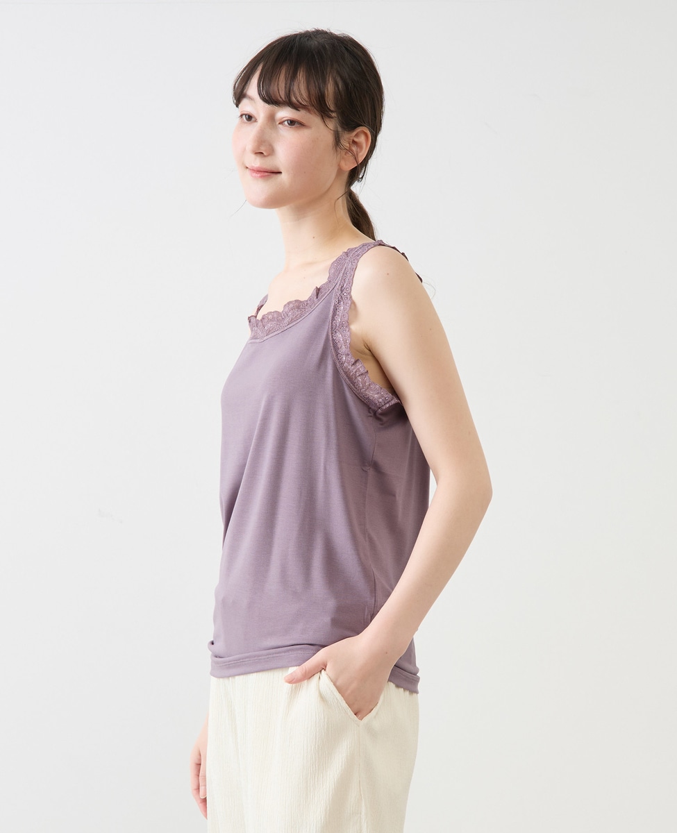 繊細で優しいレース使いなのでインナーとして着用した時に、クッキリとラインで透けることなく、ぼんやりと馴染むので子供っぽい見え方にならず大人の方が安心して着用頂けるインナーです。合わせ易いカラー展開なので色違いで揃えても◎