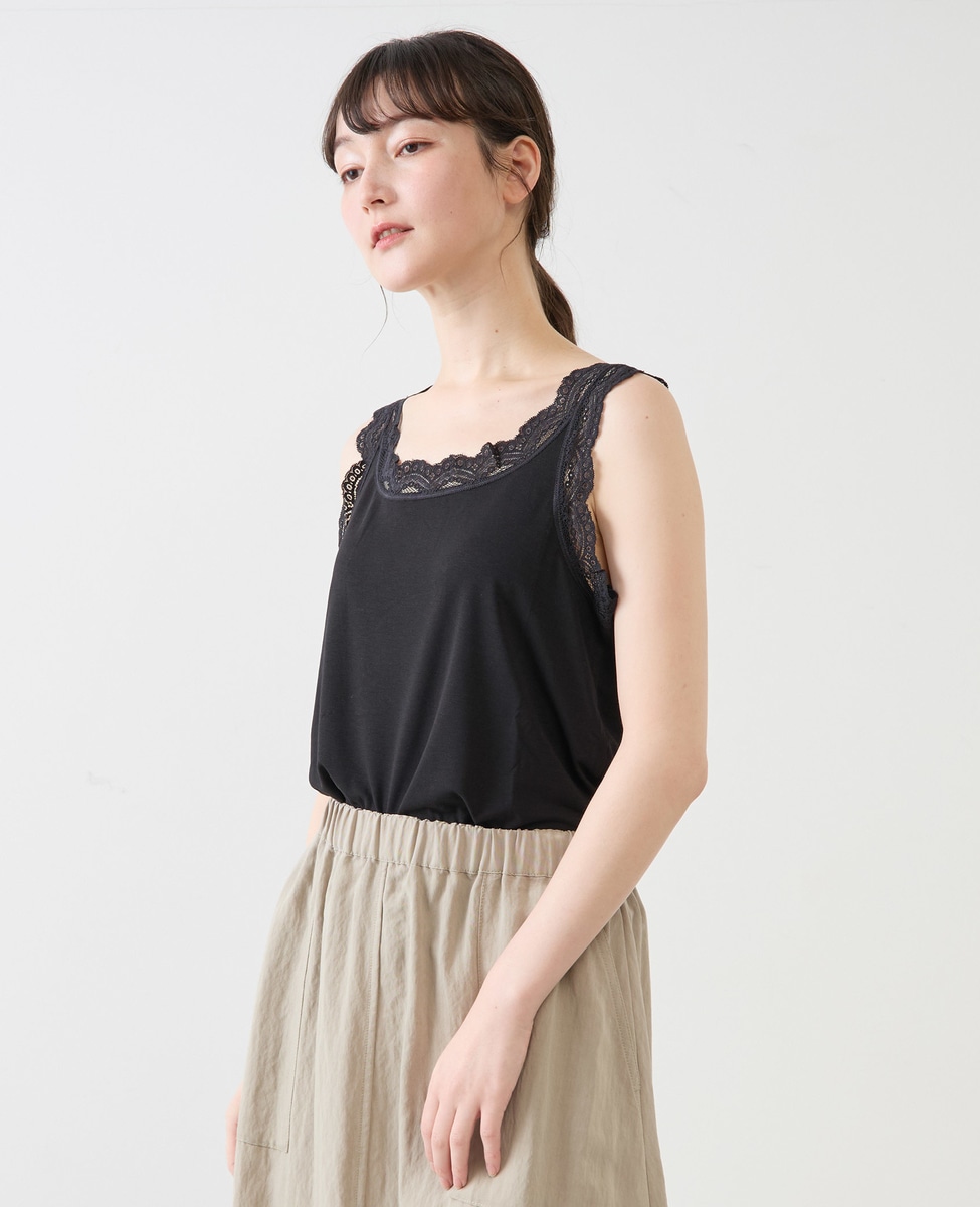 素材 本体:レーヨン65% ポリエステル30% ポリウレタン5% レース部分:ナイロン88% ポリウレタン12%