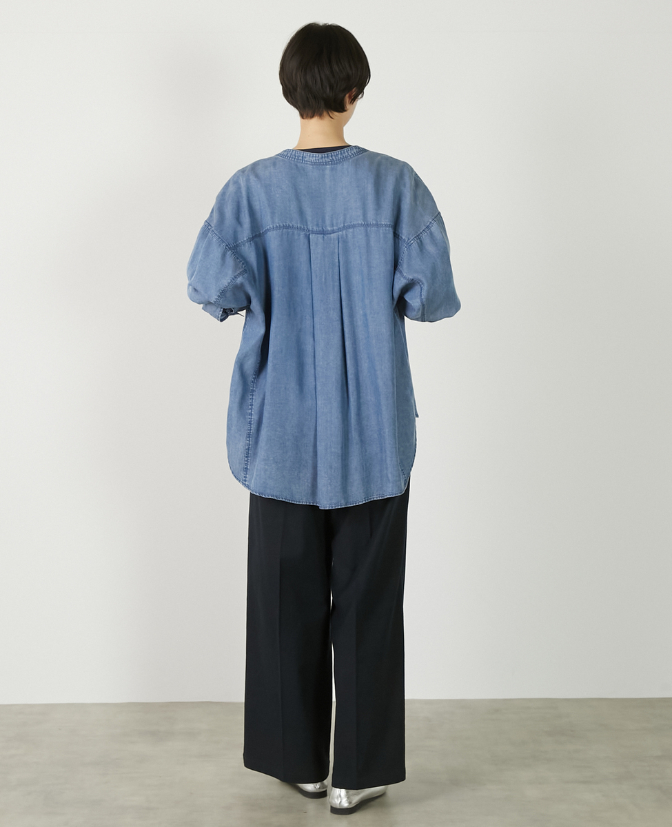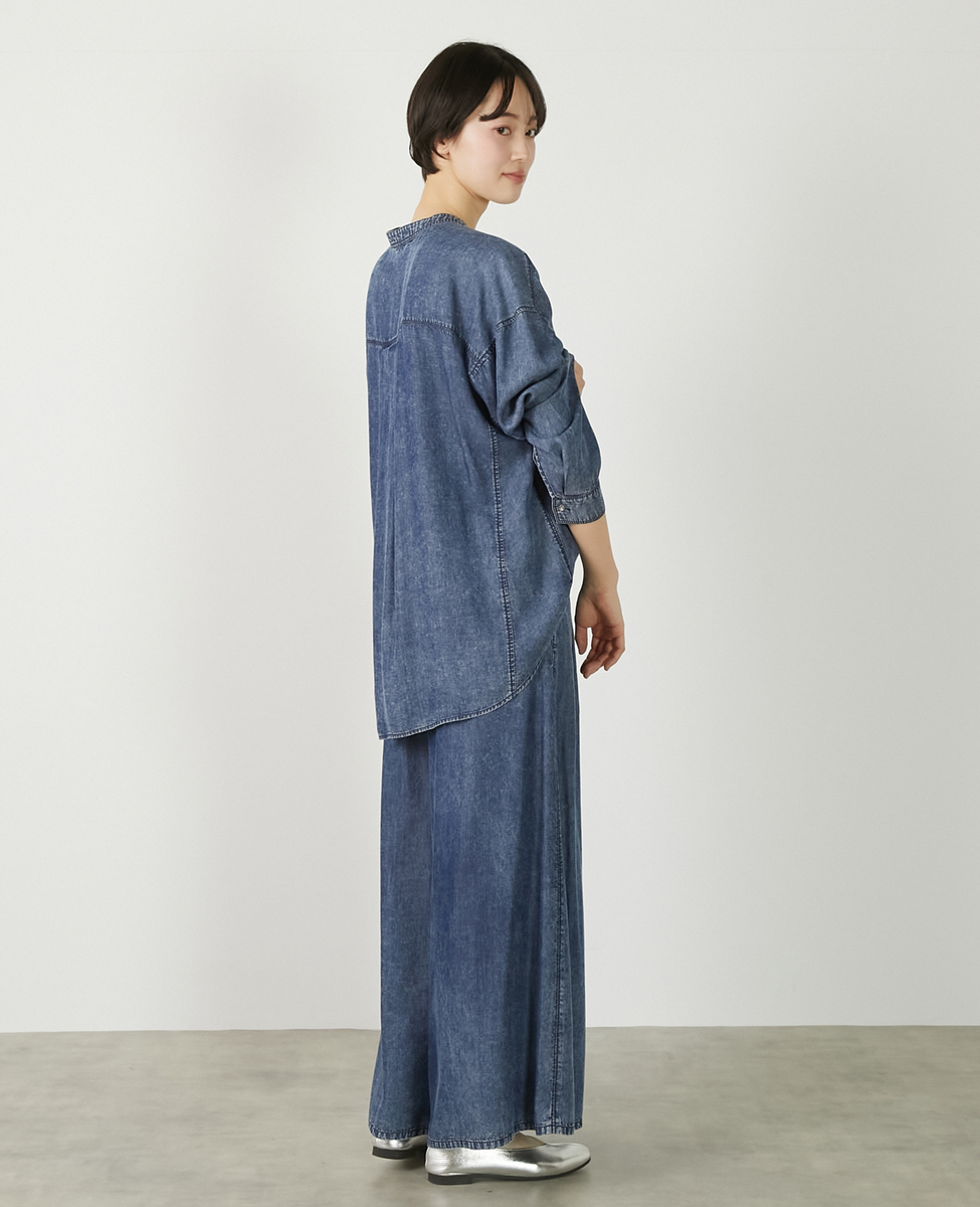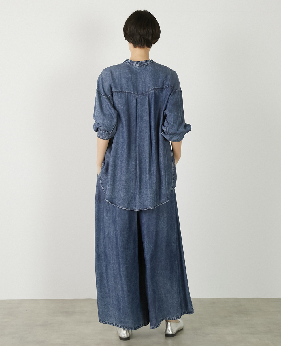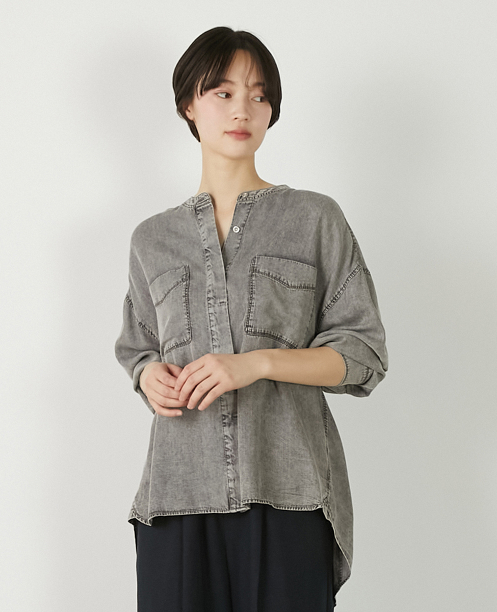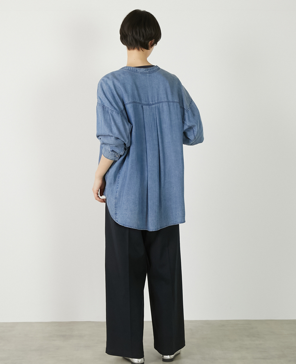 【パウダーデニムバンドカラーシャツ】