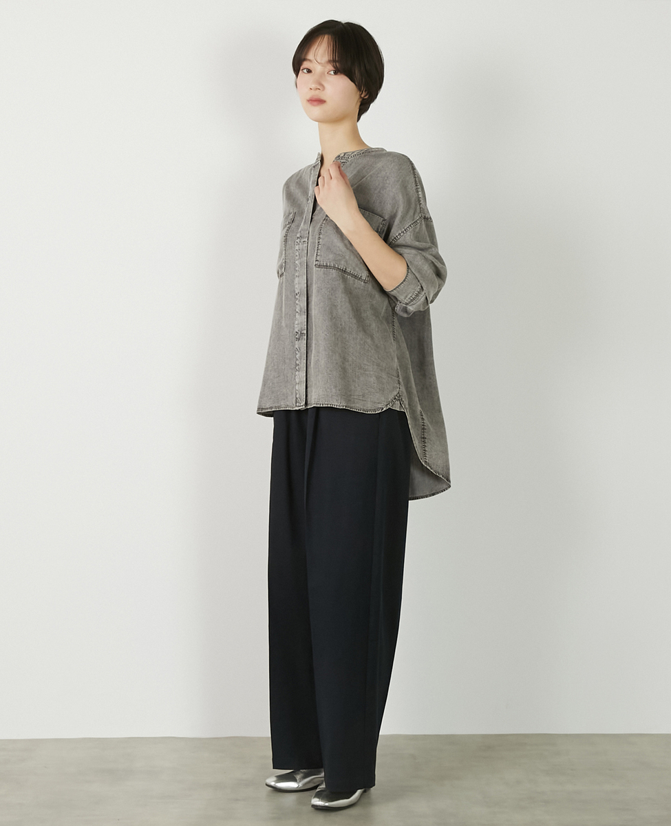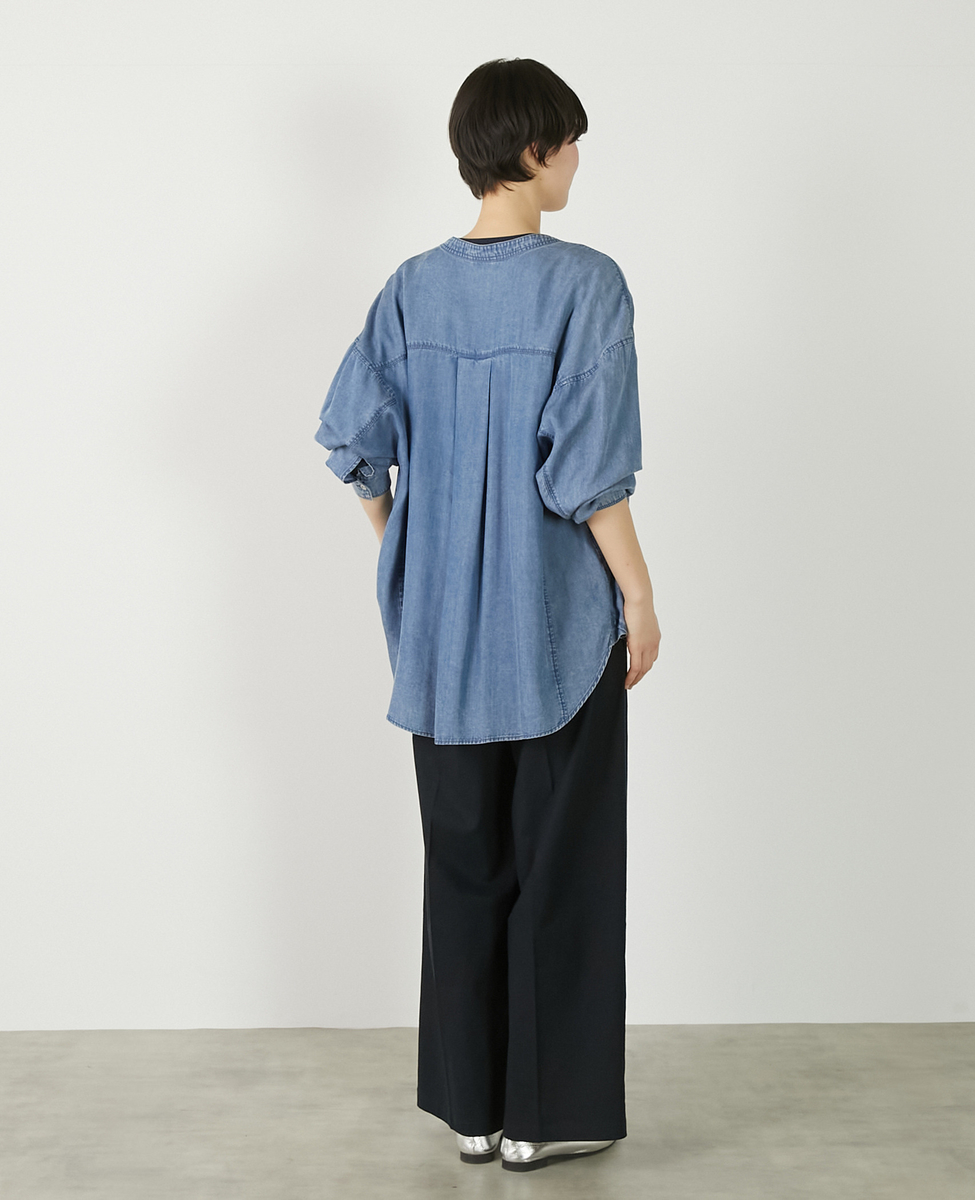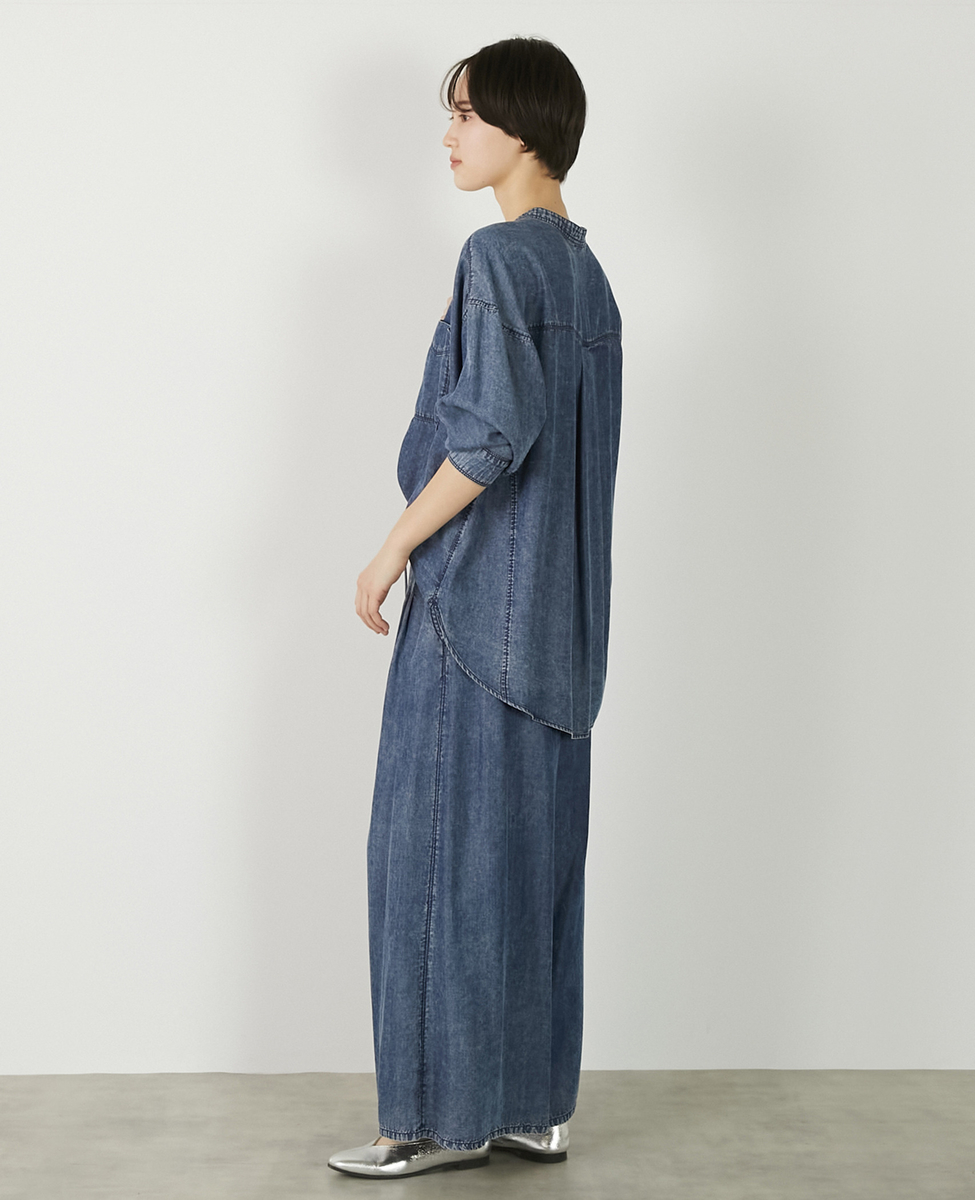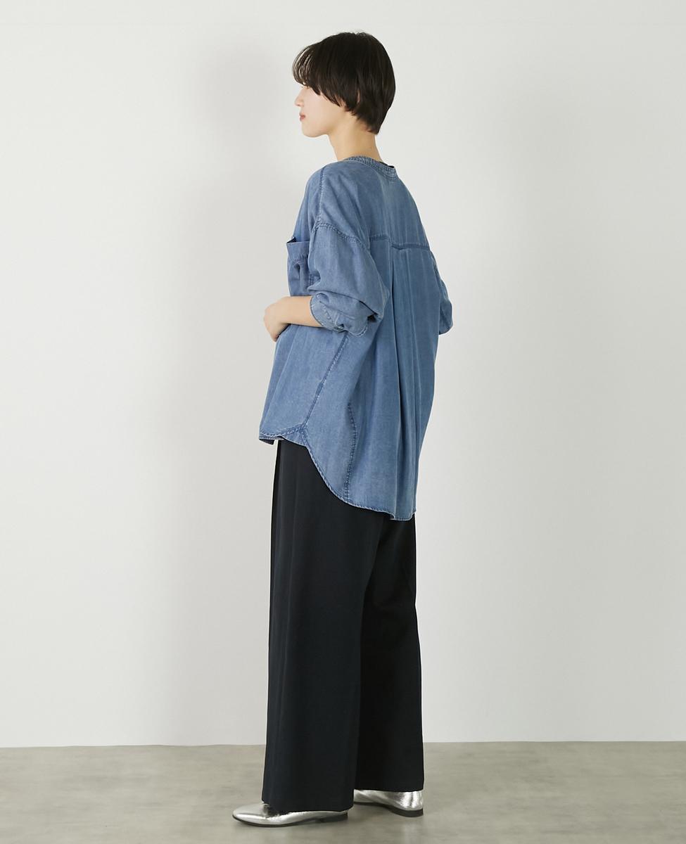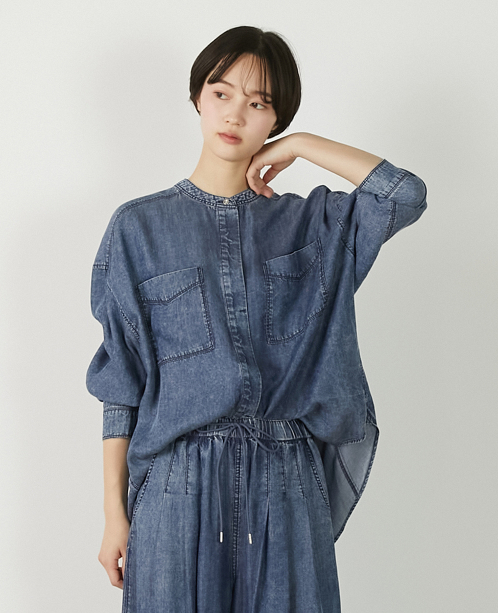 【パウダーデニムバンドカラーシャツ】