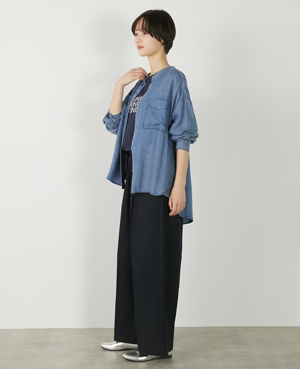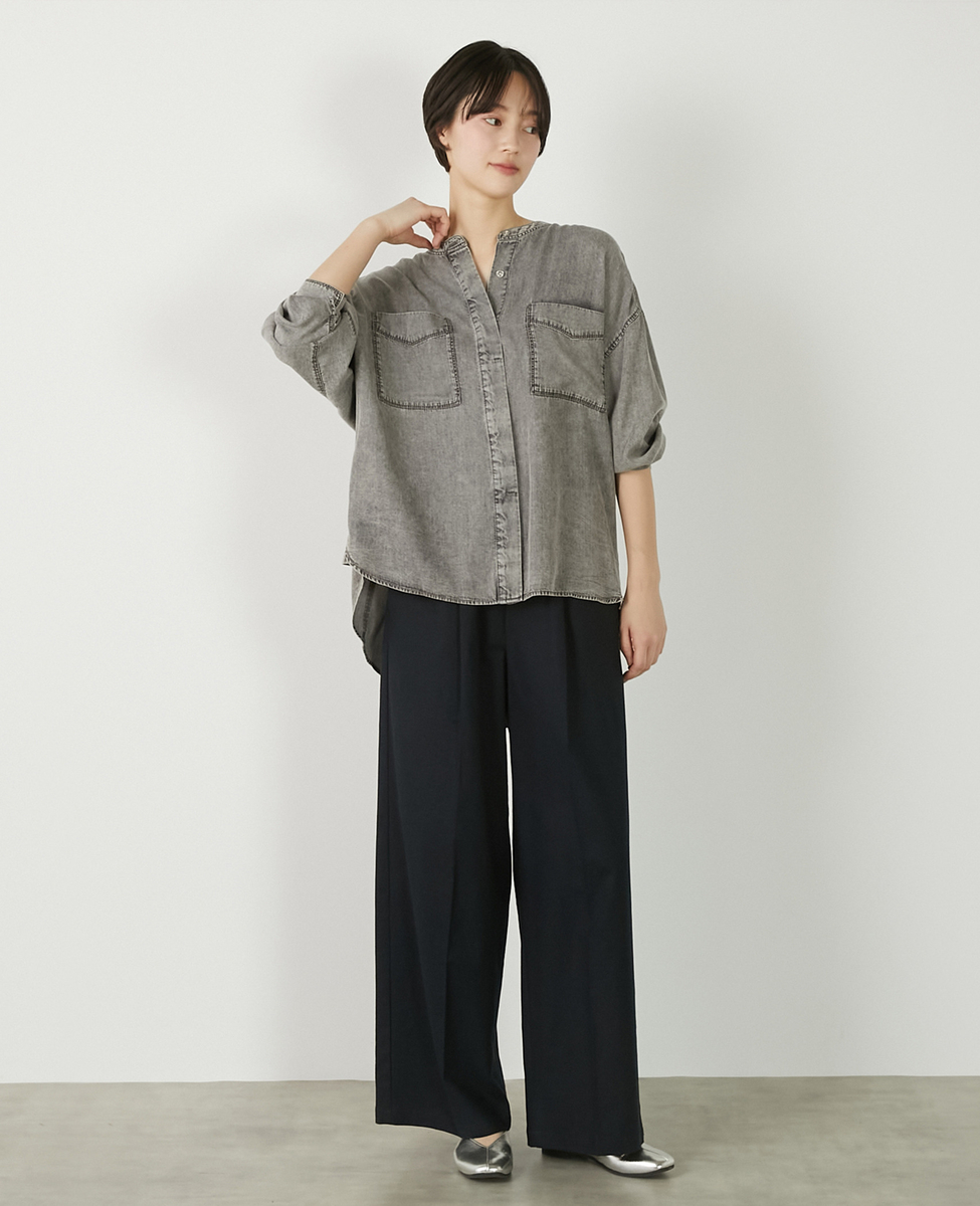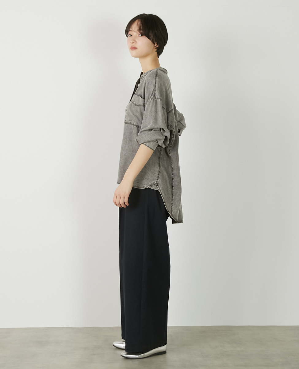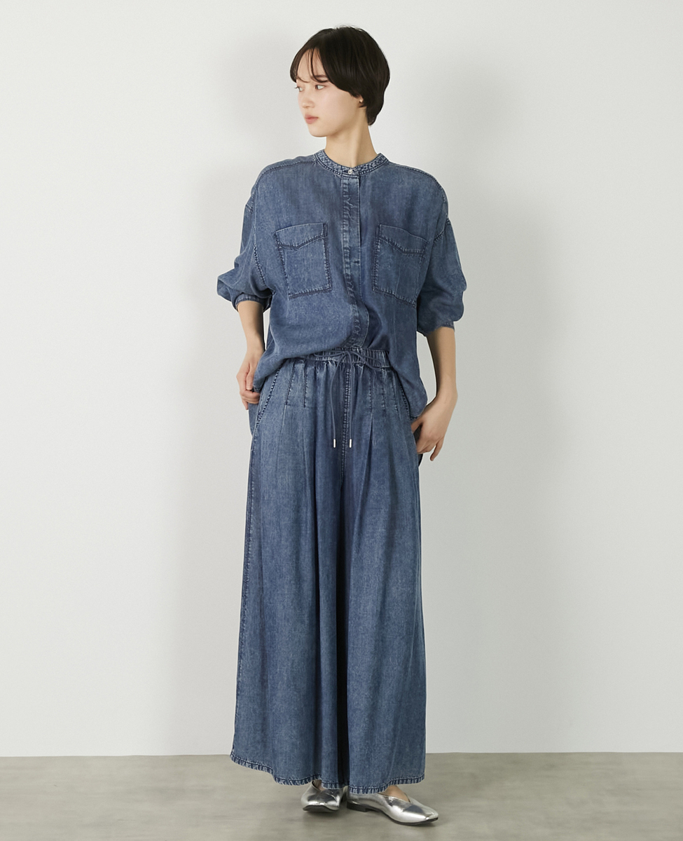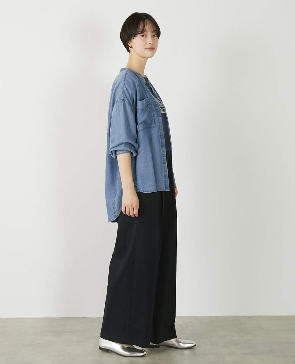 【パウダーデニムバンドカラーシャツ】