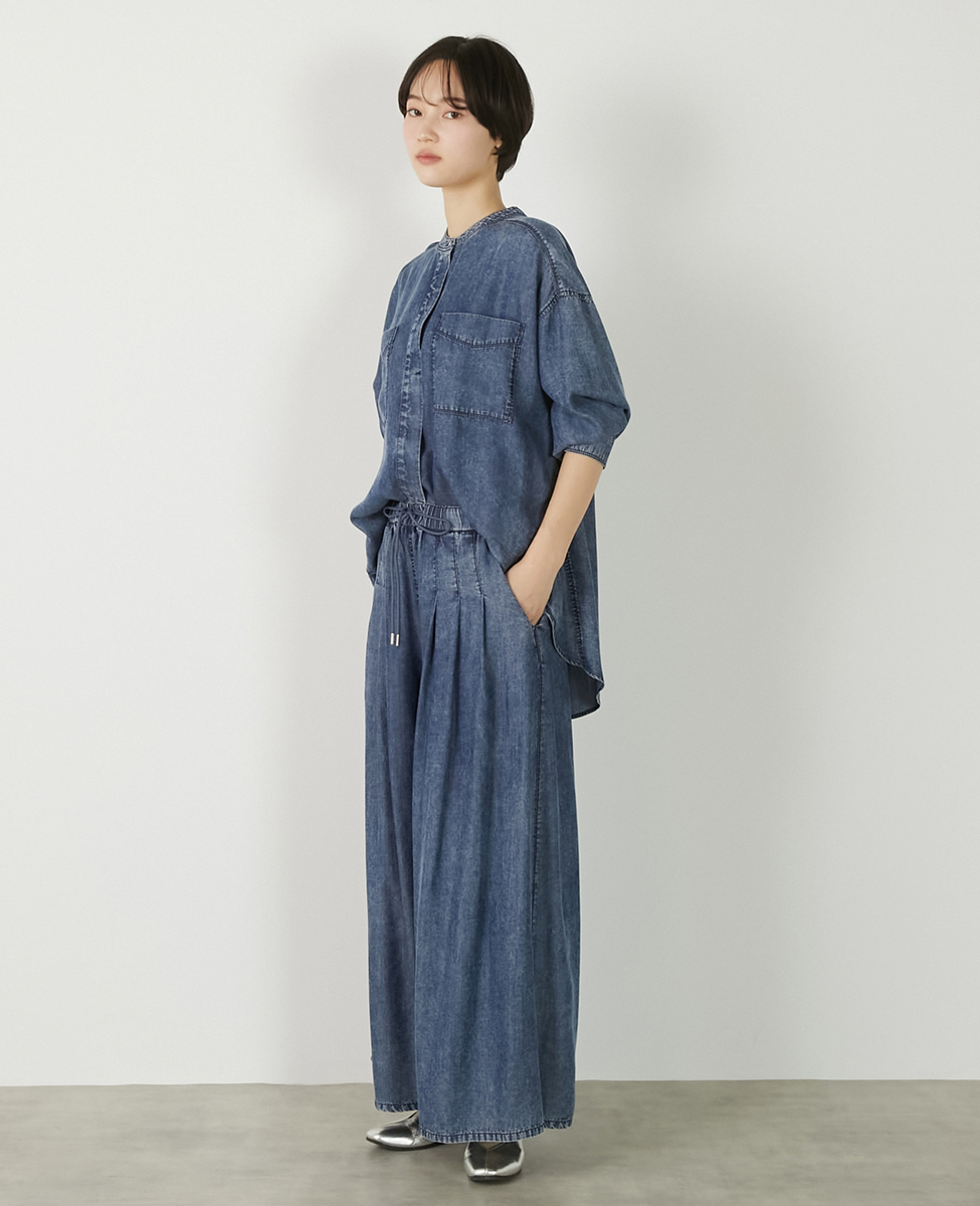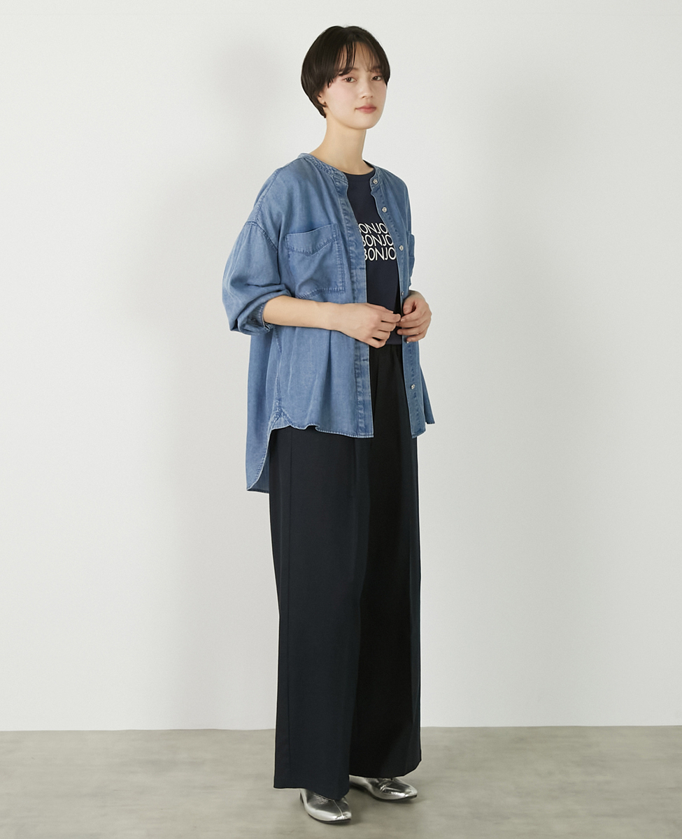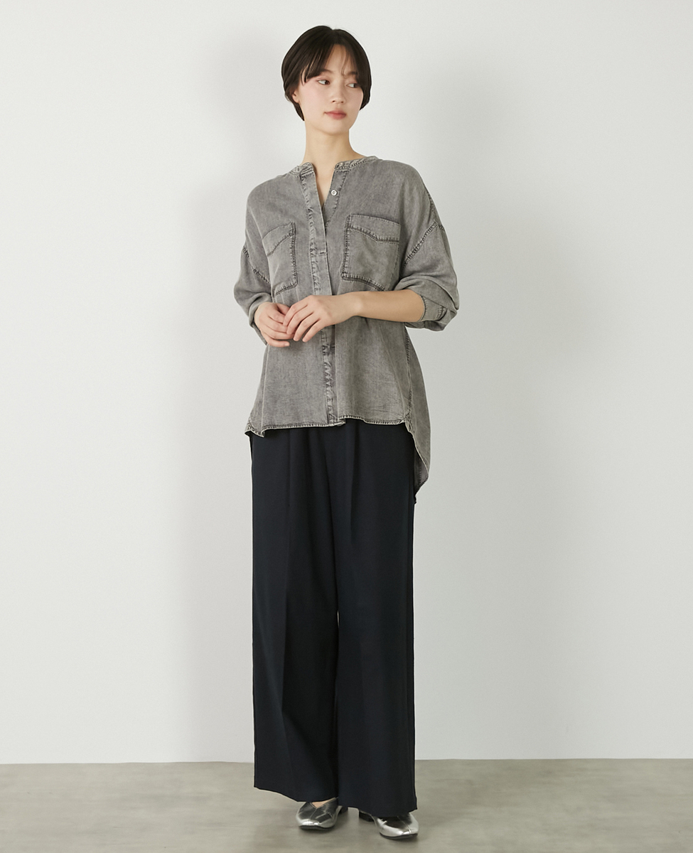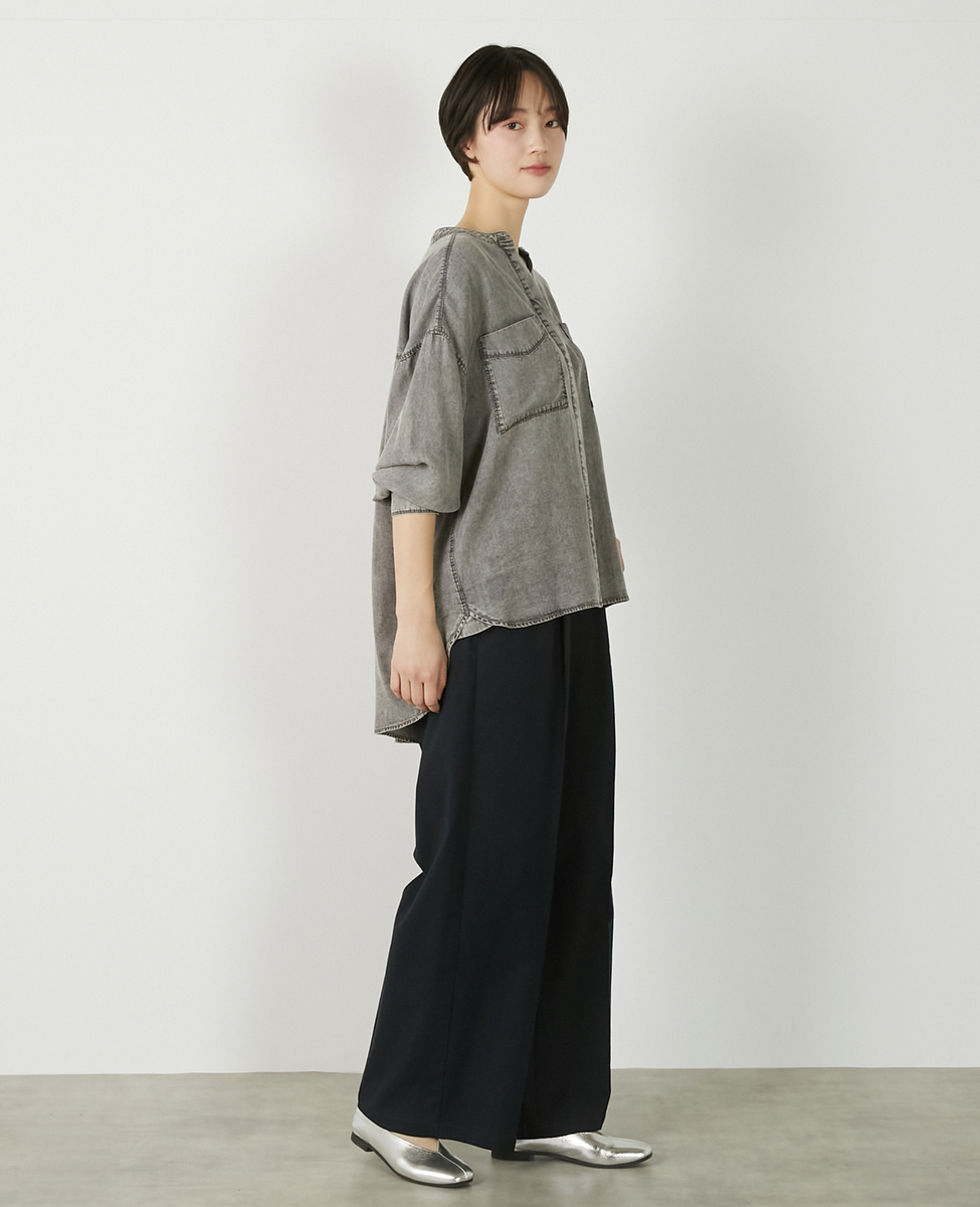 【パウダーデニムバンドカラーシャツ】