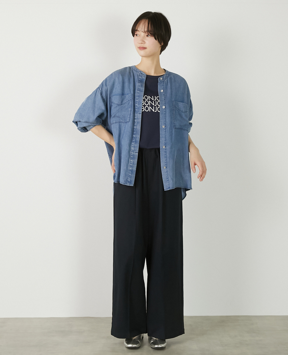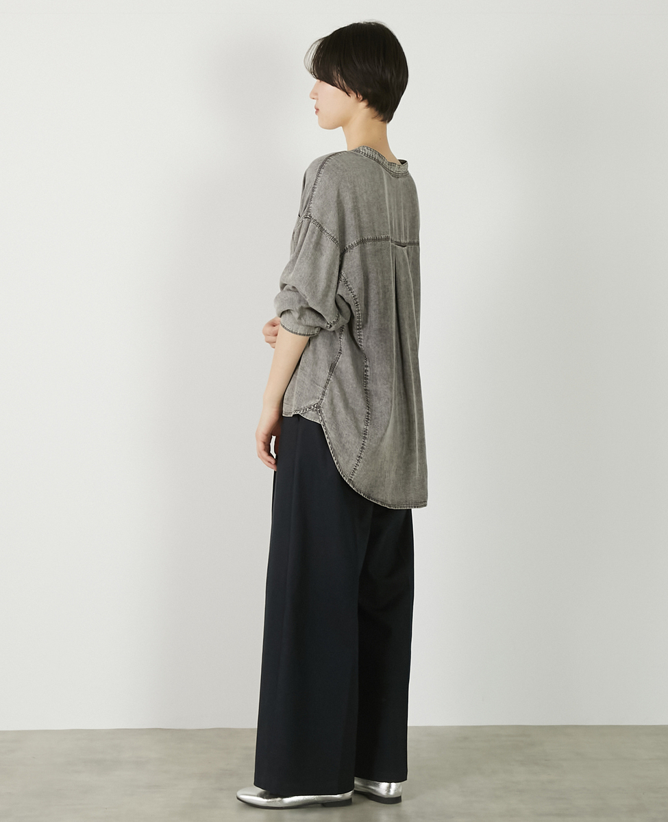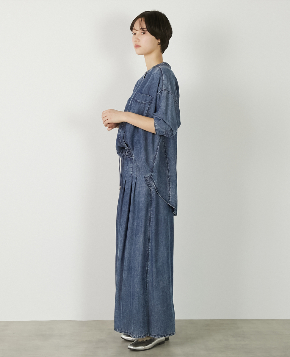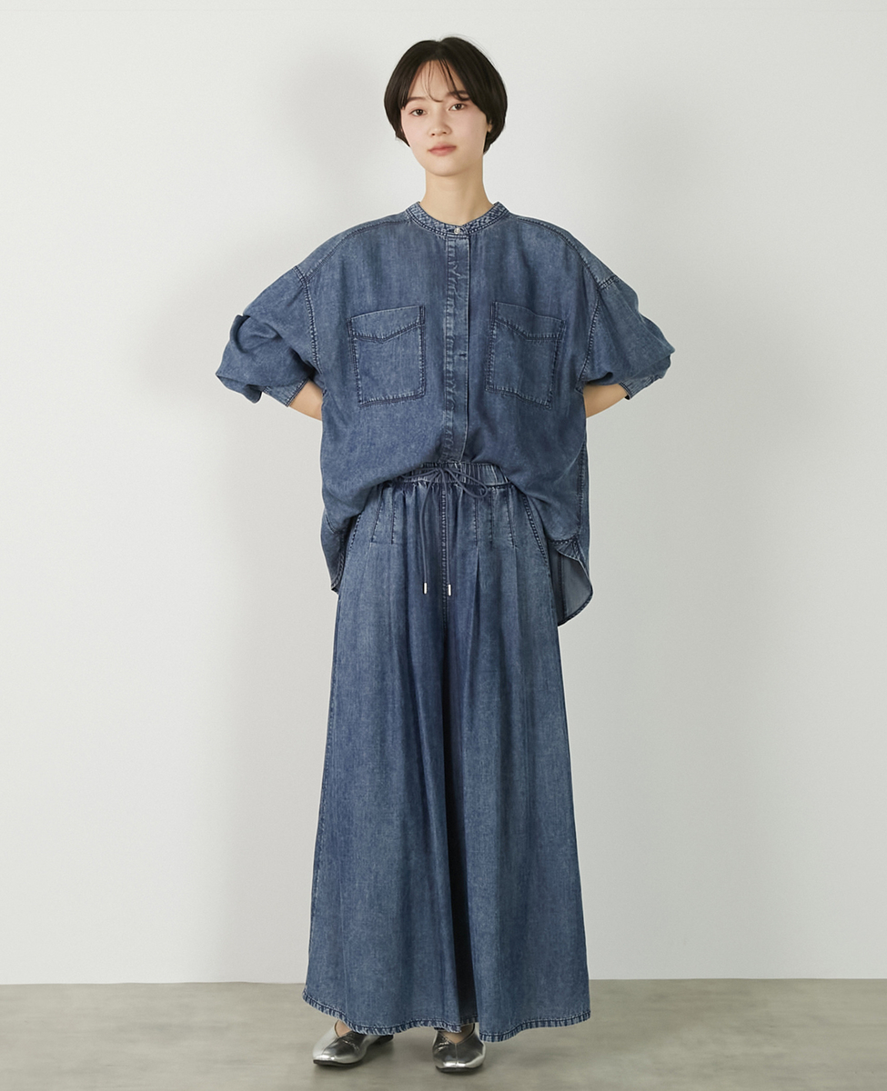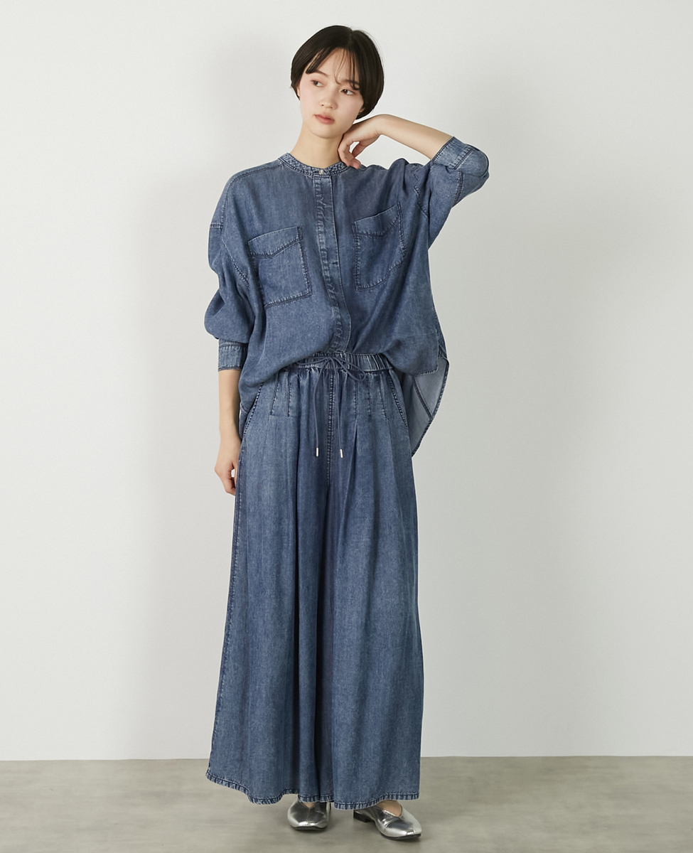 【パウダーデニムバンドカラーシャツ】