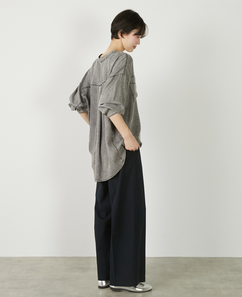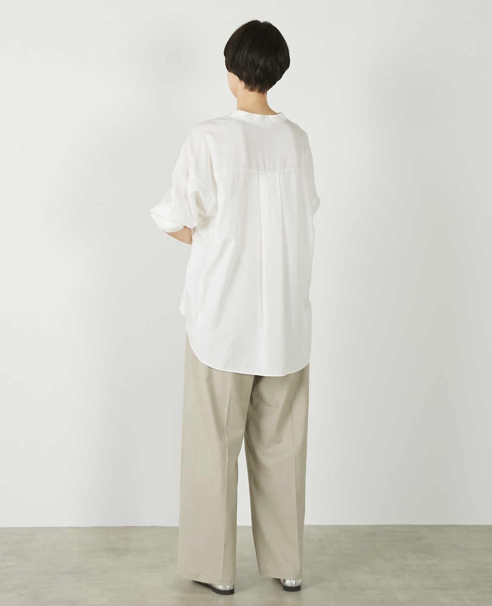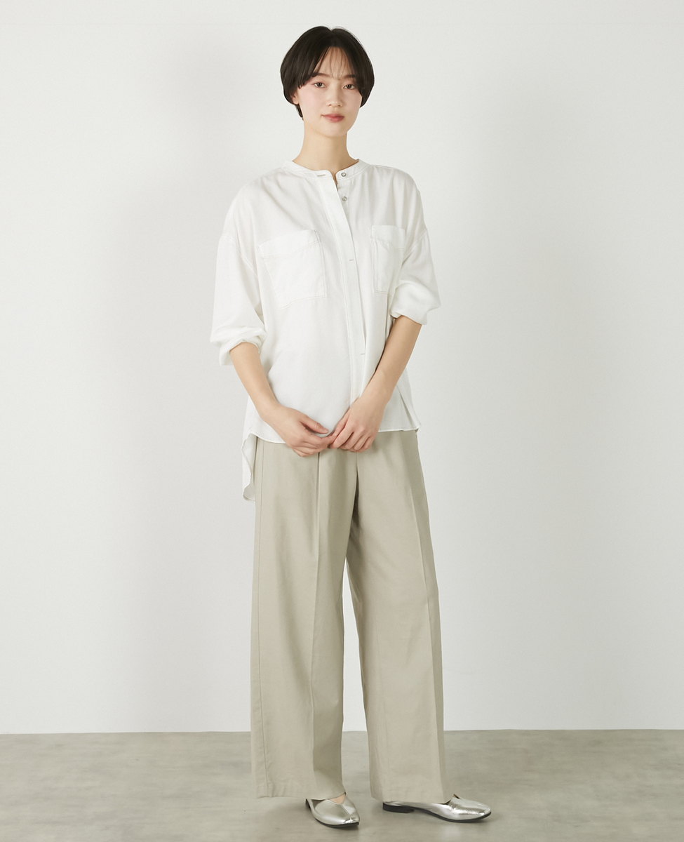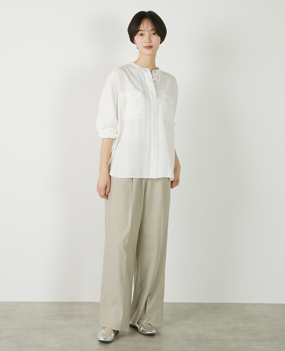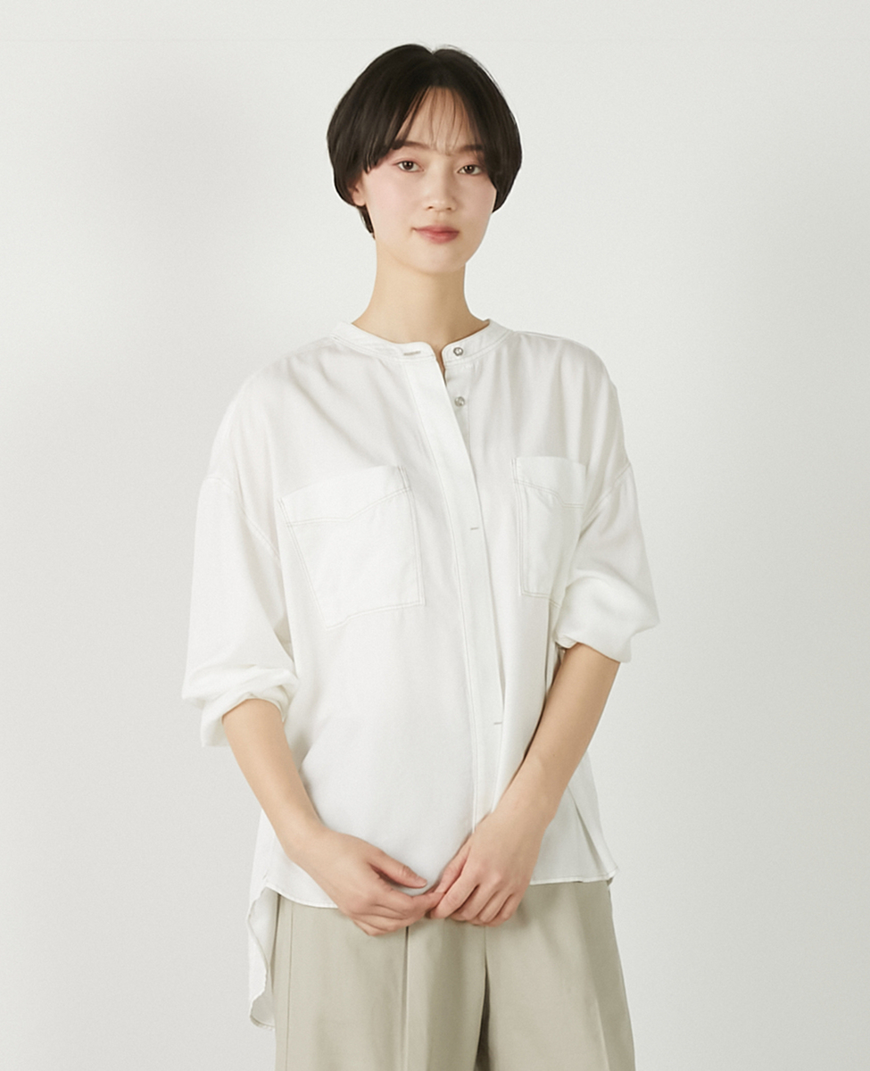 【パウダーデニムバンドカラーシャツ】